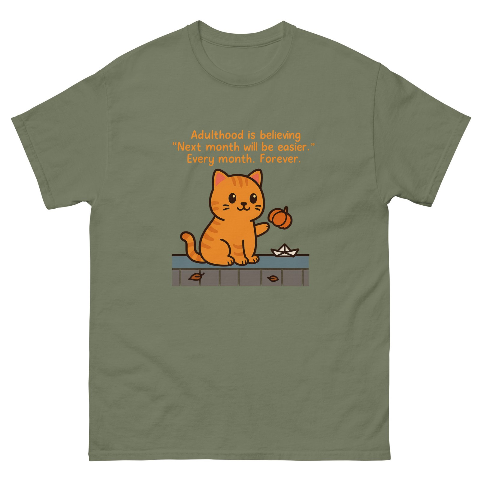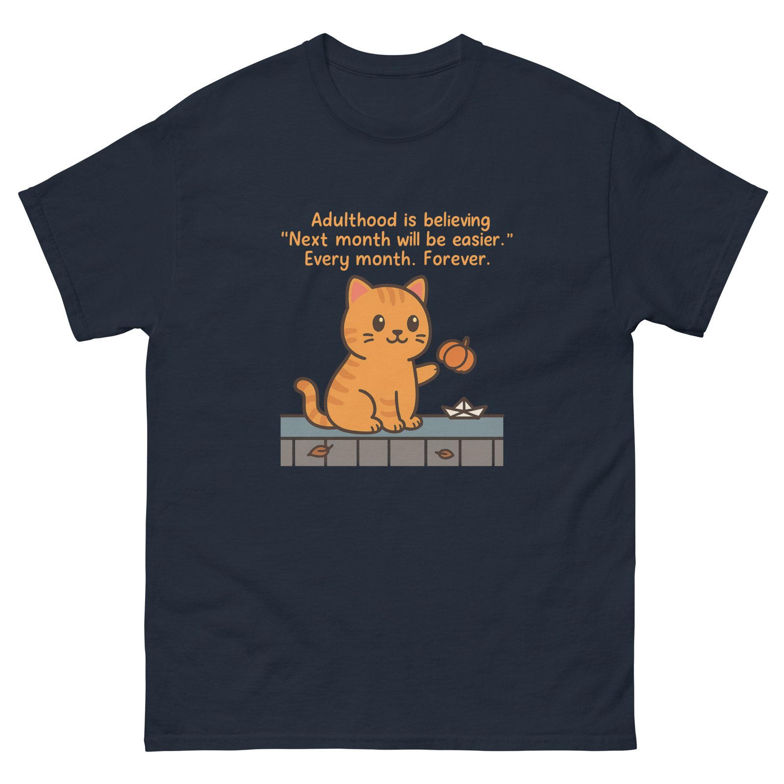Adulthood Pumpkin Cat Meme – Next Month Will Be Easier Funny Relatable Cat Tee, Unisex – Unisex classic tee