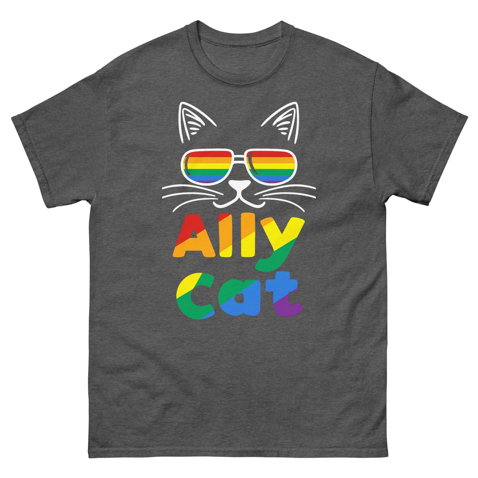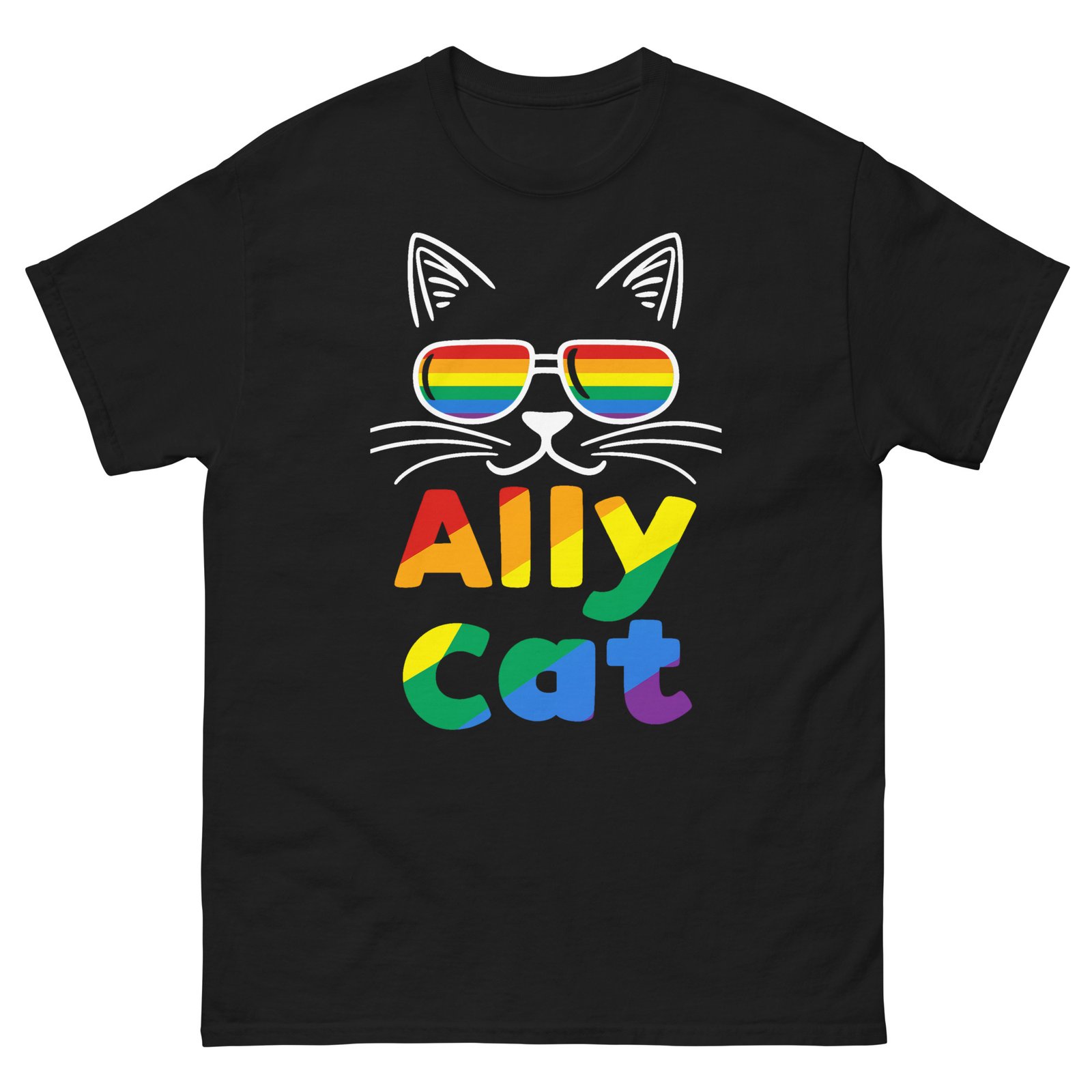 Ally Cat Pride – Rainbow Sunglasses Cat LGBTQ+ Support Graphic Tee – Unisex classic tee