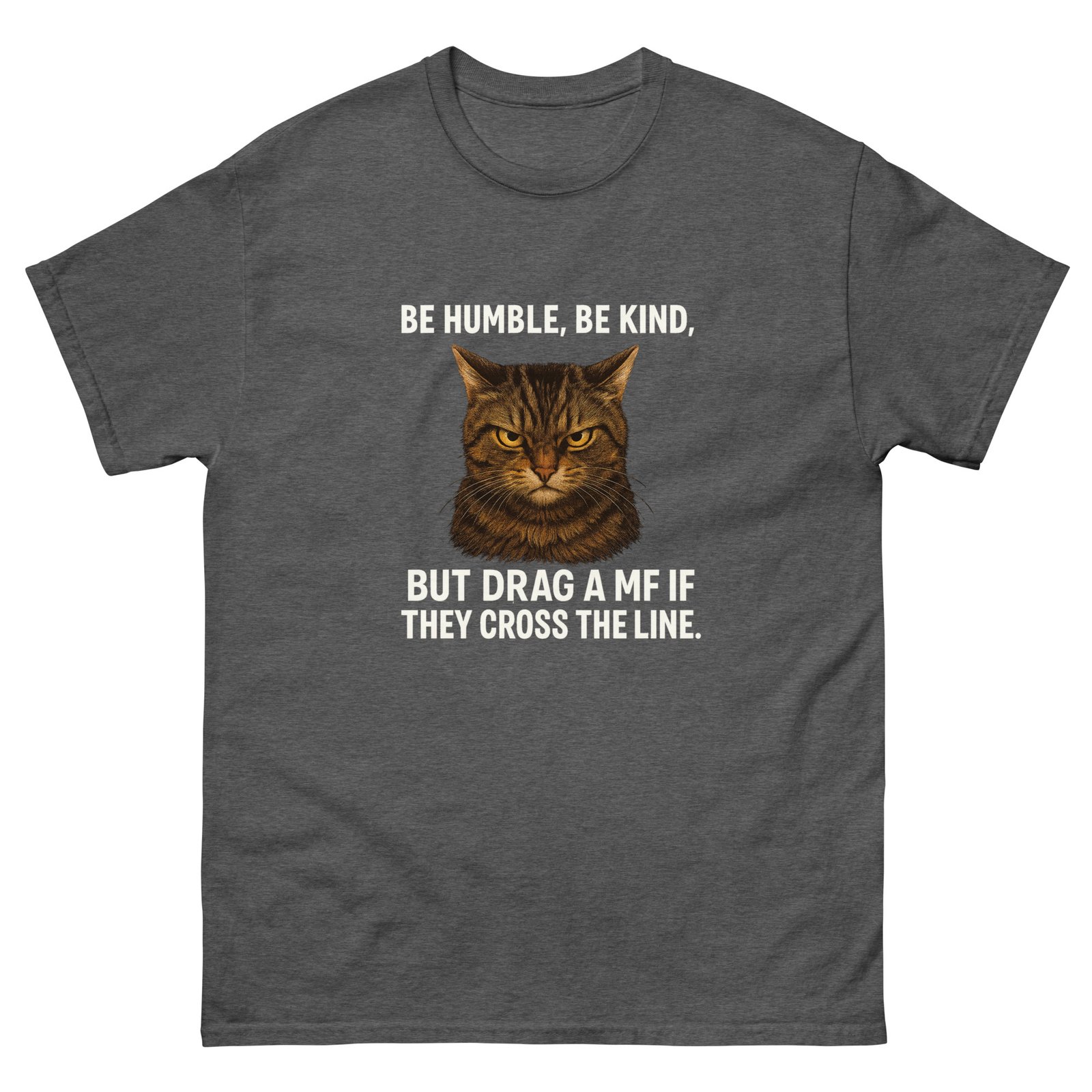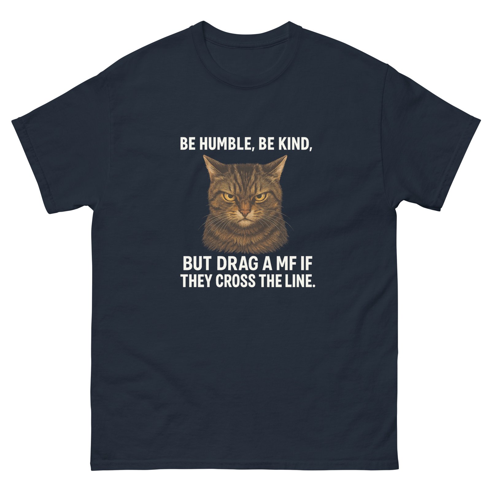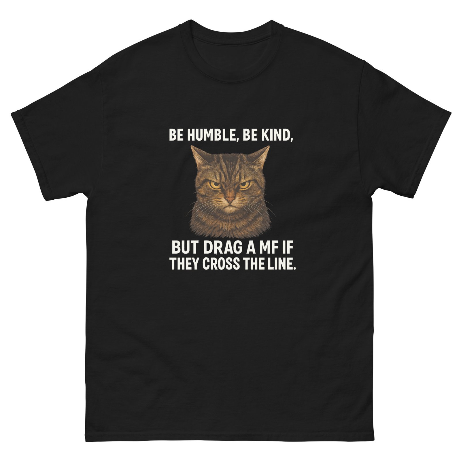 Be Humble, Be Kind, But Drag a MF If They Cross the Line Cat – Funny Attitude Cat Tee – Unisex classic tee