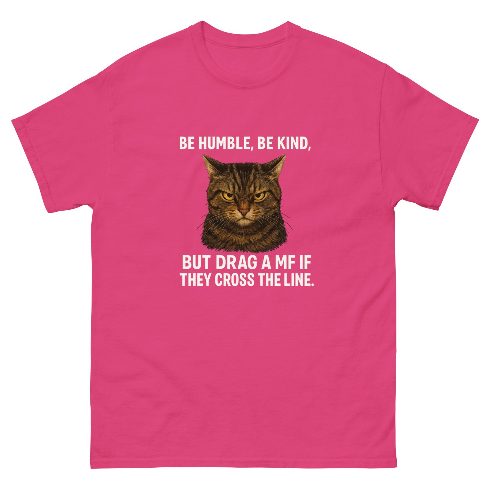 Be Humble, Be Kind, But Drag a MF If They Cross the Line Cat – Funny Attitude Cat Tee – Unisex classic tee