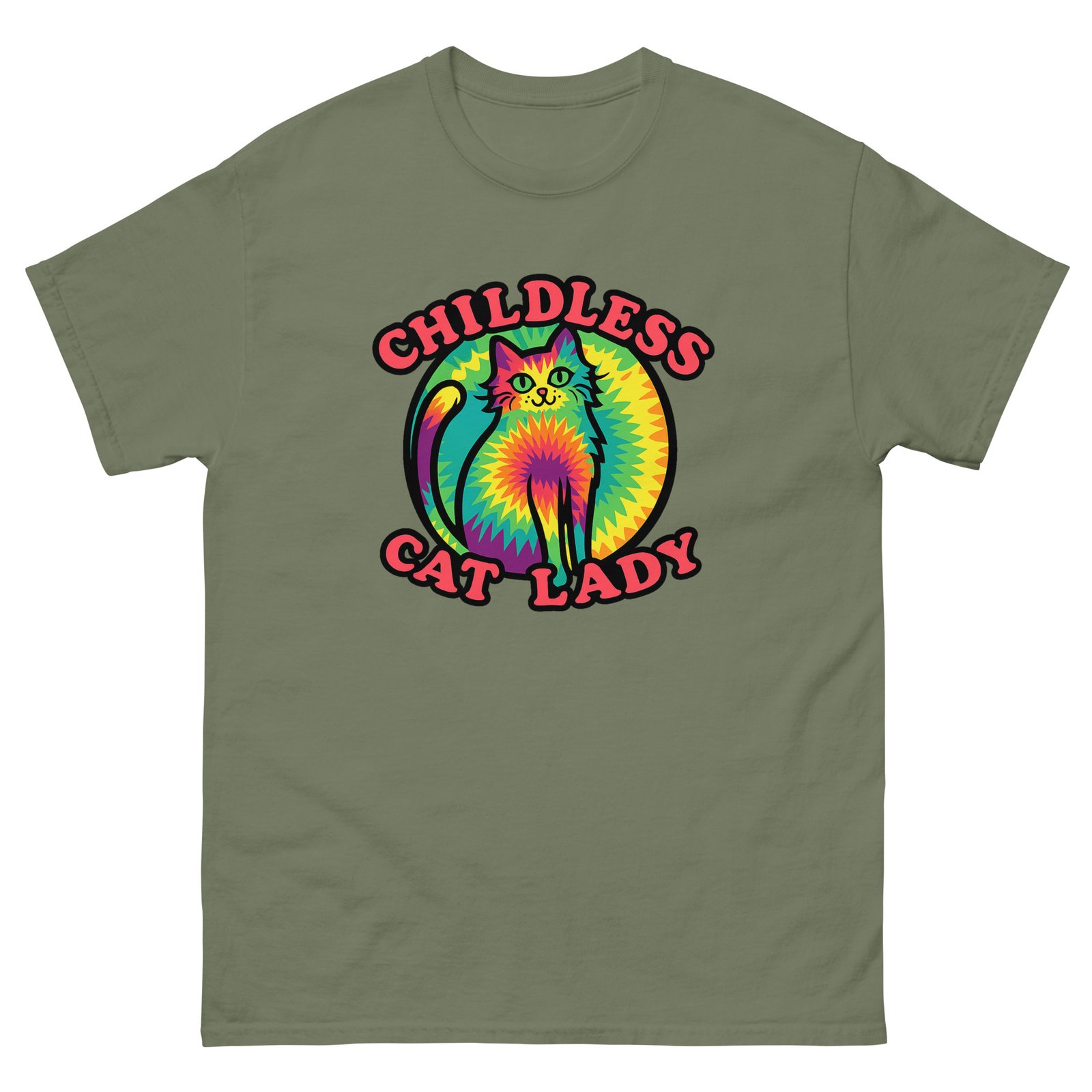 Colorful Hippie Cat – Childless Cat Lady Tie-Dye Style Cat Graphic Tee – Unisex classic tee