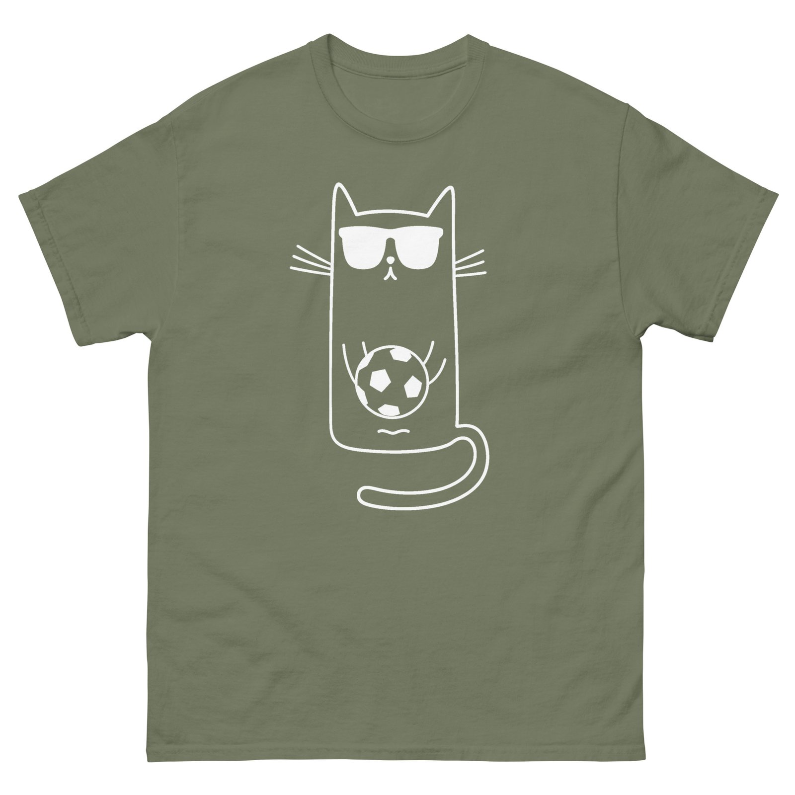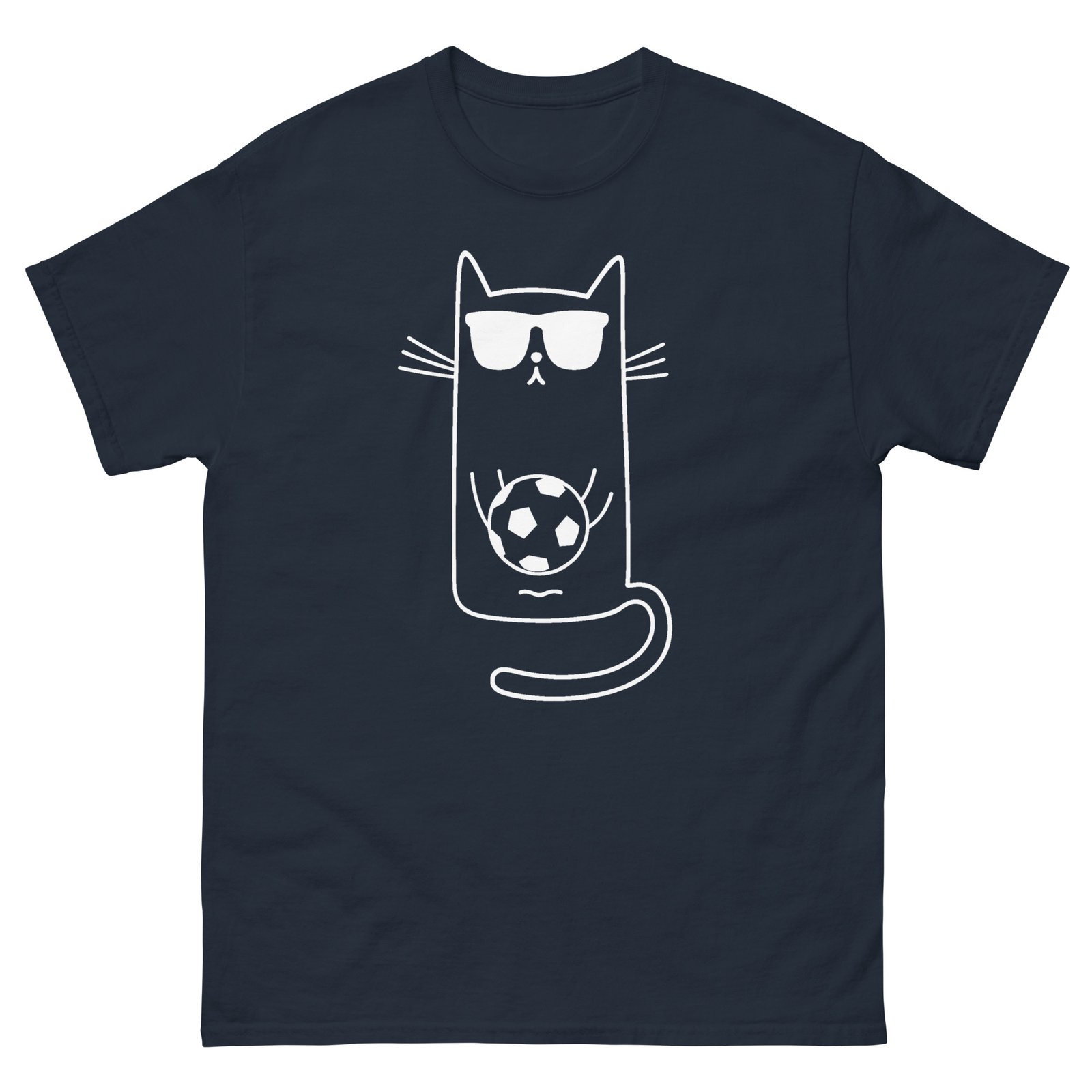 Cool Cat with Sunglasses – Minimalist Cat Soccer Ball Design – Unisex classic tee