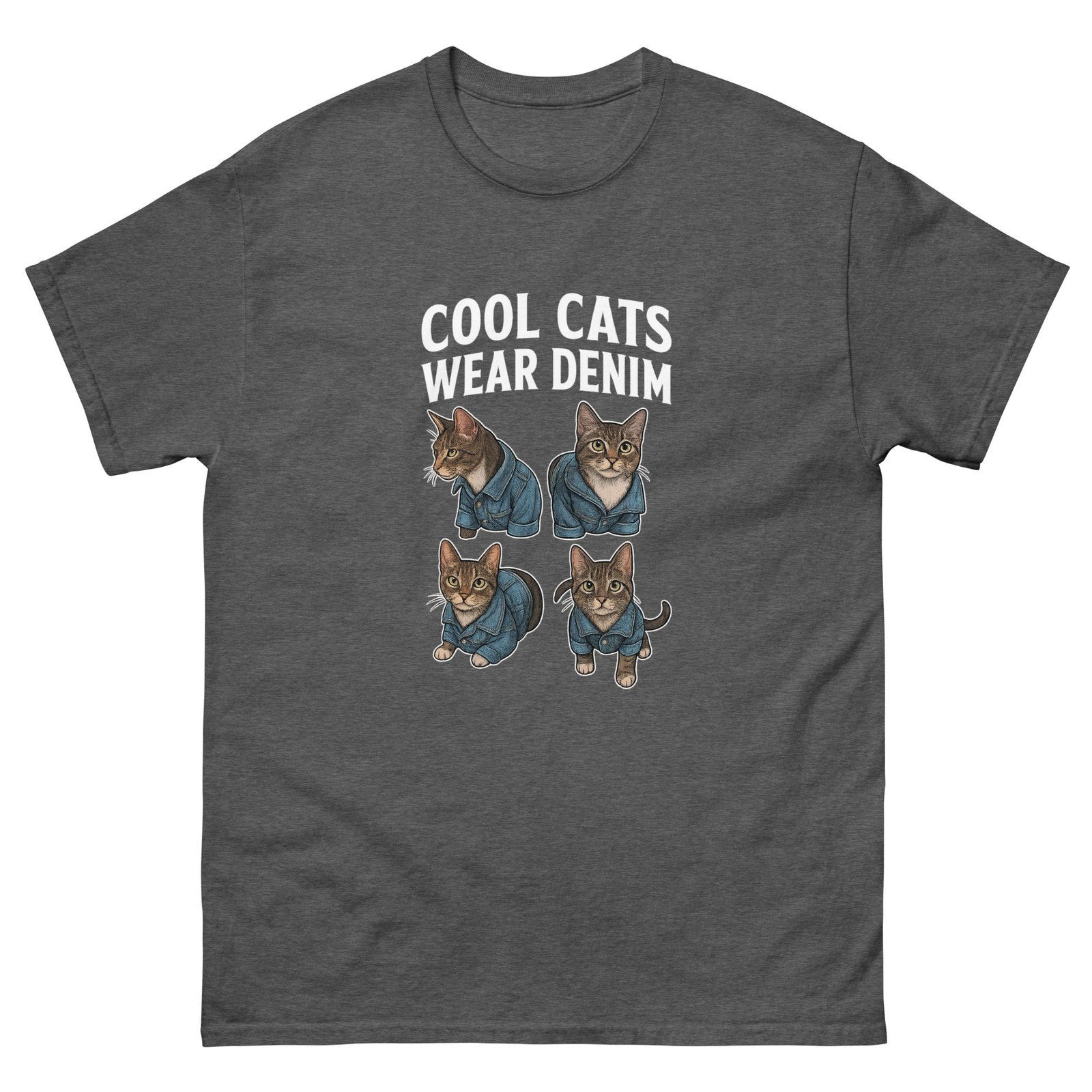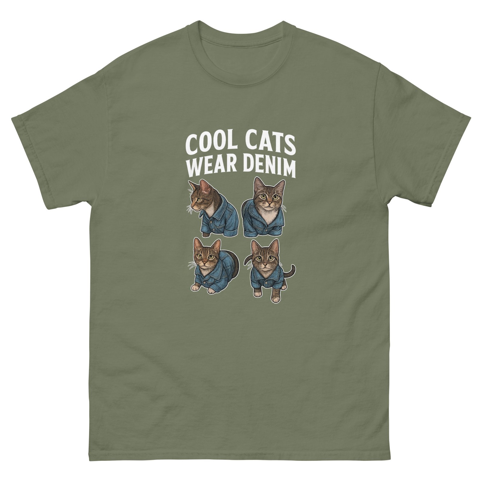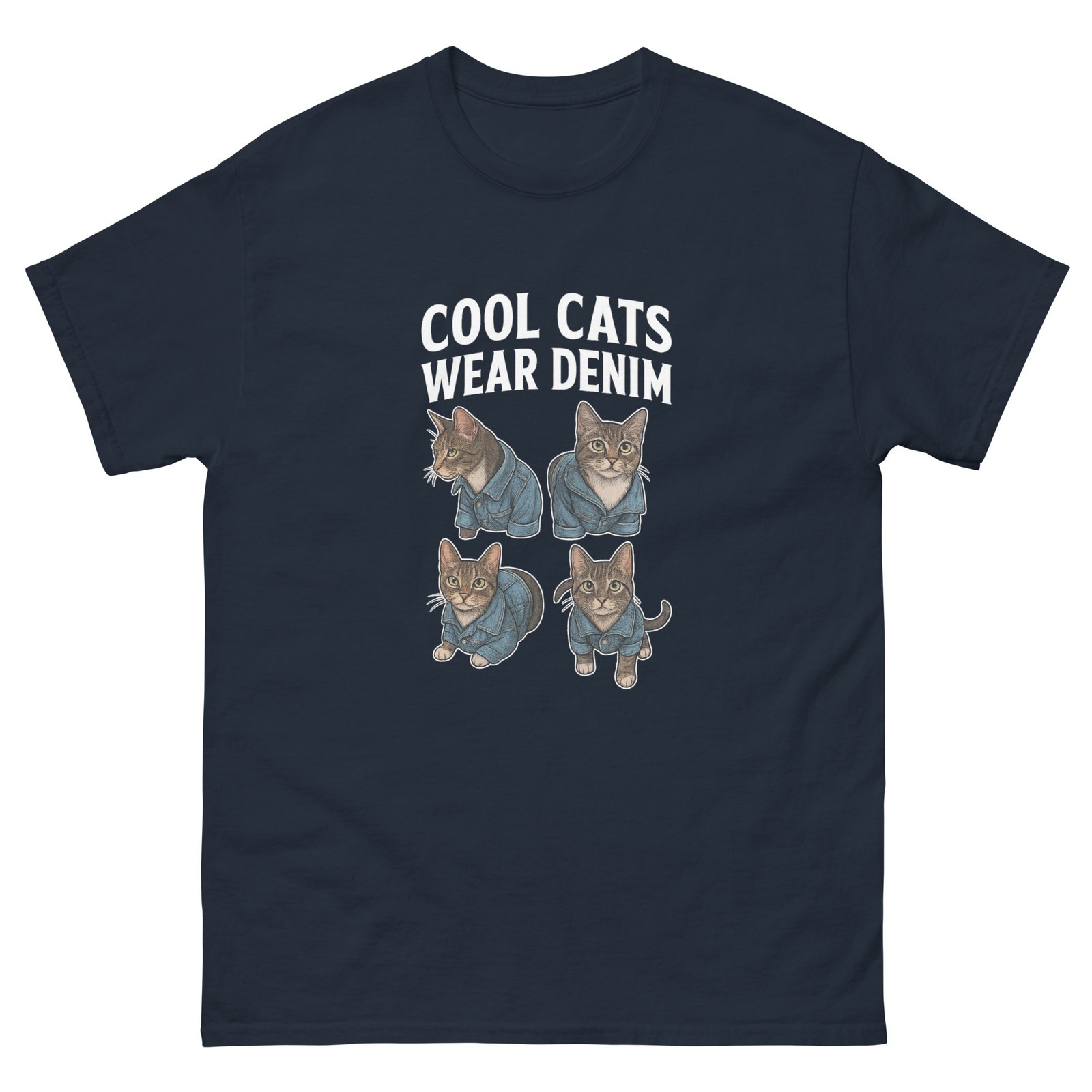 Cool Cats Wear Denim – Funny Cat in Jacket Graphic Tee for Cat Lovers – Unisex classic tee