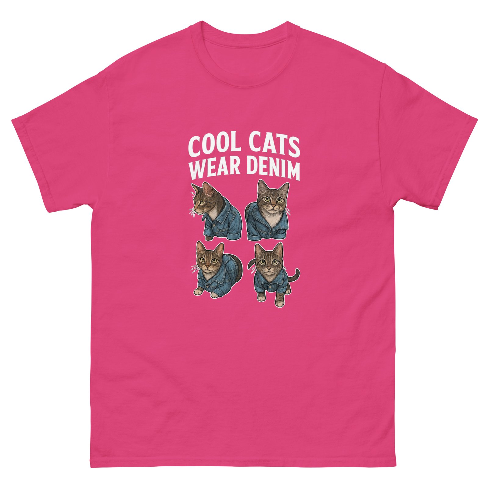 Cool Cats Wear Denim – Funny Cat in Jacket Graphic Tee for Cat Lovers – Unisex classic tee