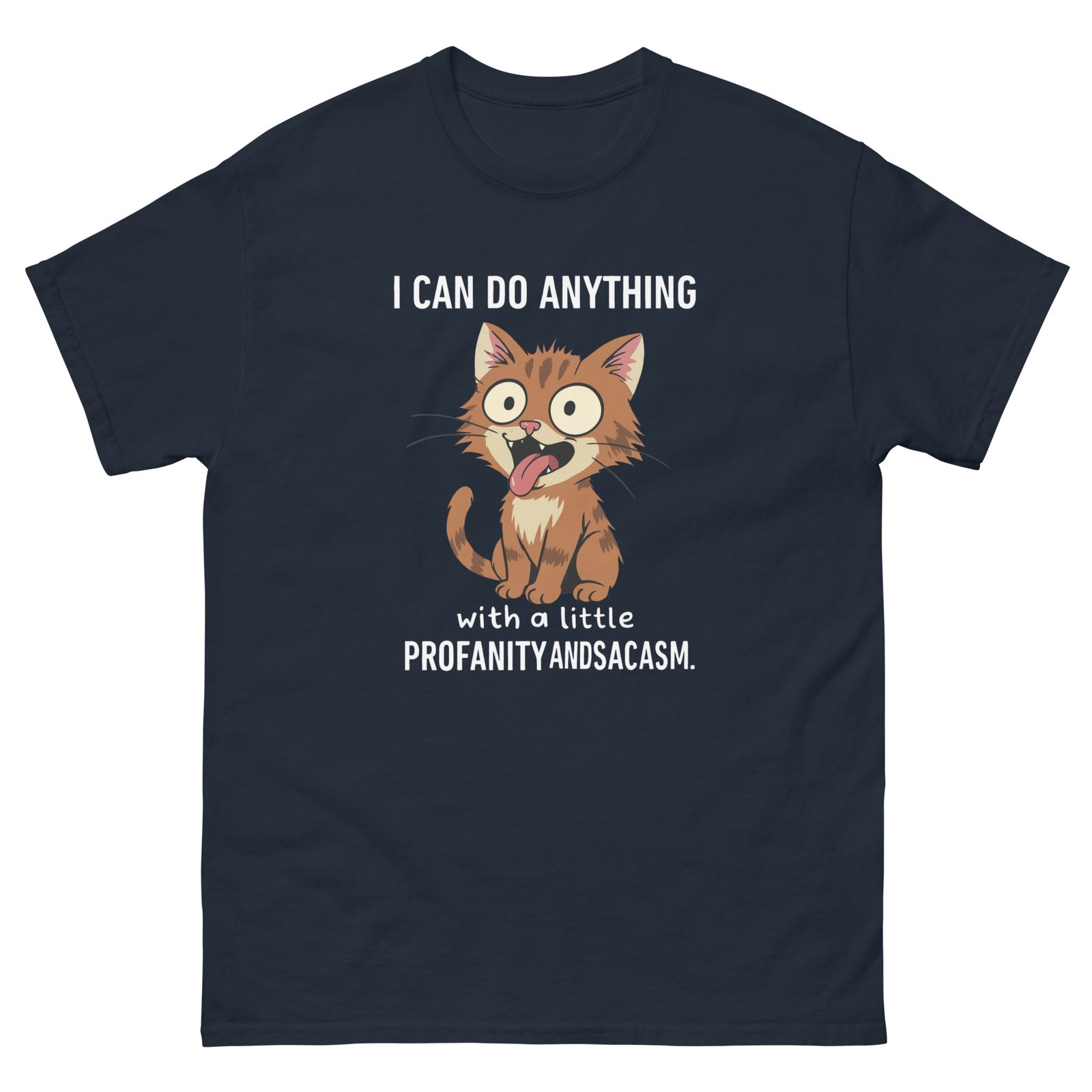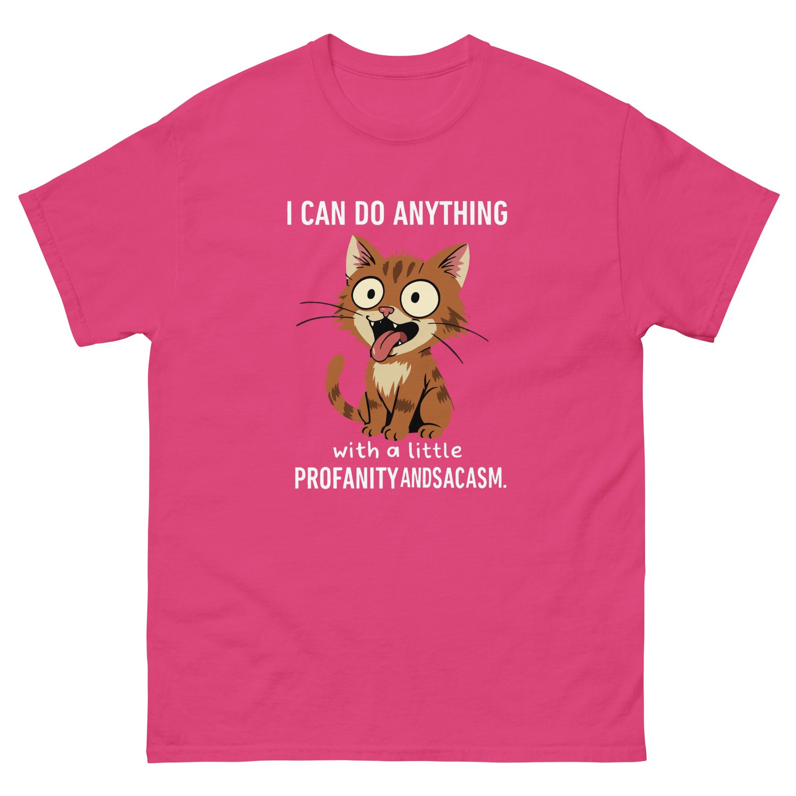 Crazy Cat Meme – I Can Do Anything with a Little Profanity and Sarcasm Wild Cat Graphic Tee – Unisex classic tee