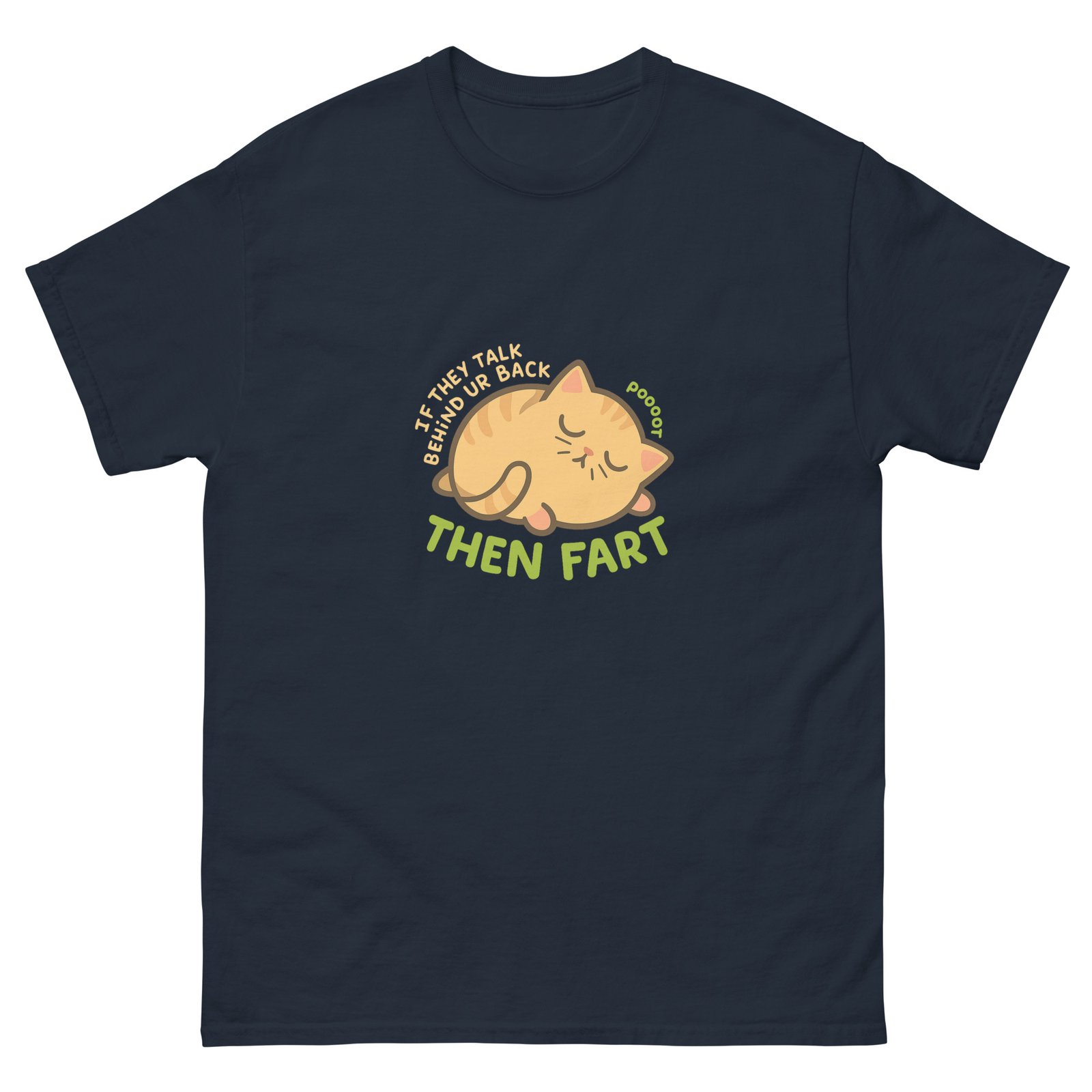 Cute Sleepy Cat Shirt – Eat, Sleep, Talk Behind Backs, Then Fart – Funny Cat Tee – Unisex classic tee