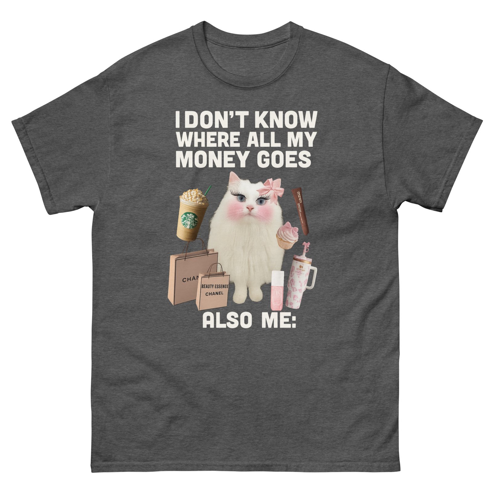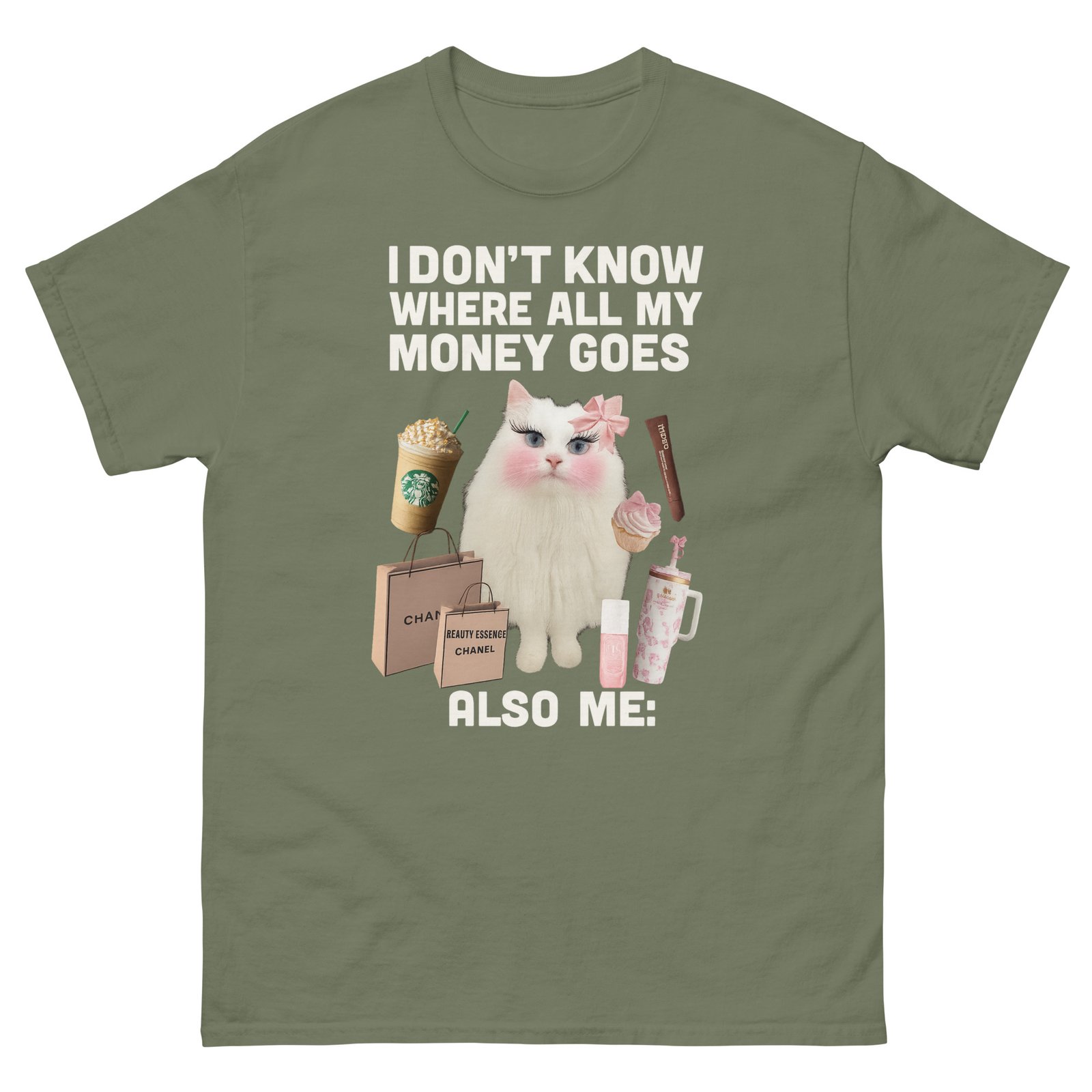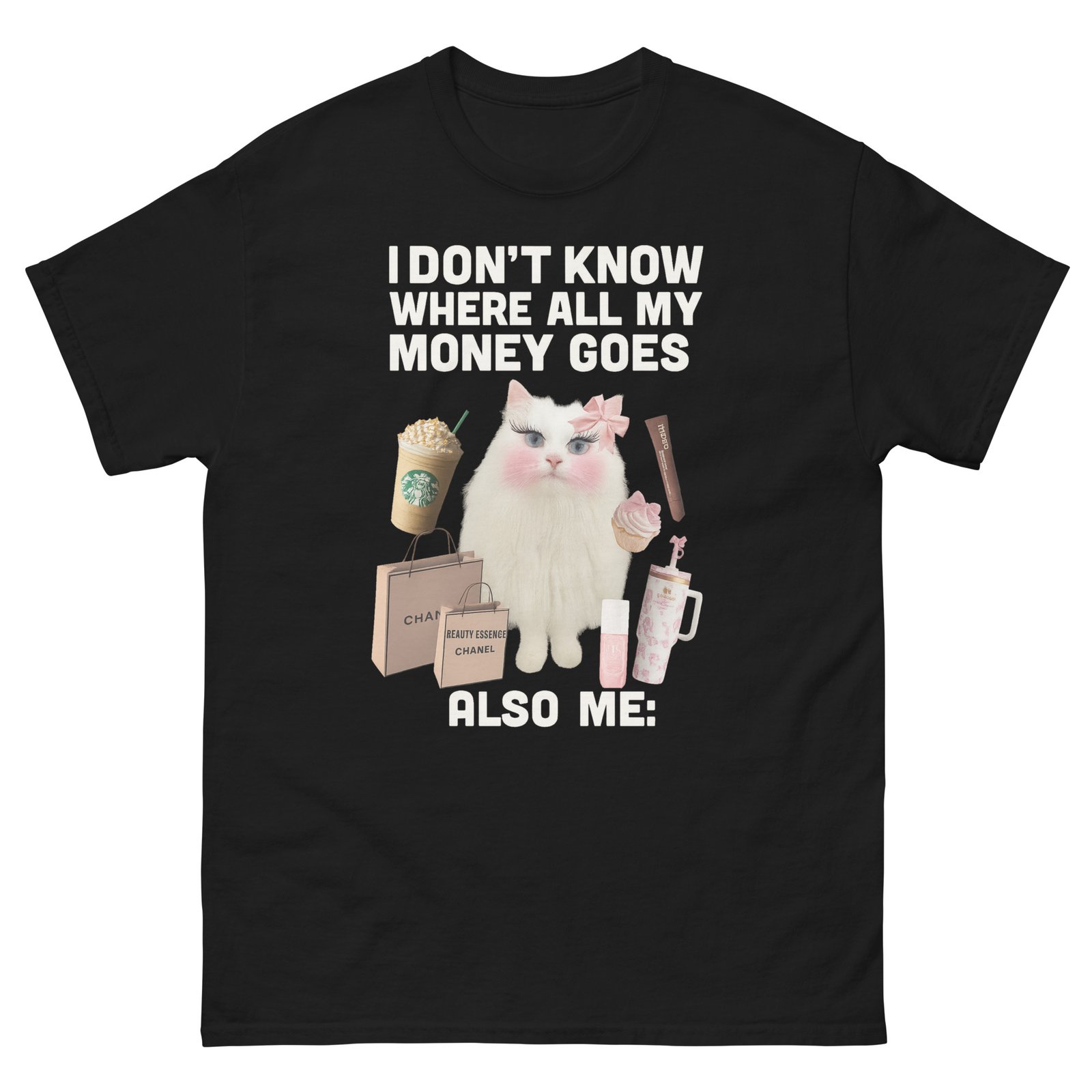 Funny Cat – I Don’t Know Where All My Money Goes Also Me Shopping Cat Graphic Tee – Unisex classic tee