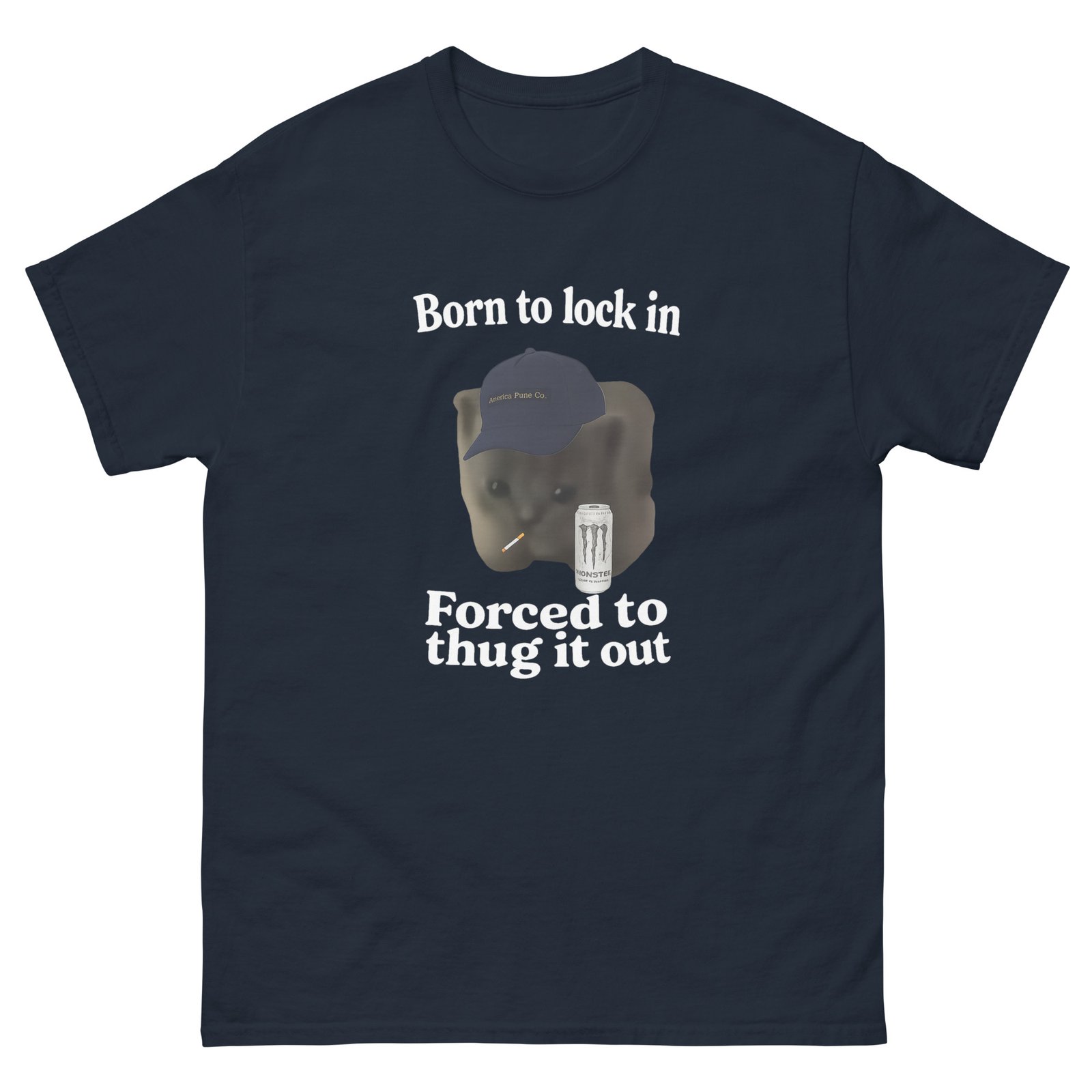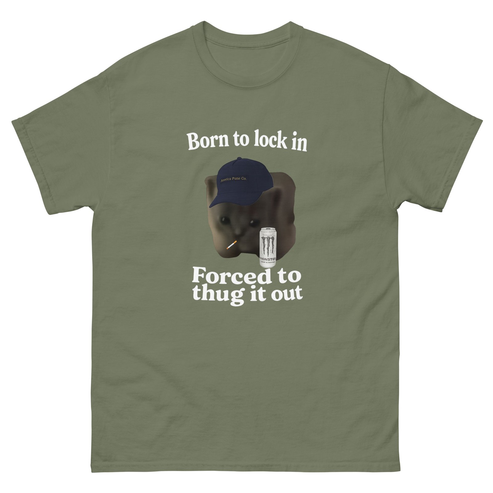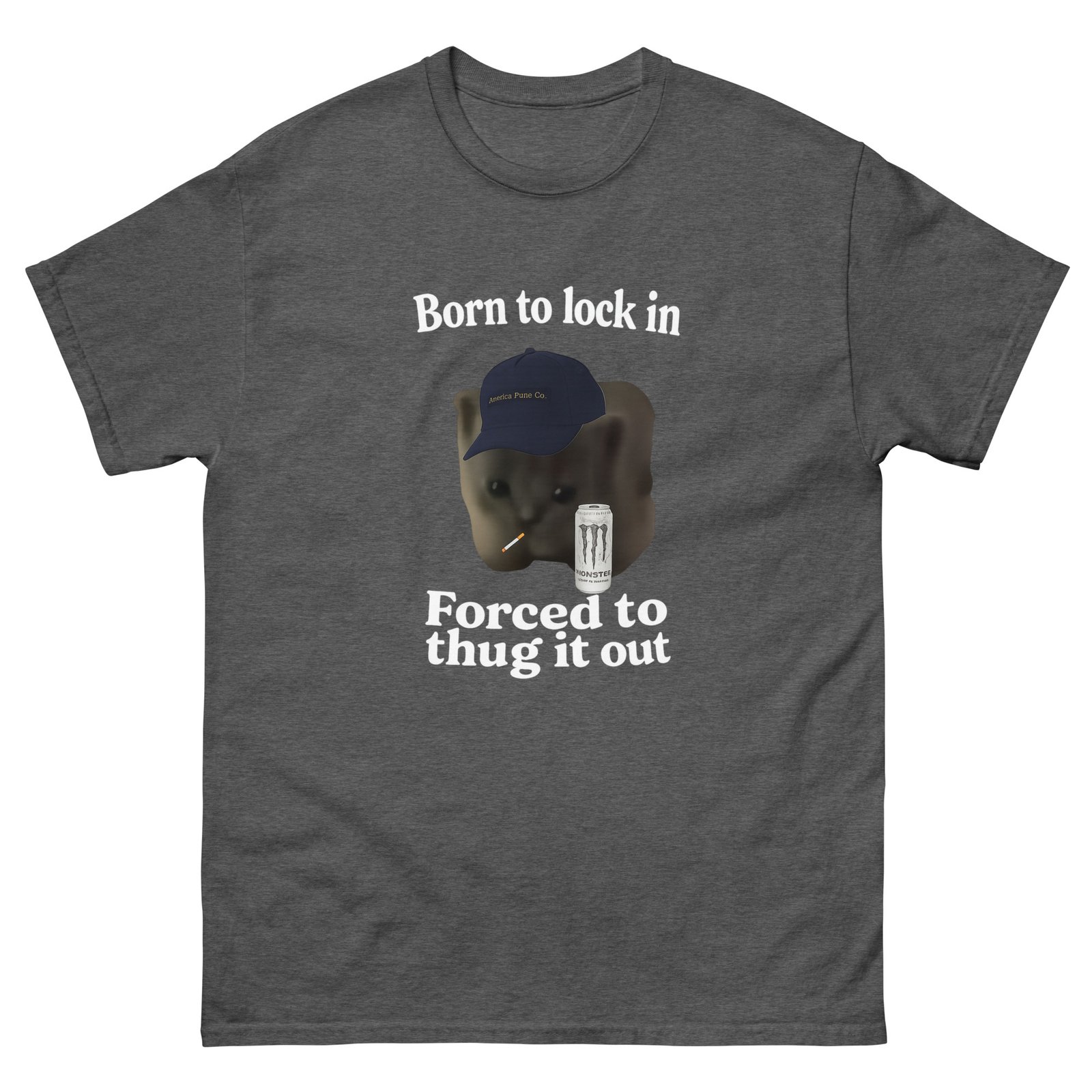 Funny Cat Meme – Born to Lock In, Forced to Thug It Out Streetwear Graphic Tee – Unisex classic tee