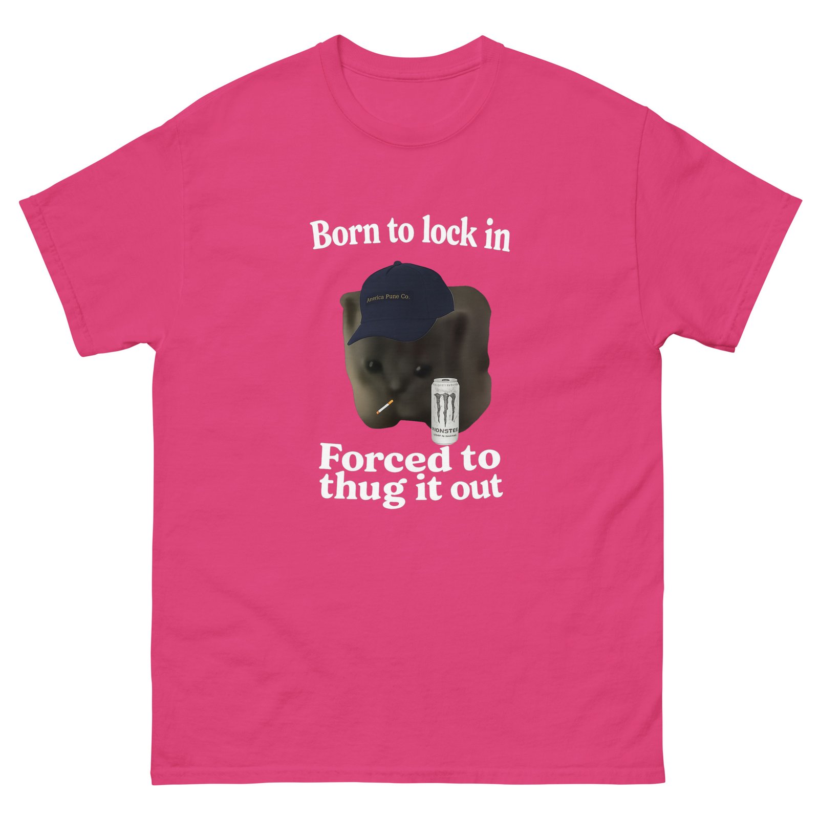 Funny Cat Meme – Born to Lock In, Forced to Thug It Out Streetwear Graphic Tee – Unisex classic tee