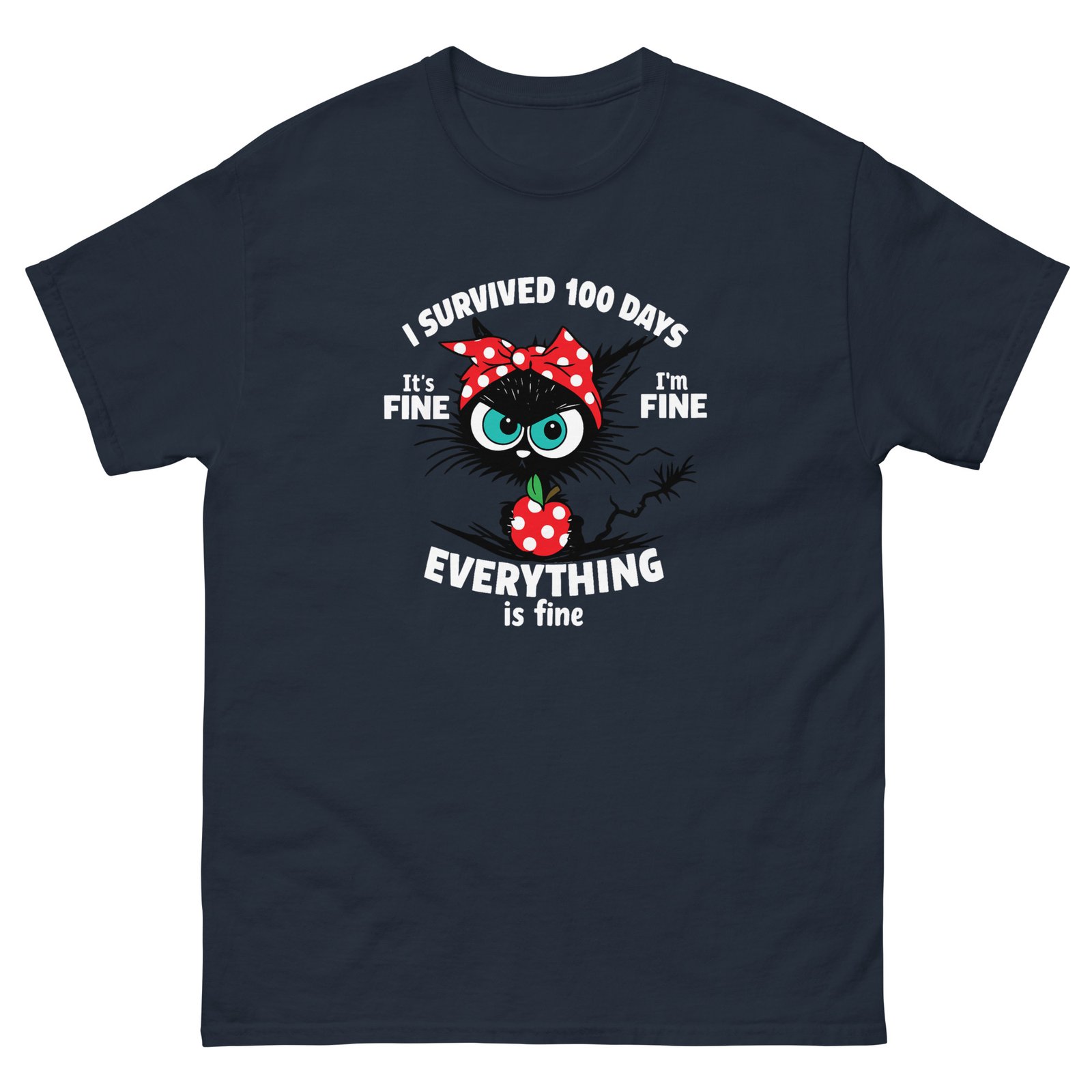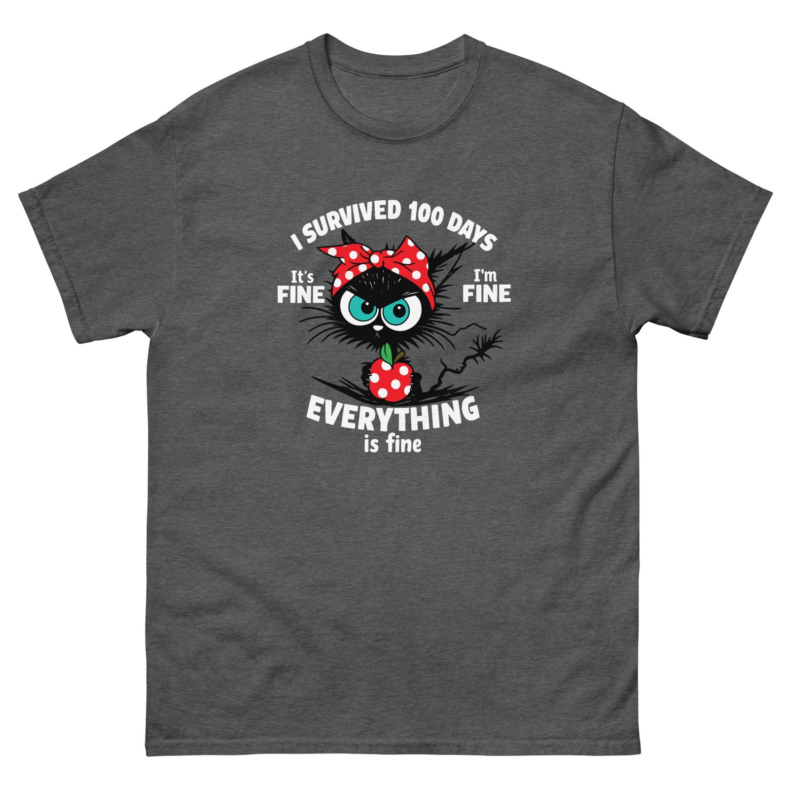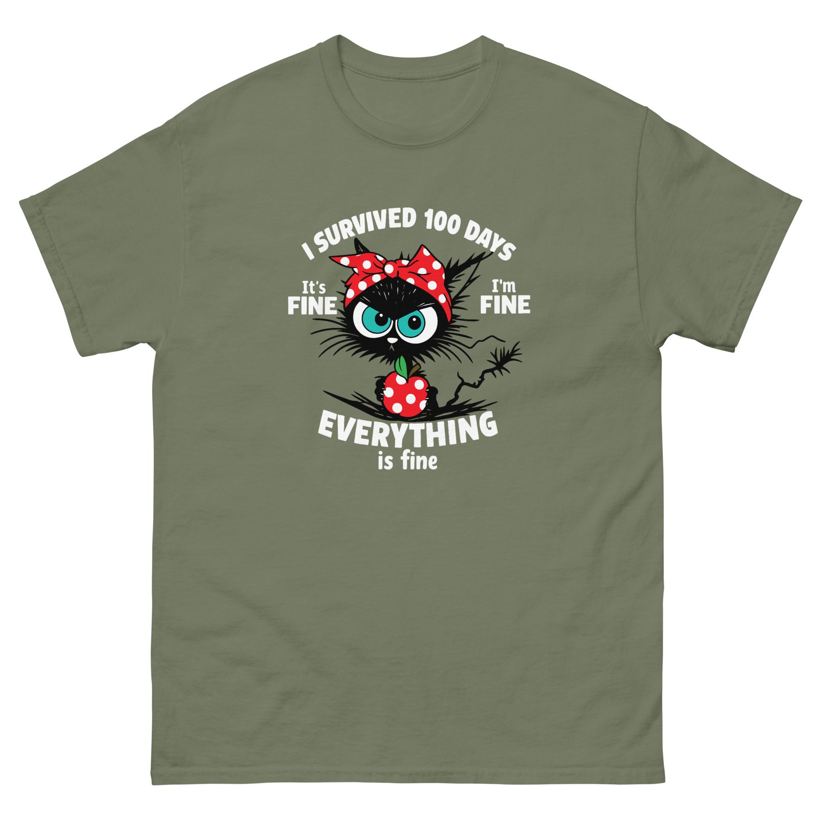 Funny Stressed Cat – I Survived 100 Days Everything Is Fine Tee – Unisex classic tee