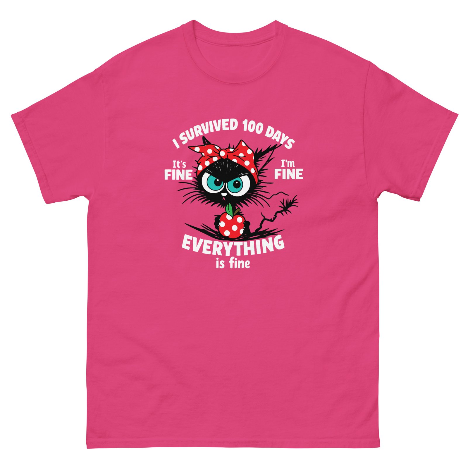 Funny Stressed Cat – I Survived 100 Days Everything Is Fine Tee – Unisex classic tee