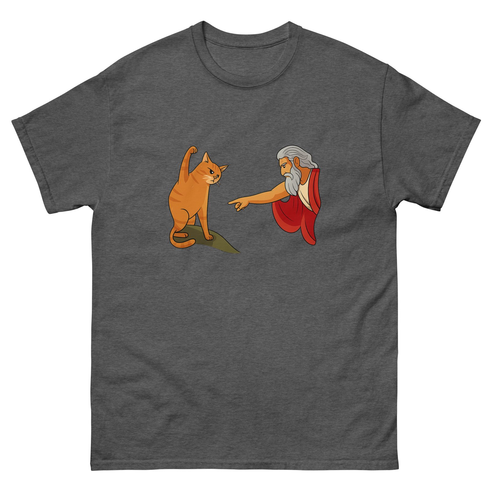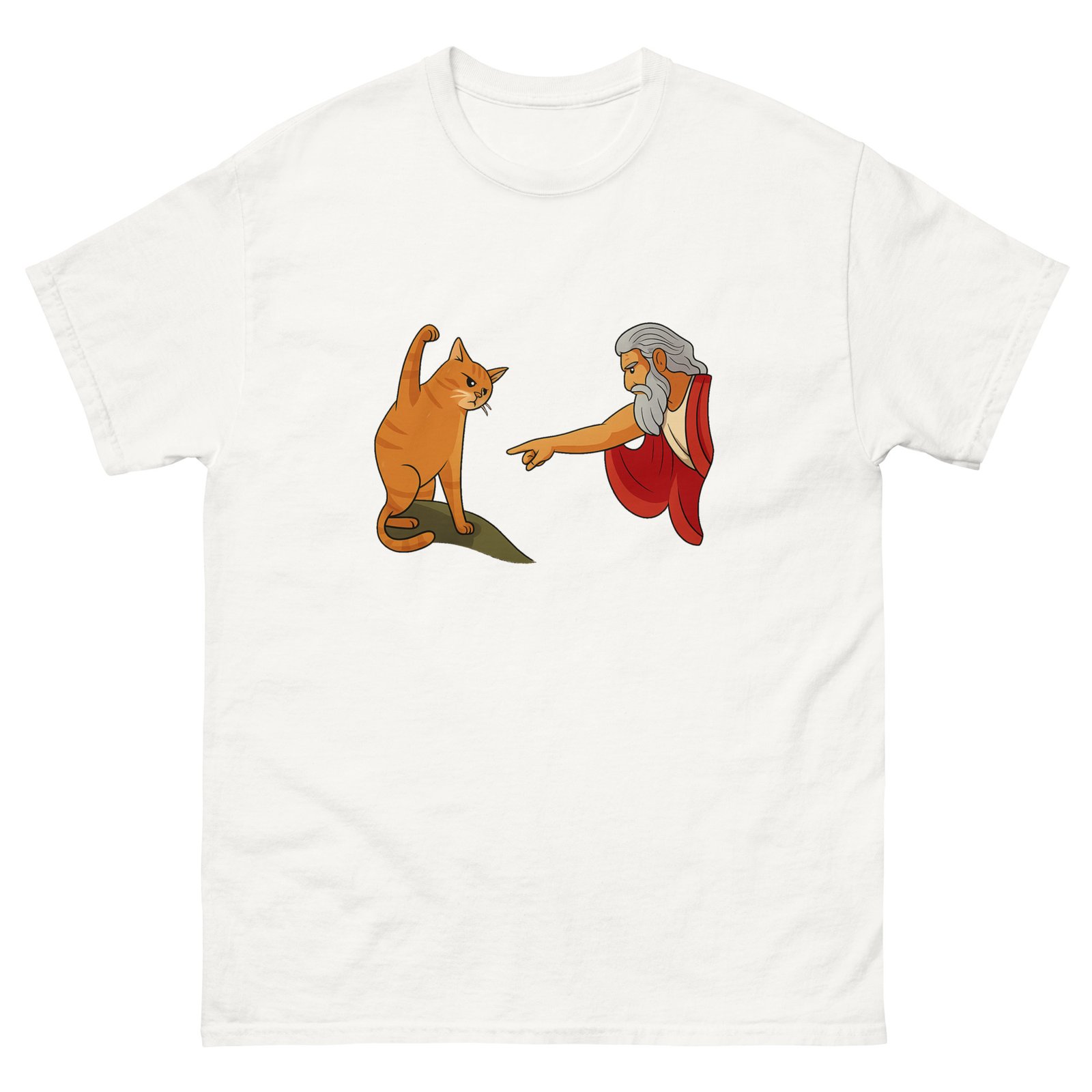 God and Cat Meme – Funny Orange Cat Reaching for God Graphic Tee – Unisex classic tee