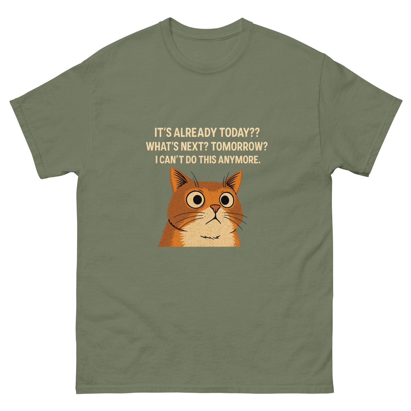 It’s Already Today Anxious Orange Cat Meme – Funny Exhausted Kitty Tee, Relatable Humor Gift – Unisex classic tee