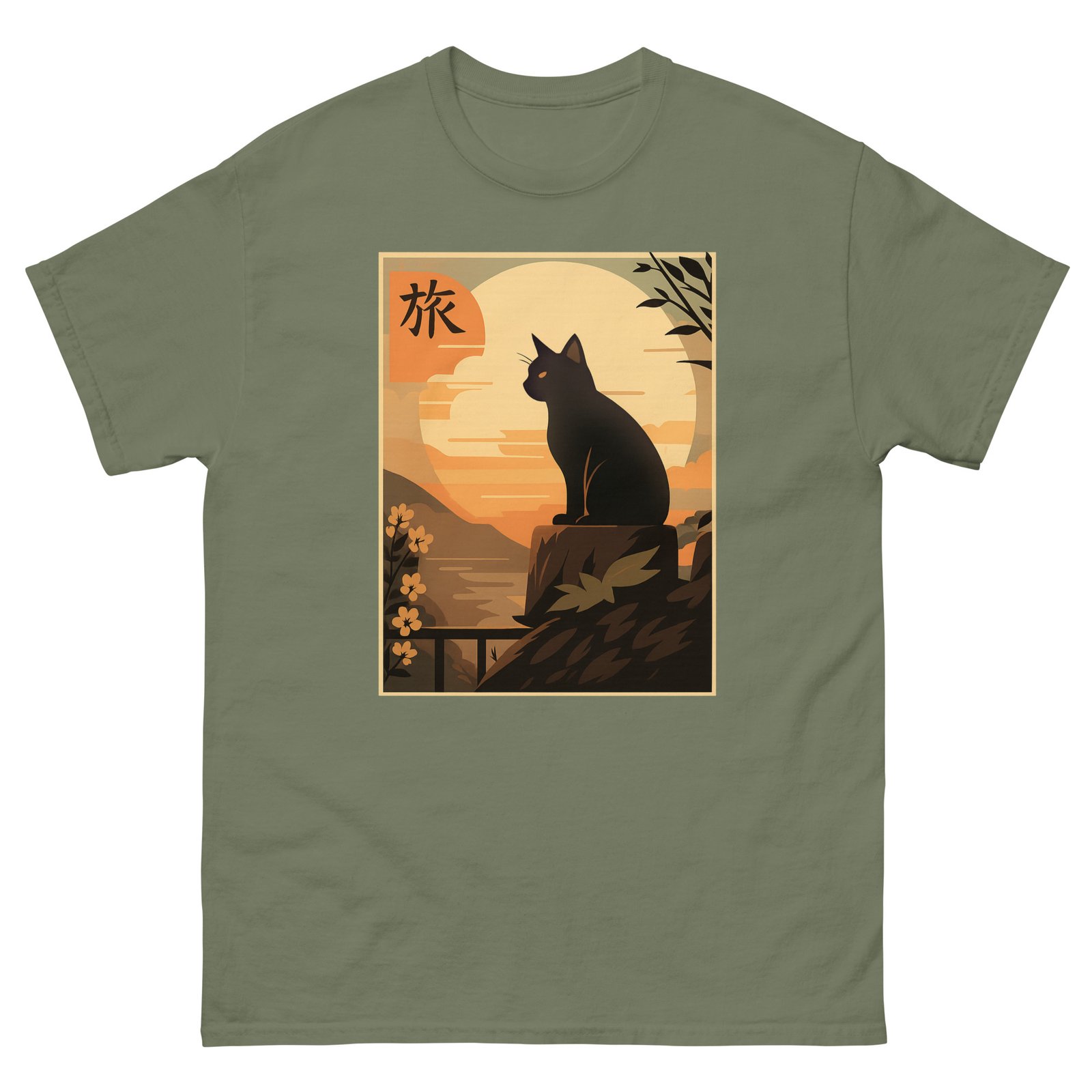 Be the first to review “Japanese Sunset Cat – Tranquil Black Cat Silhouette – Unisex classic tee”