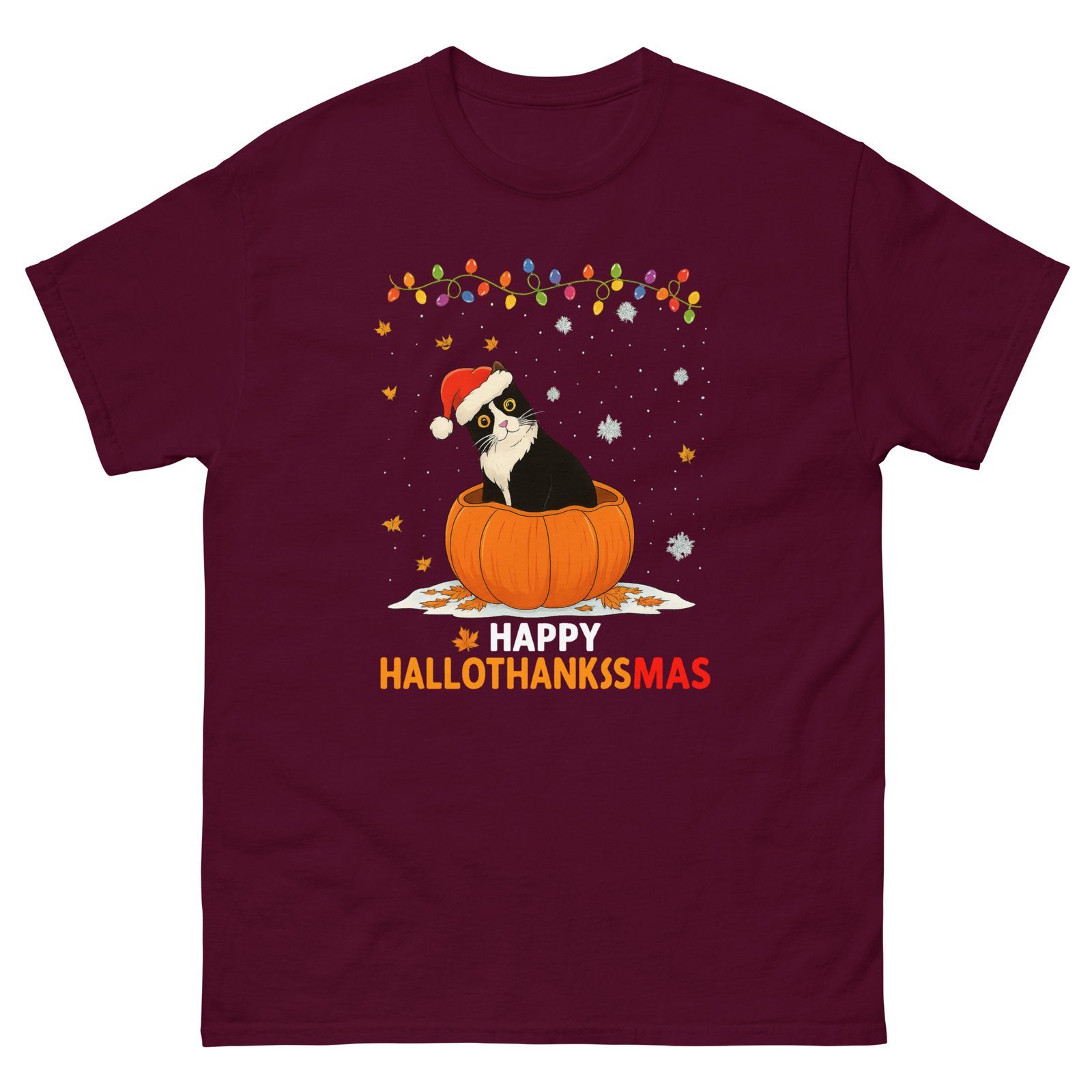 Happy Hallothankssmas Cat – Cute Holiday Cat Graphic Tee – Unisex classic tee