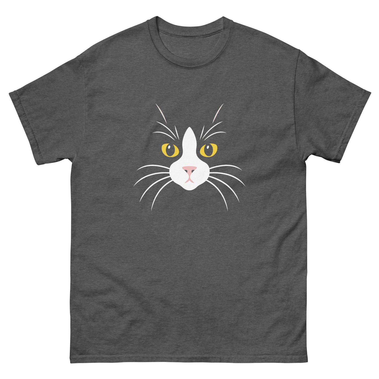Minimalist Cat Face – Yellow Eyes White Cat Outline Graphic Tee – Unisex classic tee