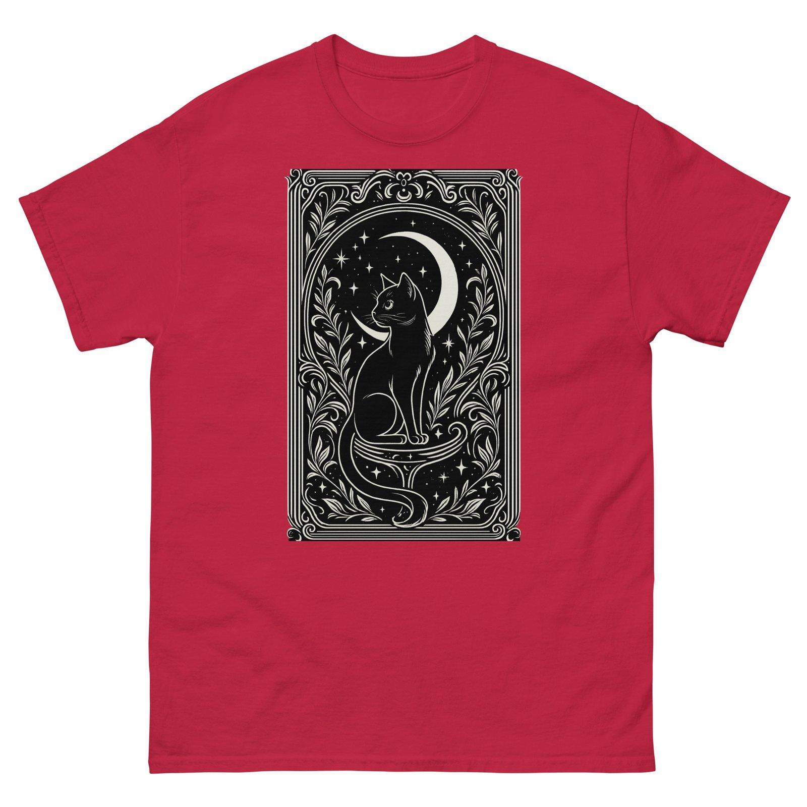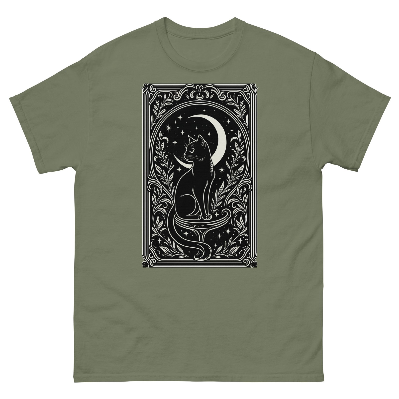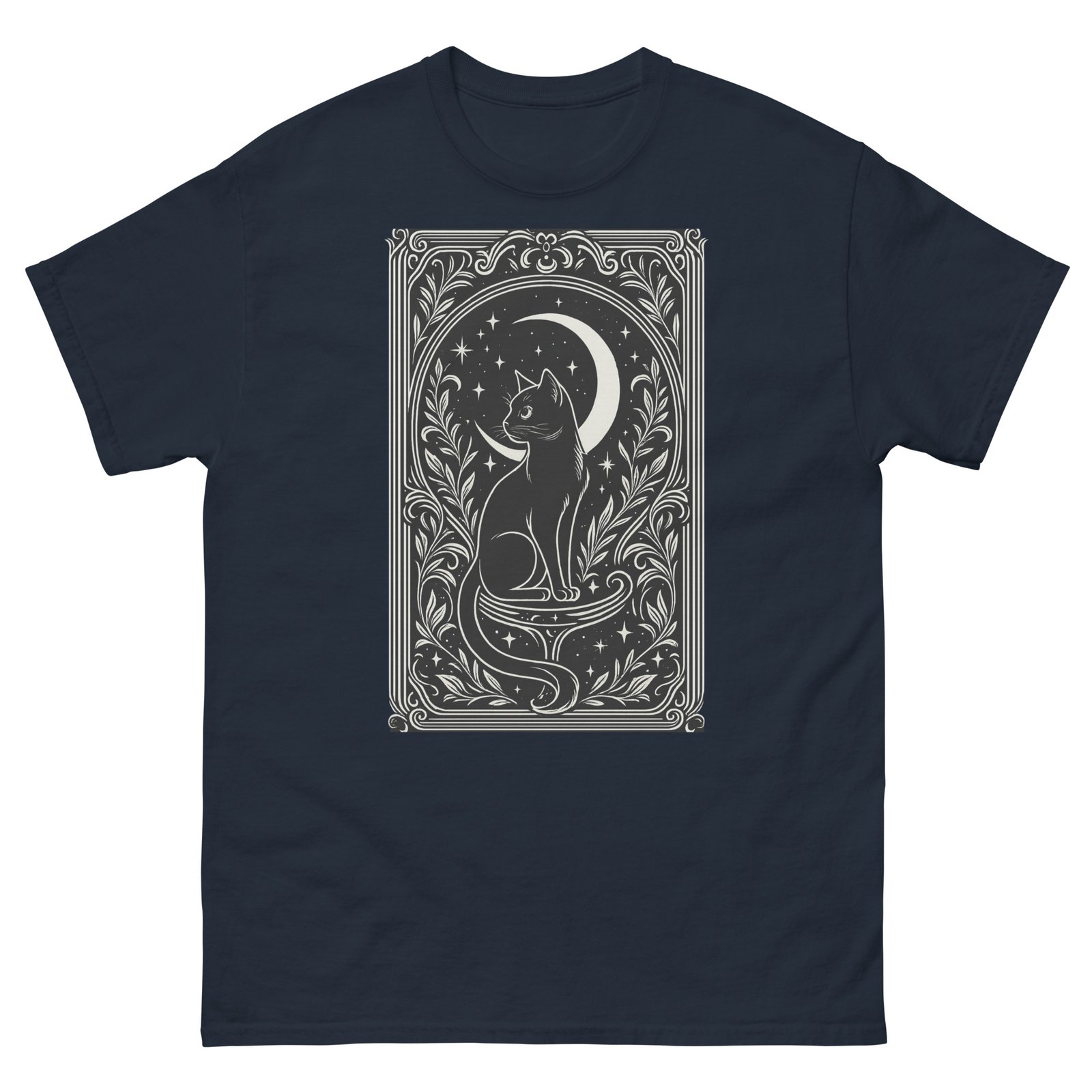 Mystic Moon Cat – Elegant Black Cat with Crescent Moon and Stars in Vintage Ornate Frame – Unisex classic tee