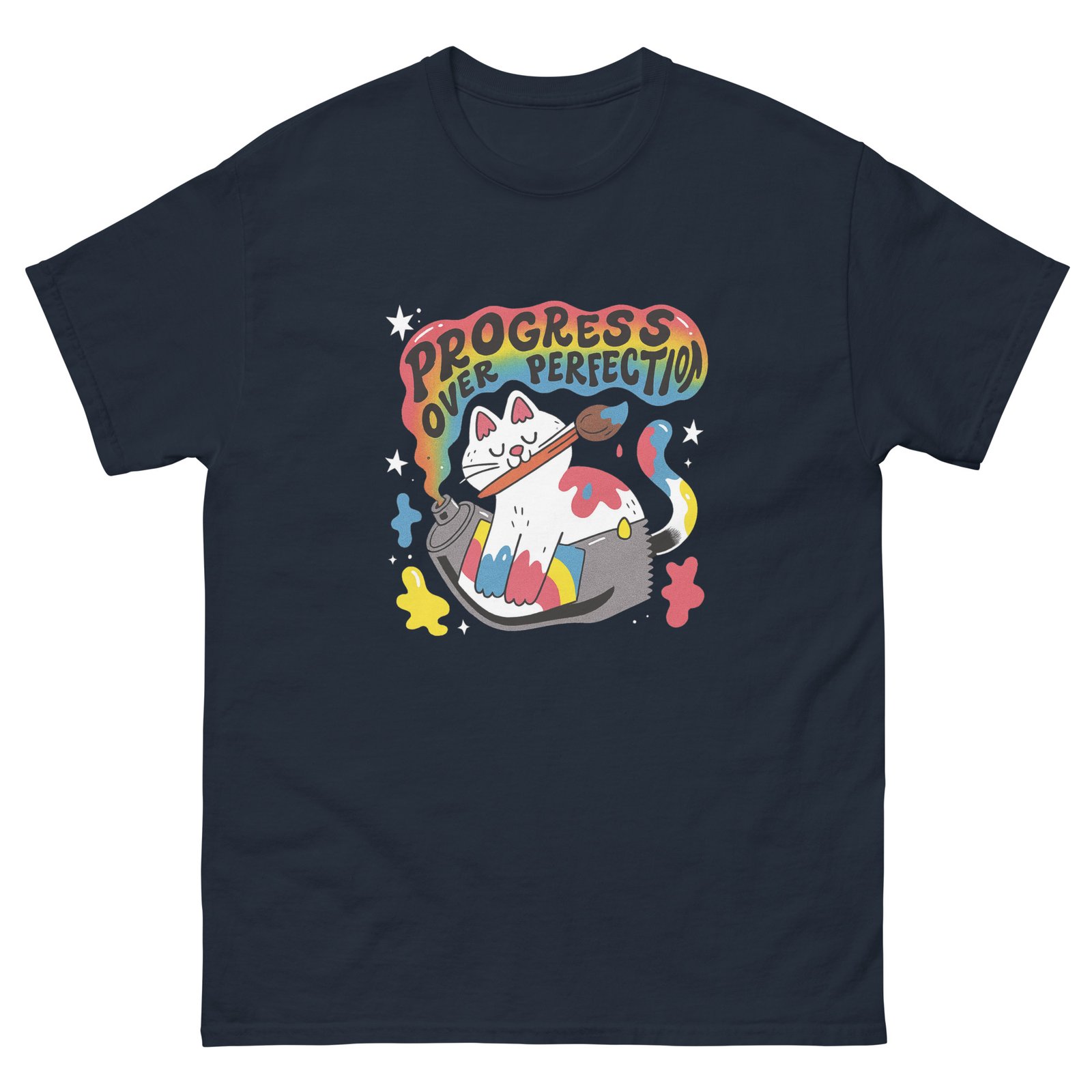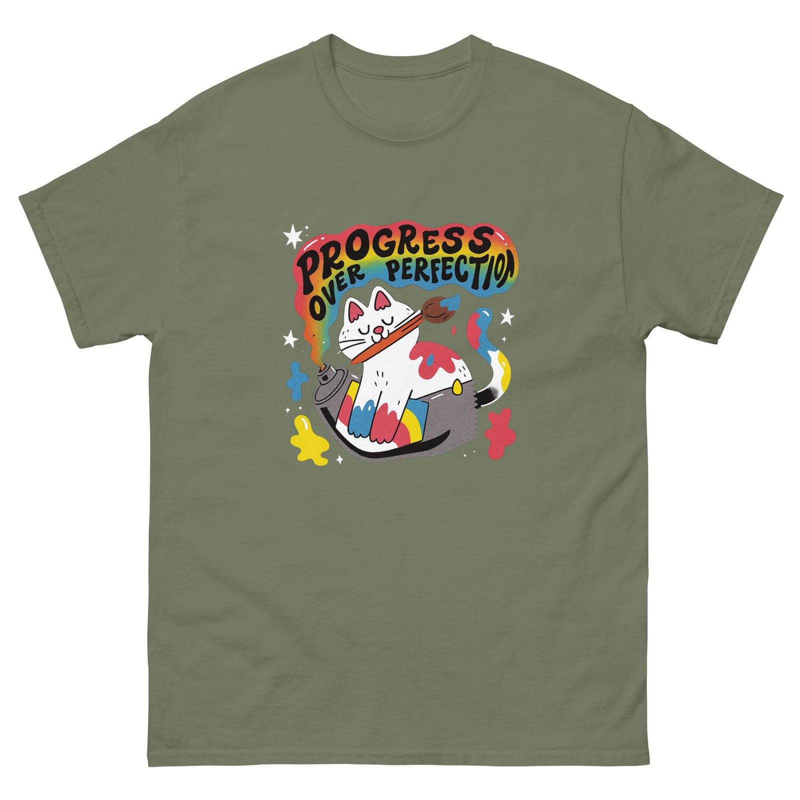 Progress Over Purrfection Cat – Colorful Motivational Cat Design Tee – Unisex classic tee