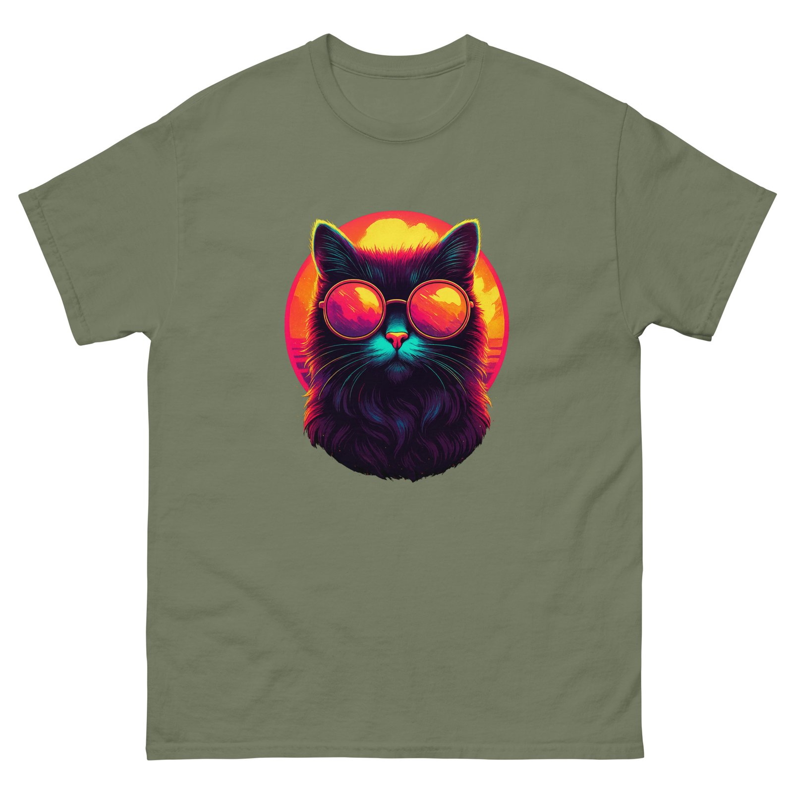 Psychedelic Neon Cat – Cool Retro Cat with Sunglasses Vaporwave Tee – Unisex classic tee