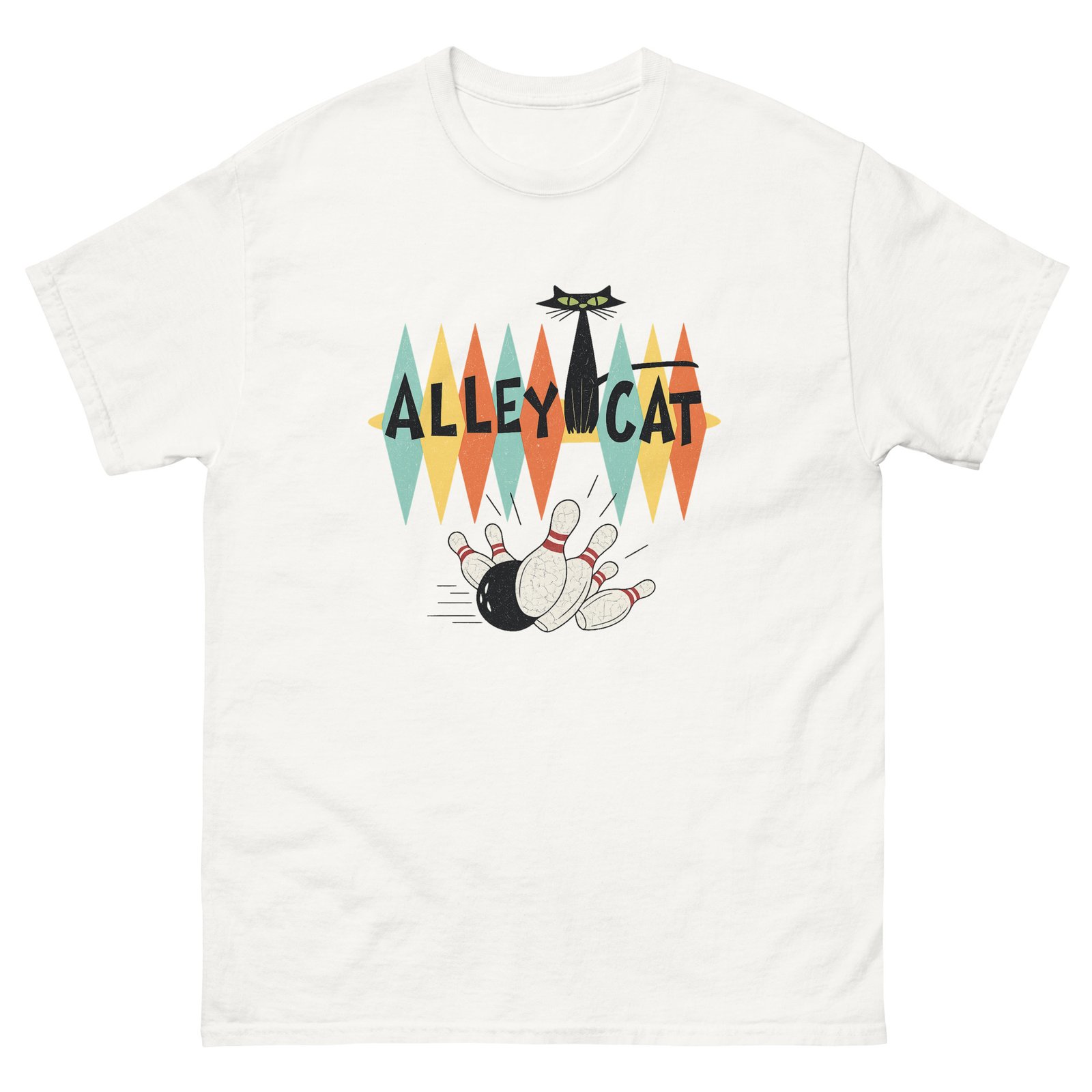 Retro Alley Cat Bowling – Vintage Cat Lover Graphic Tee – Unisex classic tee