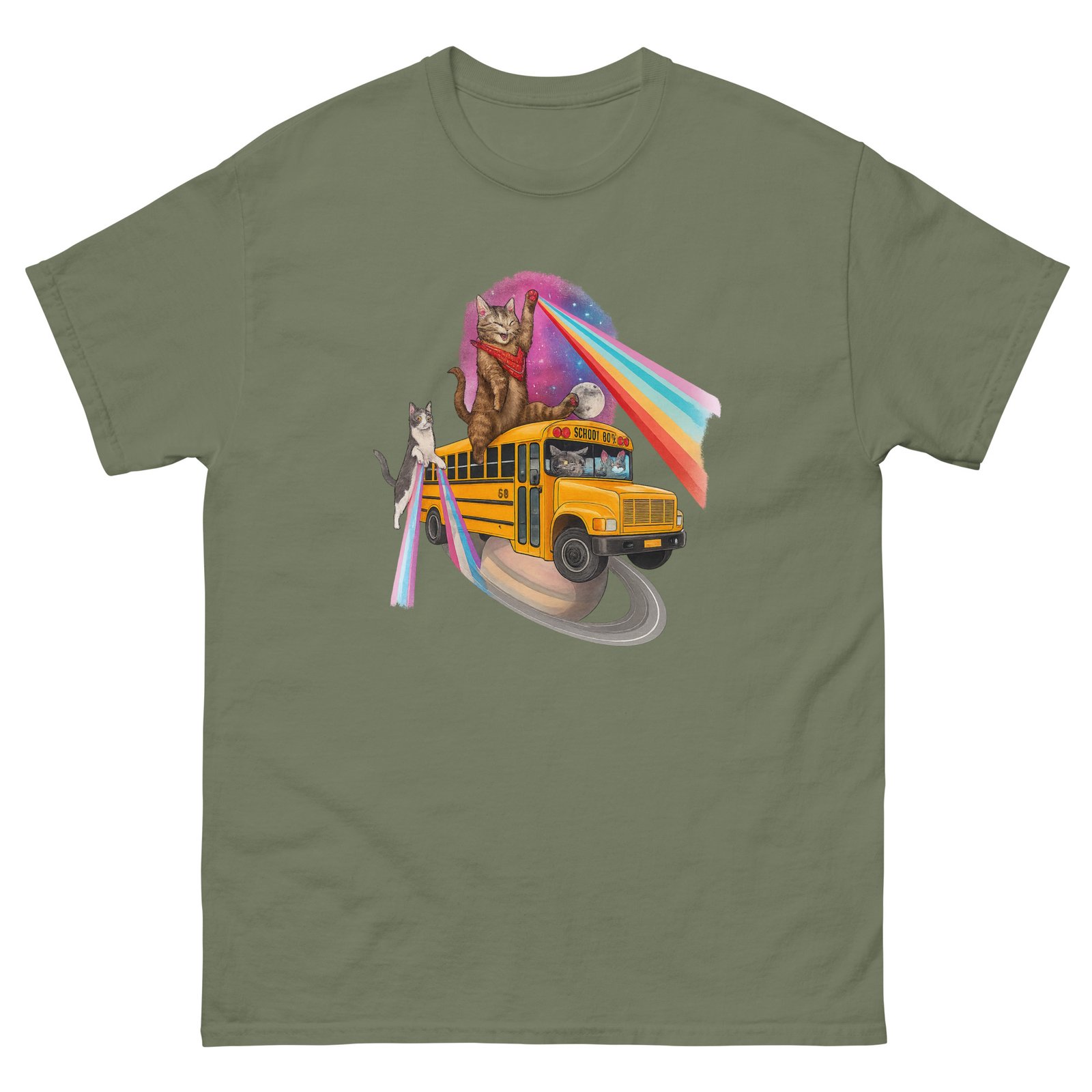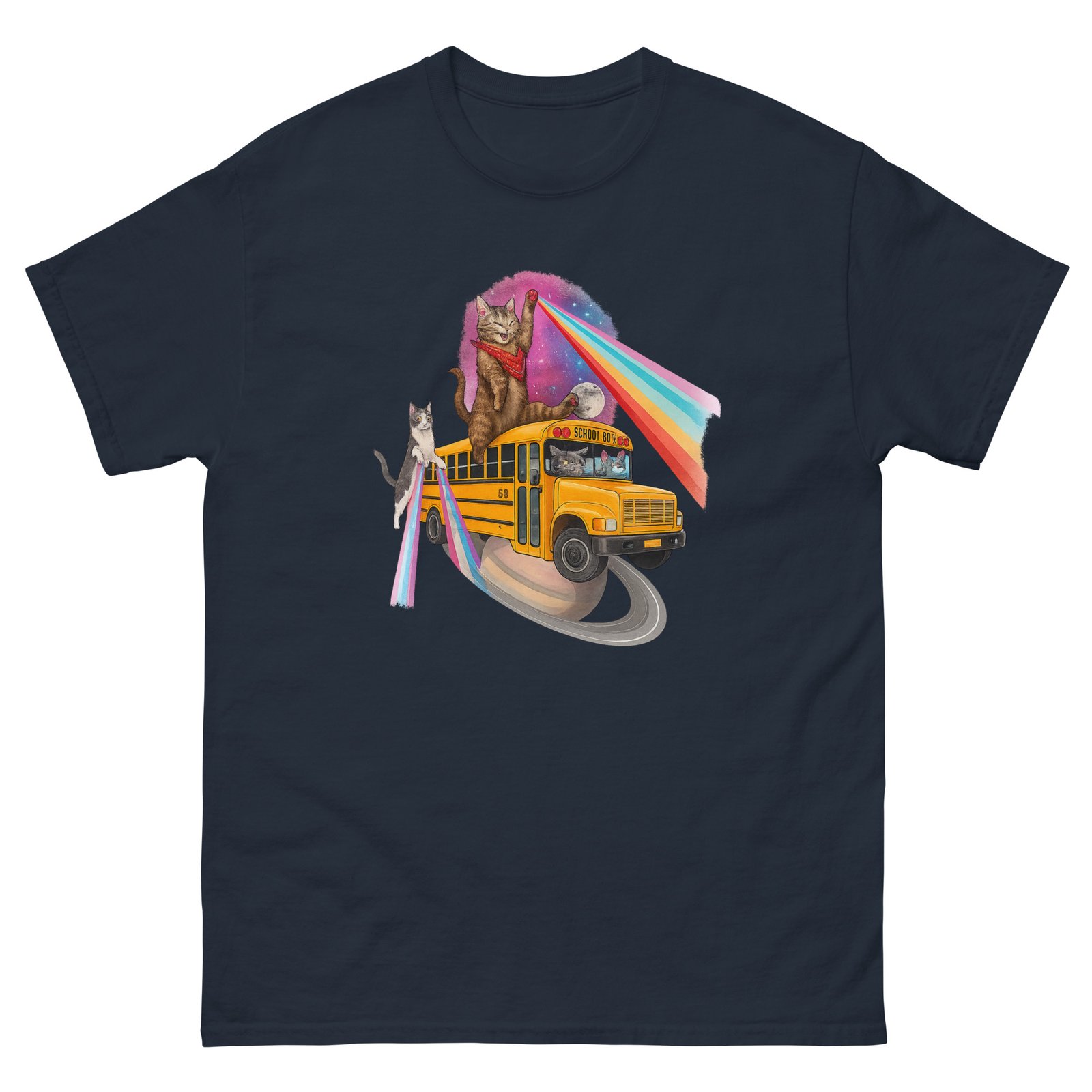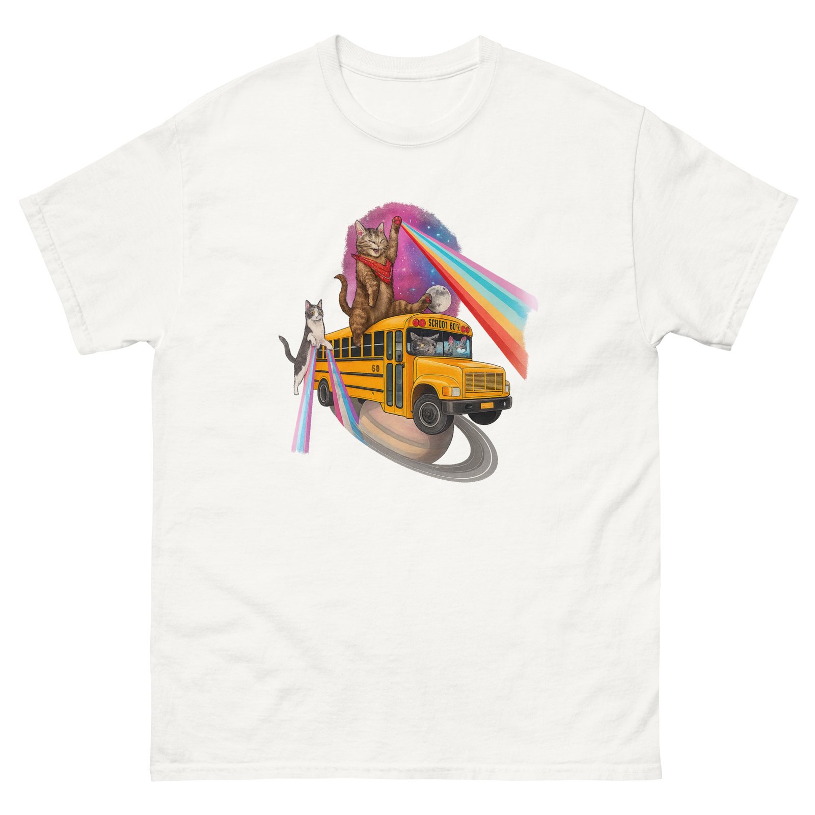 Retro Space Cat – Laser Cat Riding School Bus Funny Graphic Tee – Unisex classic tee