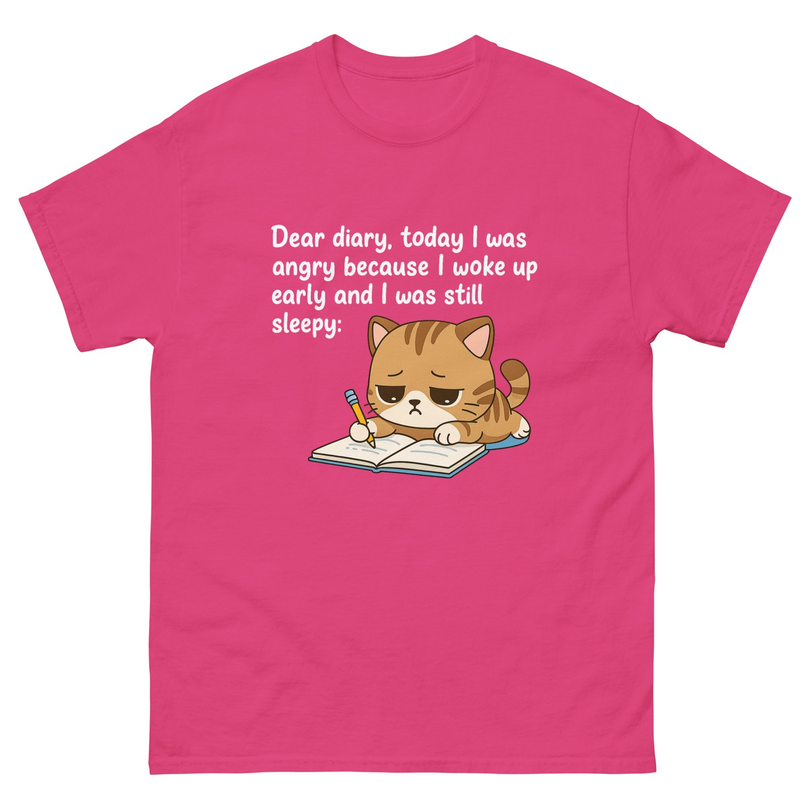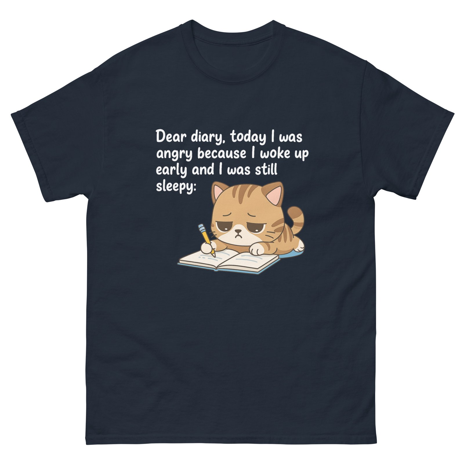 Sleepy Cat Diary – Dear Diary, I Was Angry Because I Woke Up Early Cute Cat Graphic Tee – Unisex classic tee