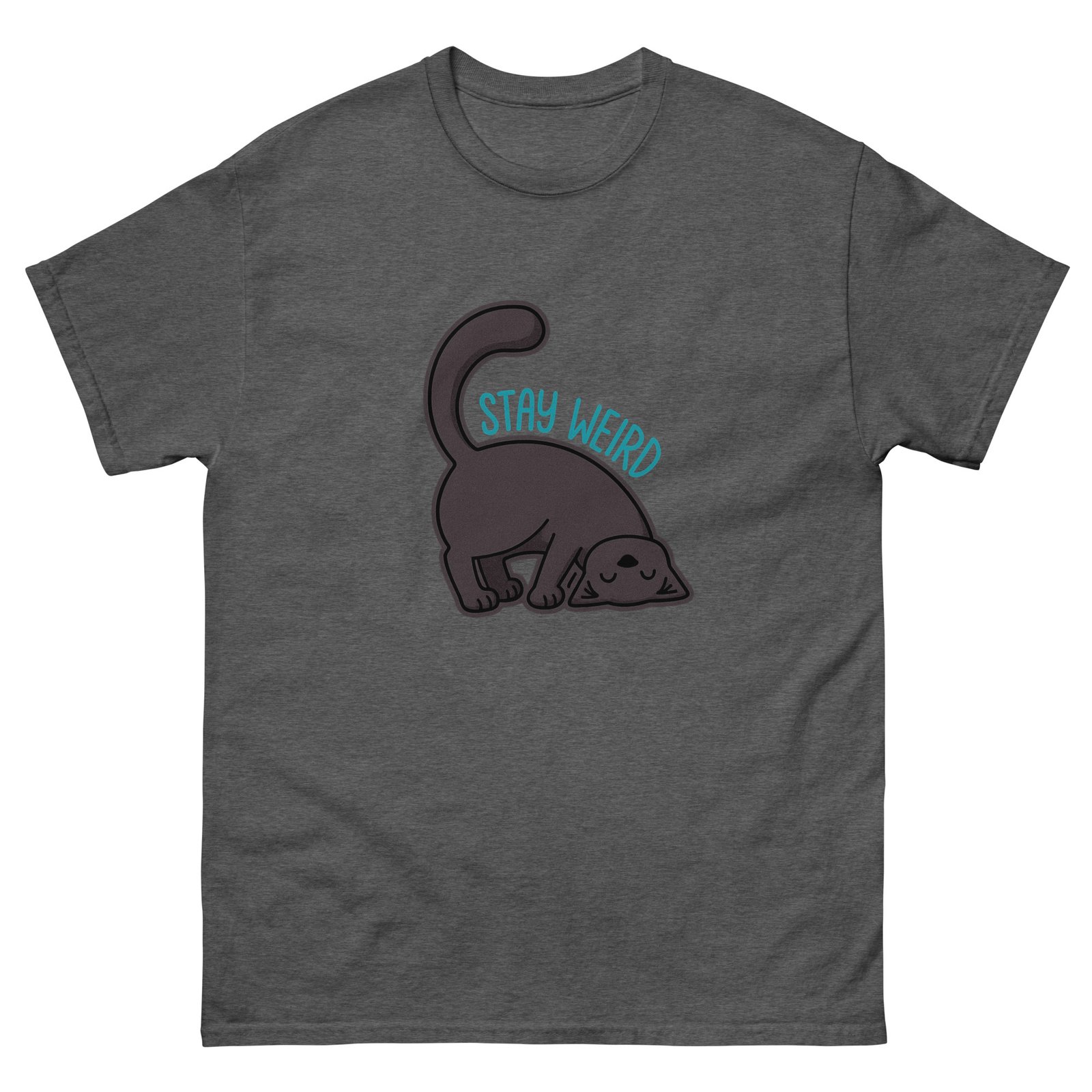 Stay Weird Black Cat- Quirky Funny Cat Lover T-Shirt with Stretching Cat – Unisex classic tee