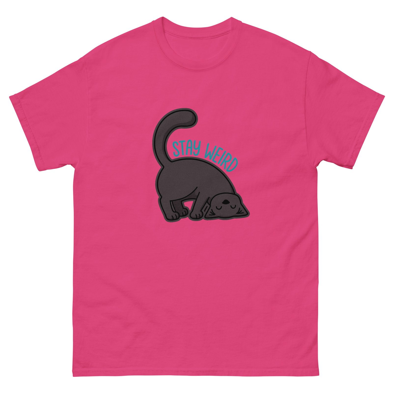 Stay Weird Black Cat- Quirky Funny Cat Lover T-Shirt with Stretching Cat – Unisex classic tee