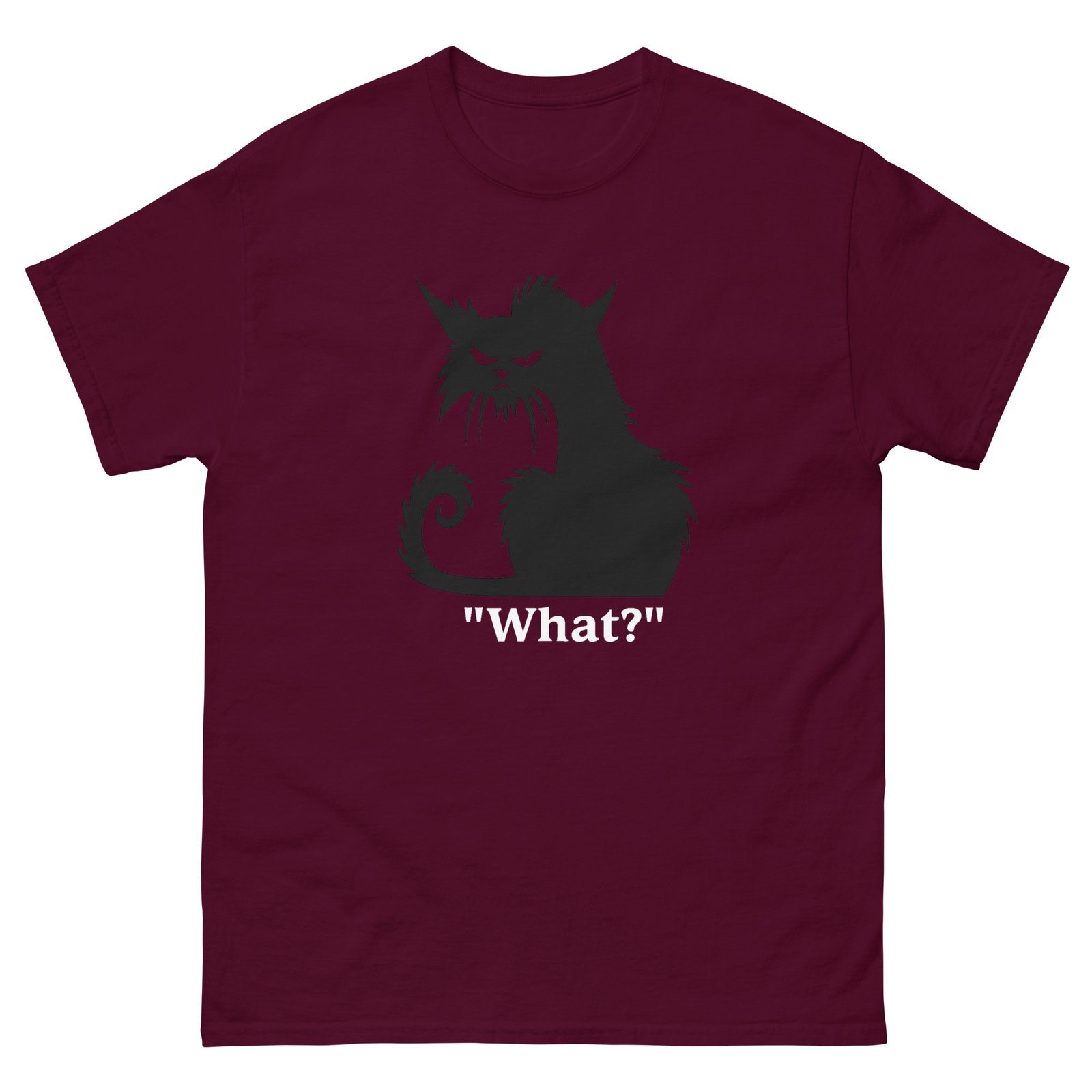 Funny Black Cat – Grumpy Cat “What” Silhouette Graphic Tee – Unisex classic tee