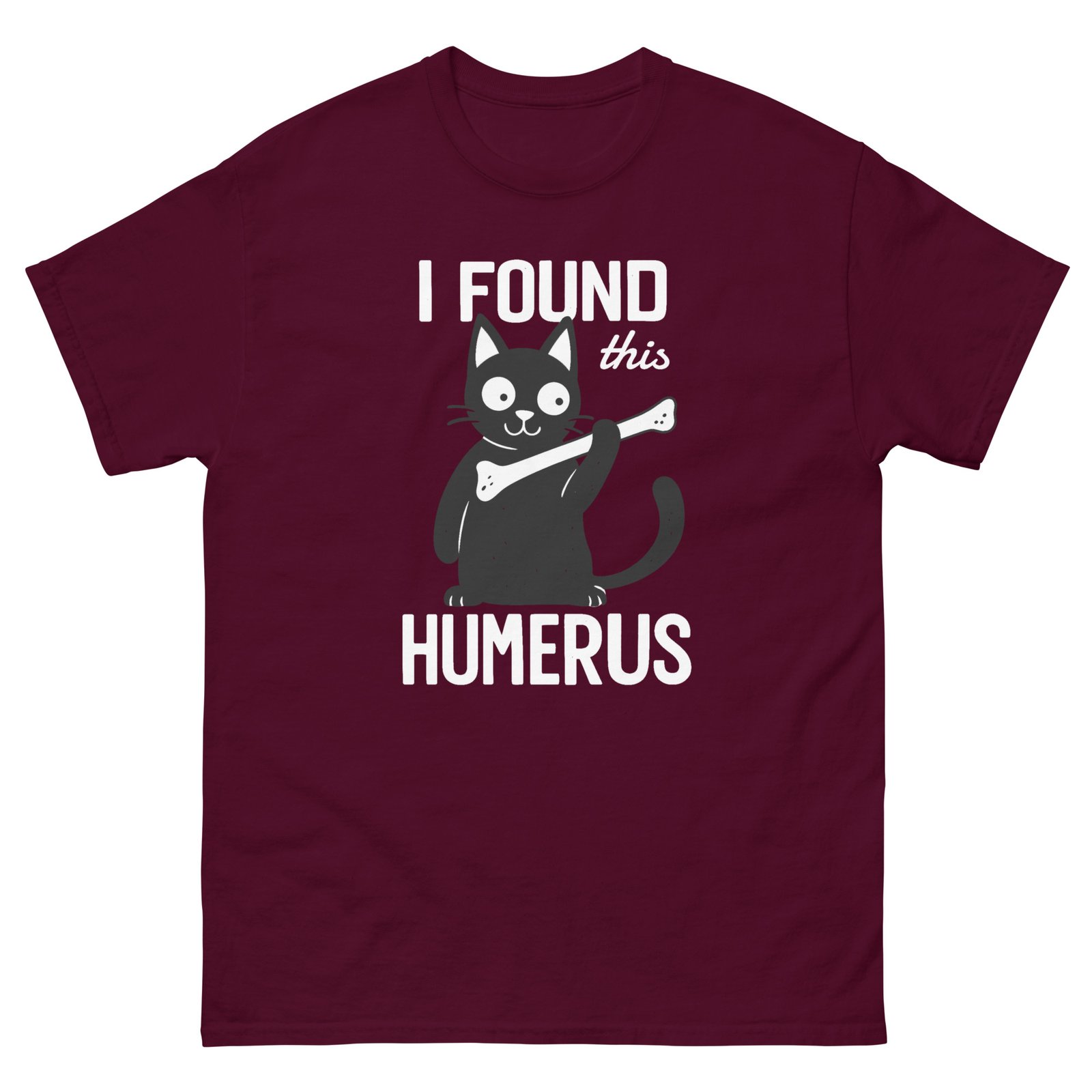 I Found This Humerus – Pun Cat – Funny Skeleton Cat Joke Graphic Tee – Unisex classic tee