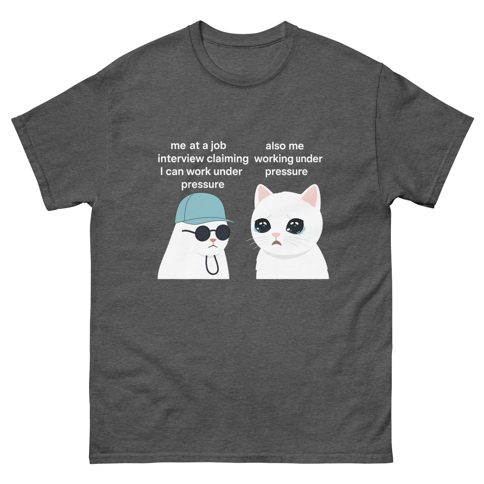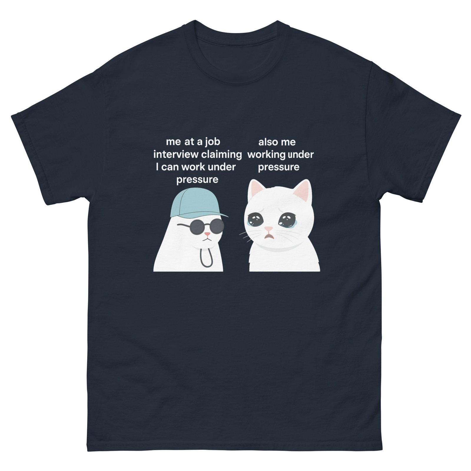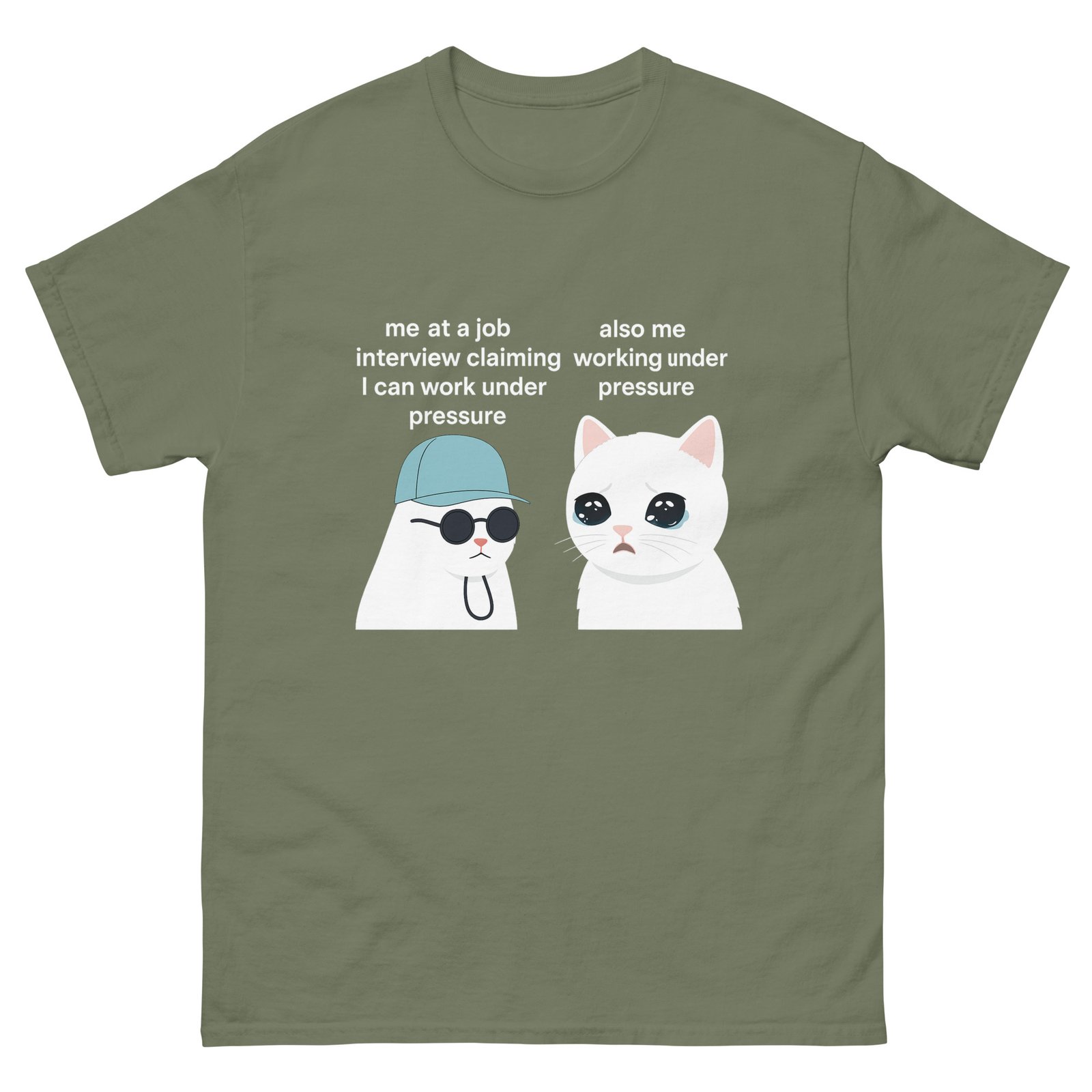 Work Under Pressure Cat – Funny Job Interview Cat Meme T-Shirt – Unisex classic tee