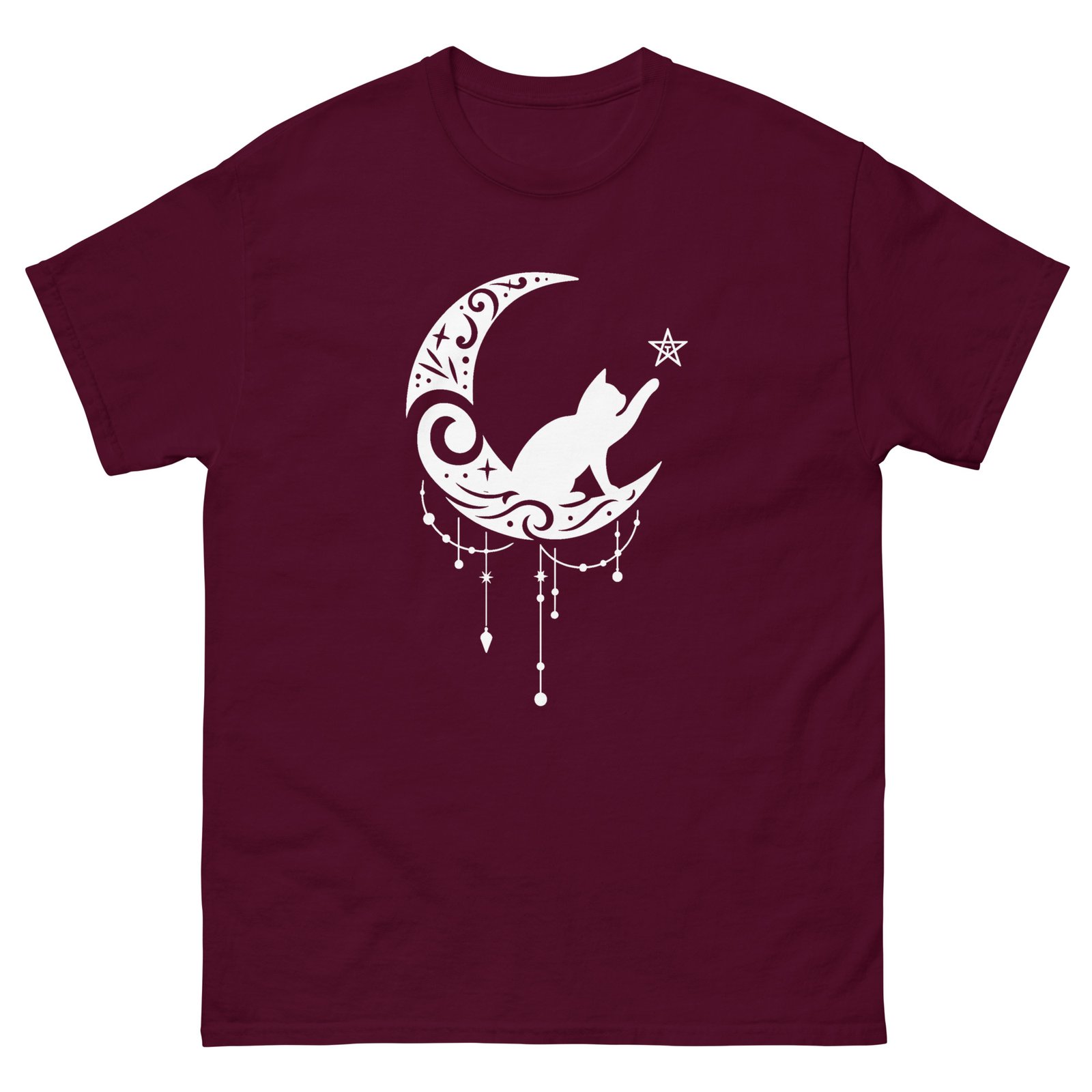 Witchy Cat – Black Cat Sitting on Crescent Moon Magical Halloween Tee – Unisex classic tee
