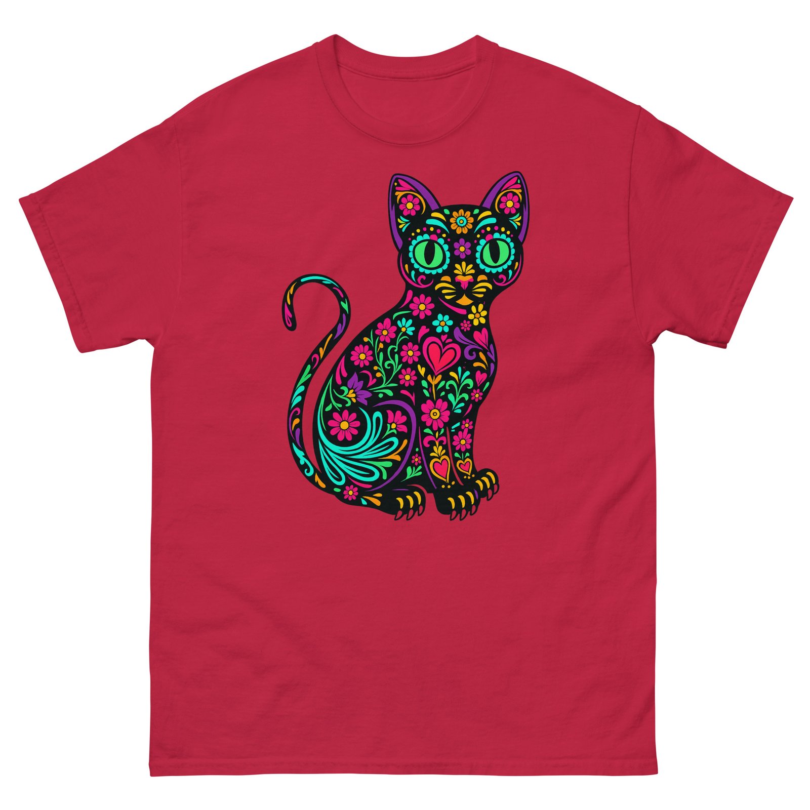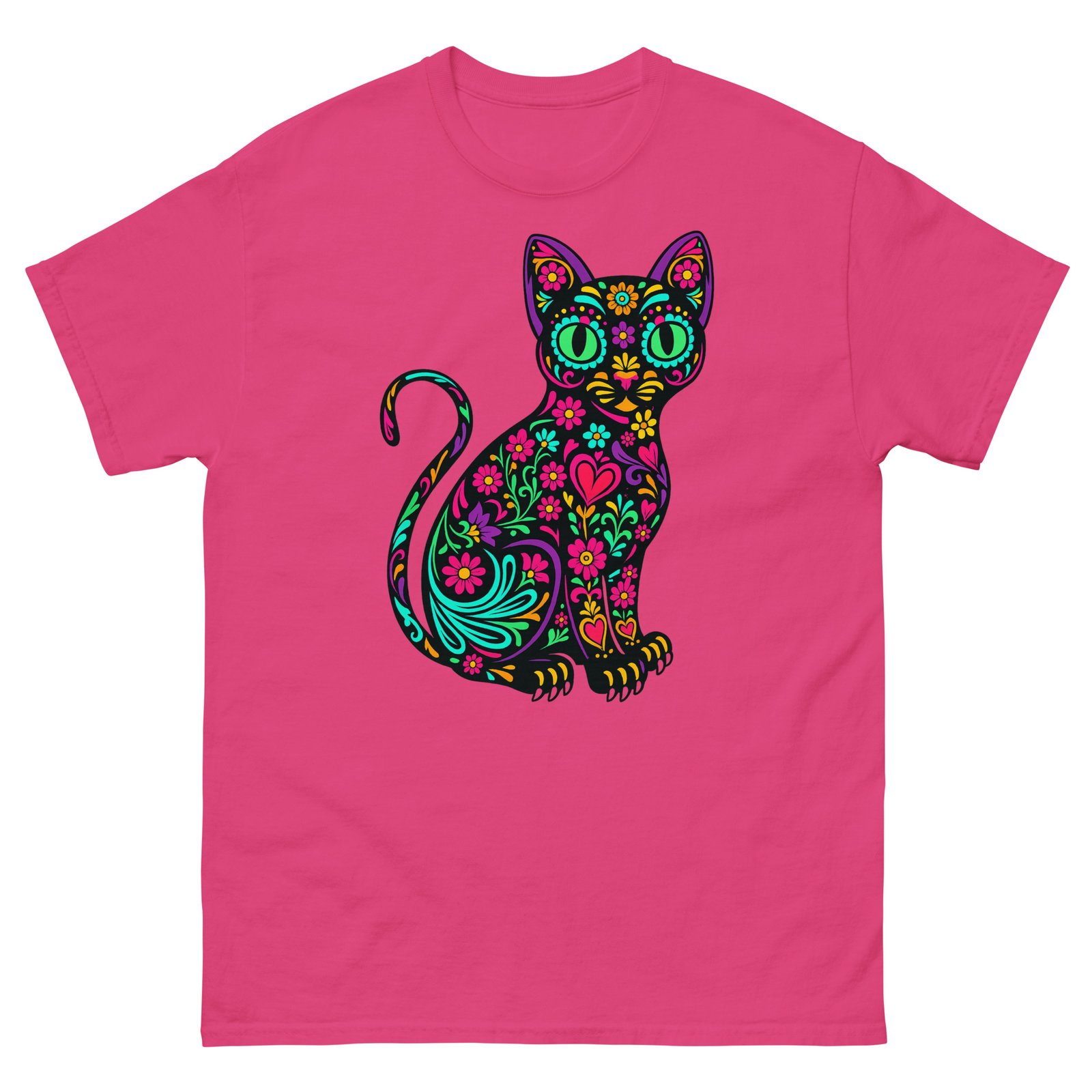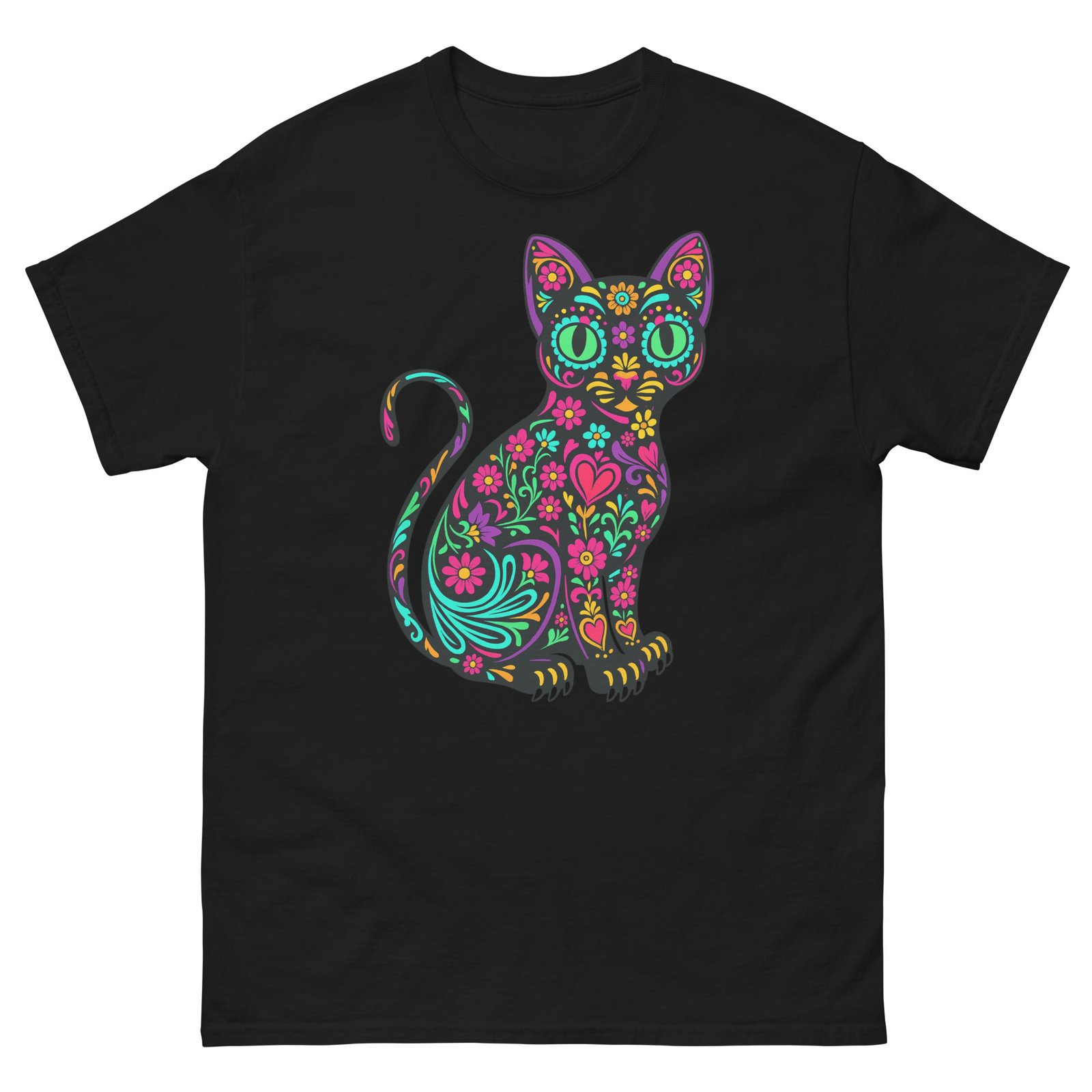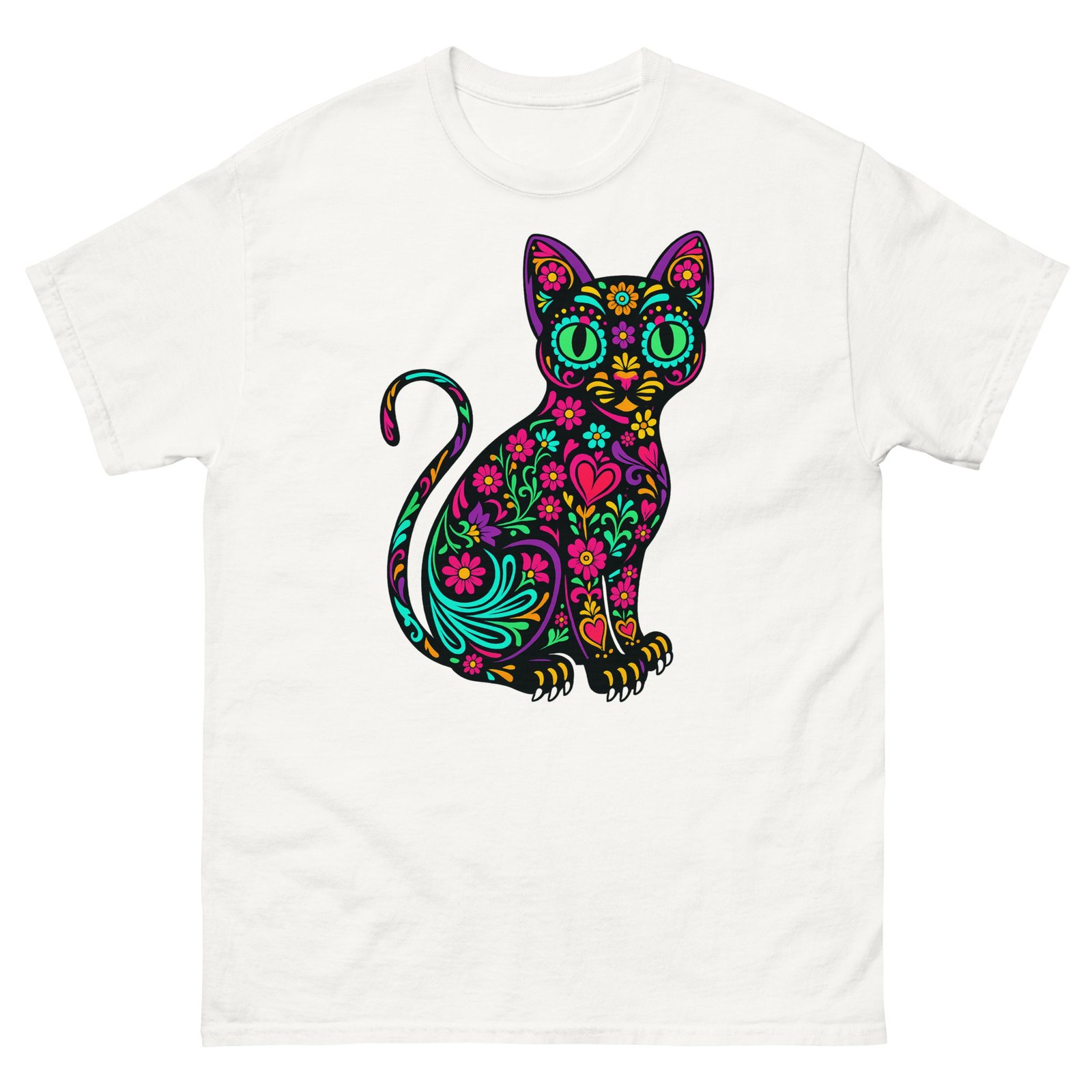Sugar Skull Cat – Colorful Floral Day of the Dead Kitty – Unisex classic tee