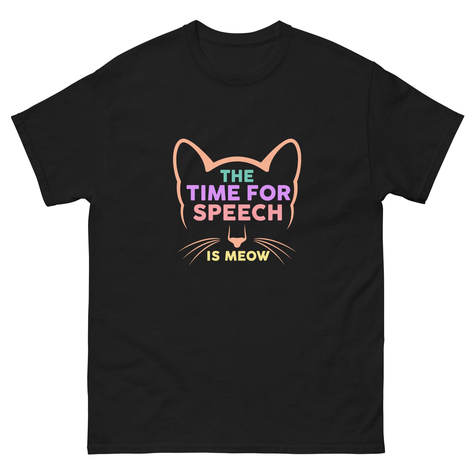 The Time for Speech is Meow Cat – Funny Cute Cat Lover Graphic Tee – Unisex classic tee