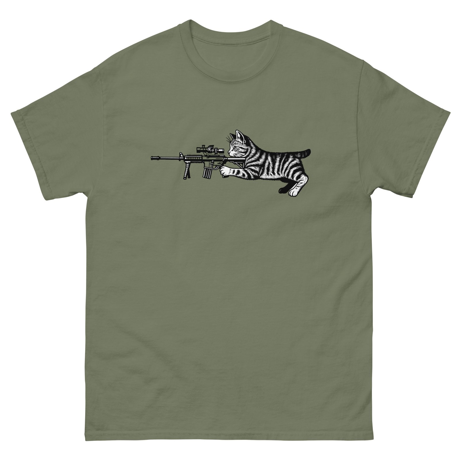 Tactical Cat – Funny Cat with Rifle Meme Military Style T-Shirt – Unisex classic tee