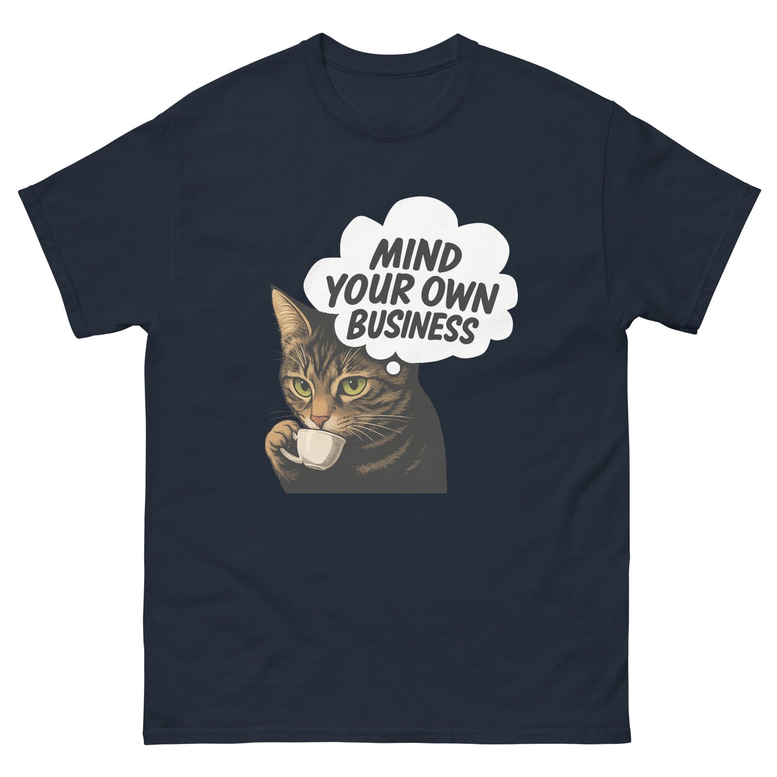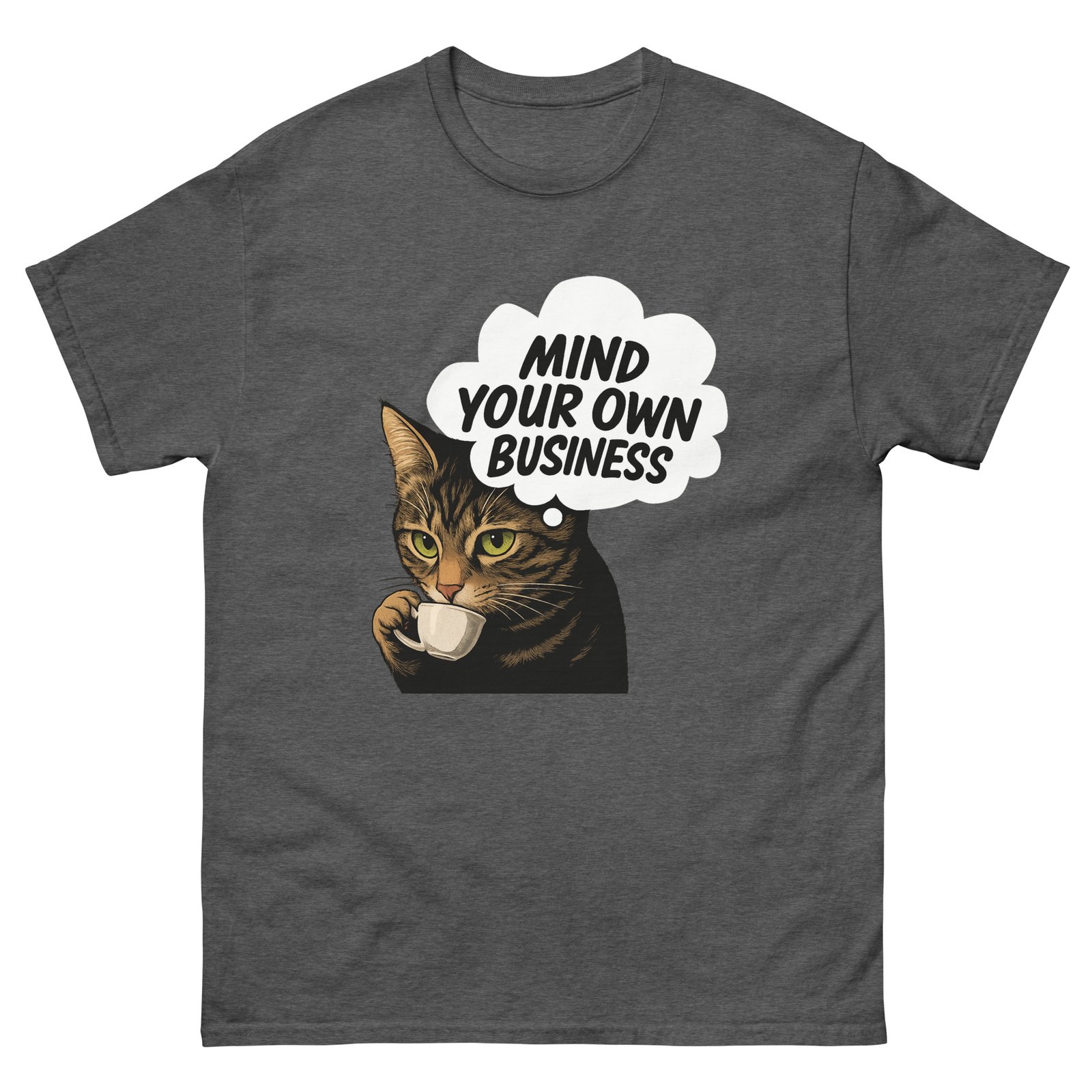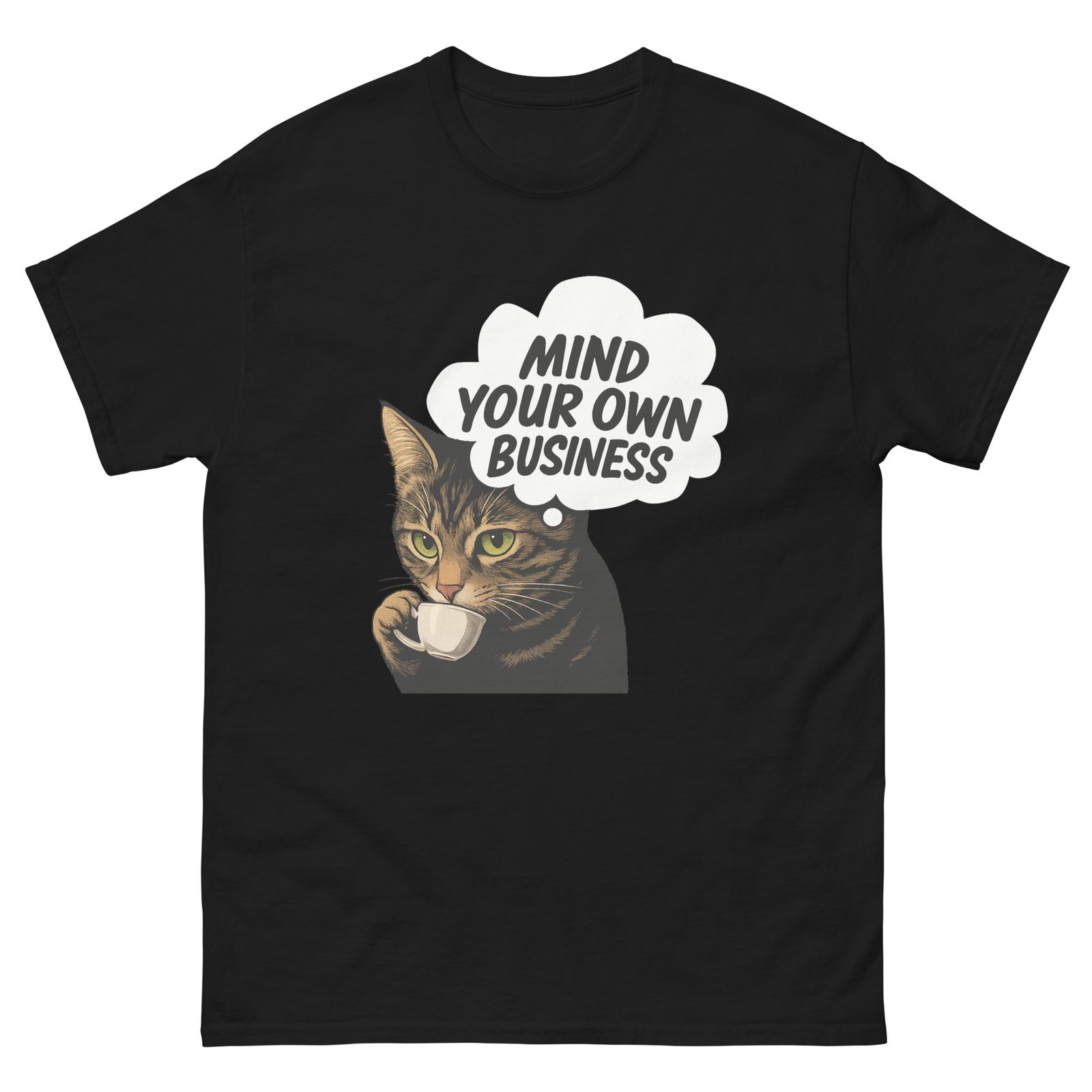 Mind Your Own Business Cat – Grumpy Coffee Cat Lover Funny Tee – Unisex classic tee