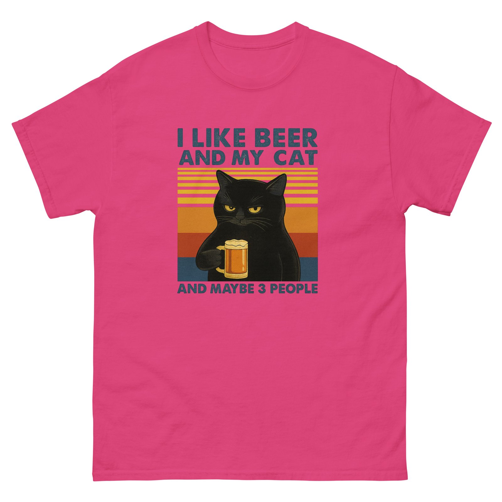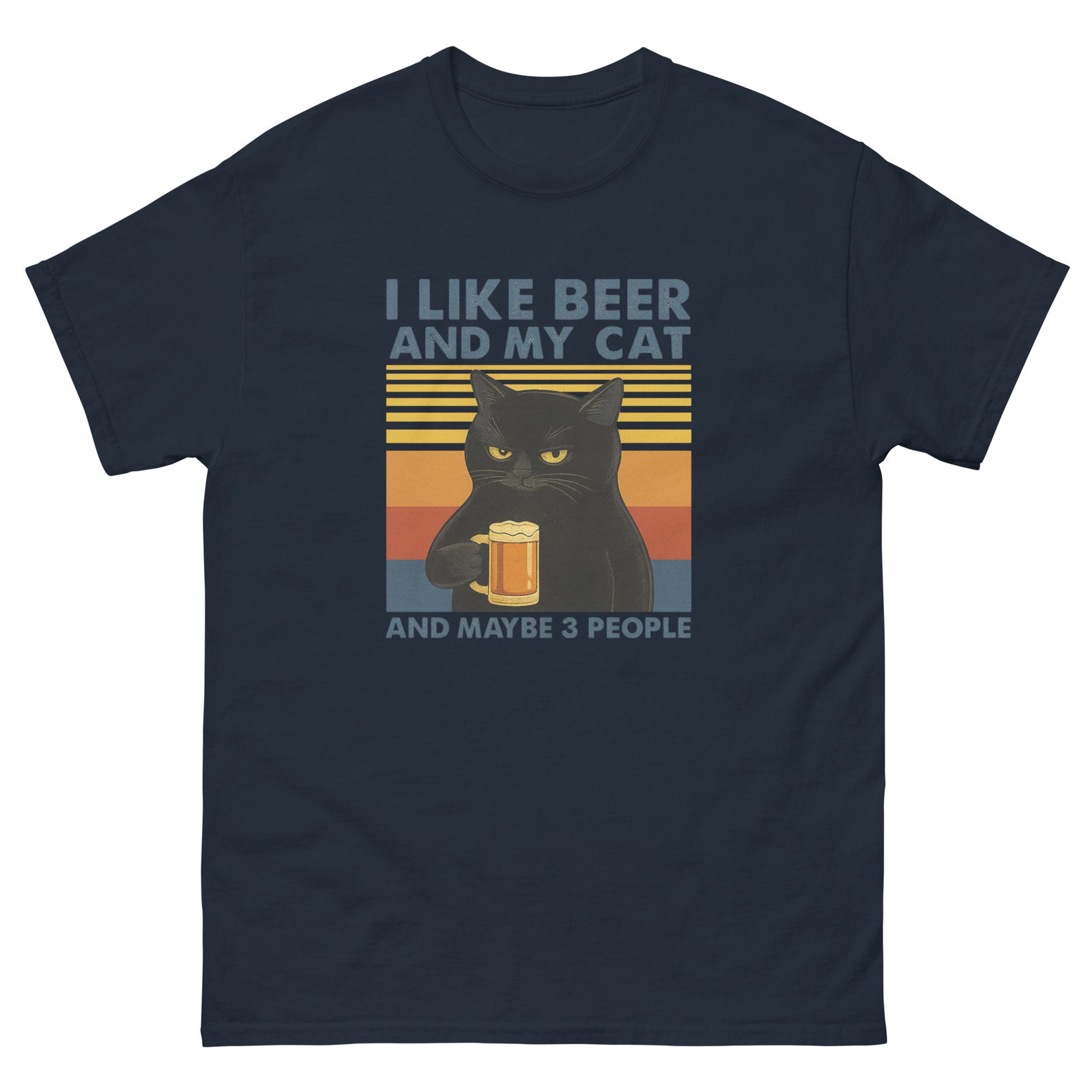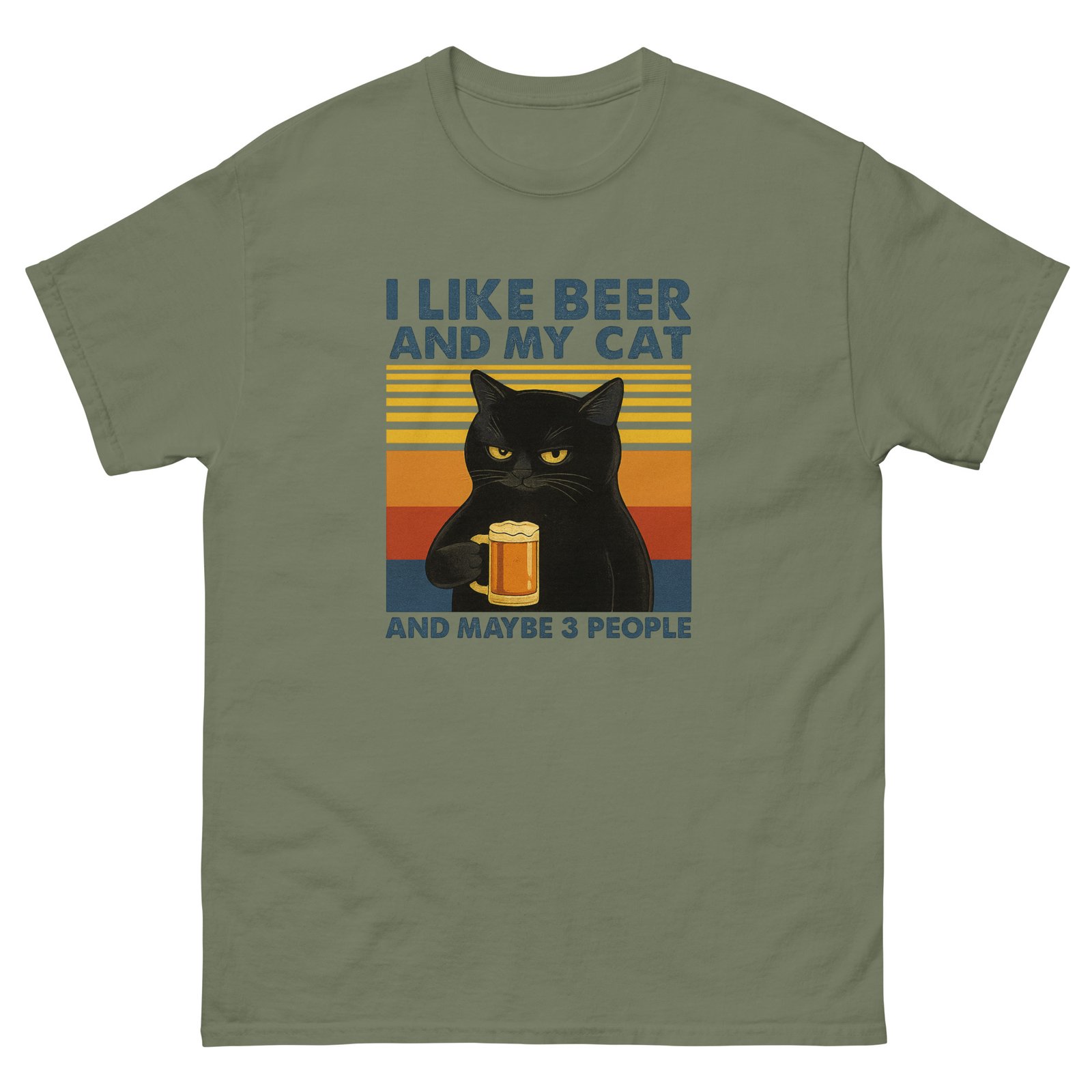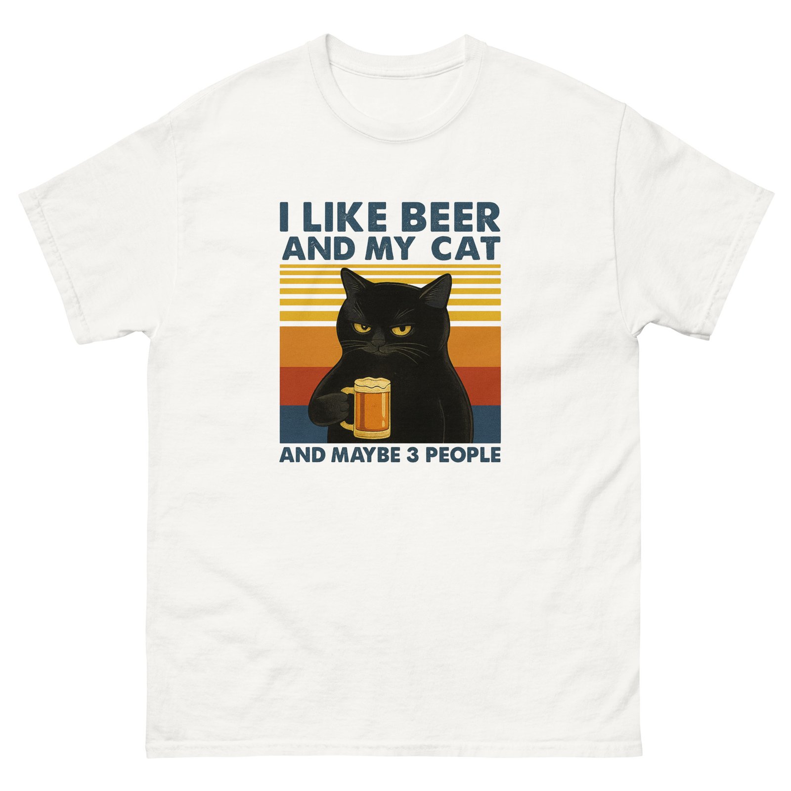 I Like Beer and My Cat – Funny Cat Dad Drinking Lover Graphic Tee – Unisex classic tee