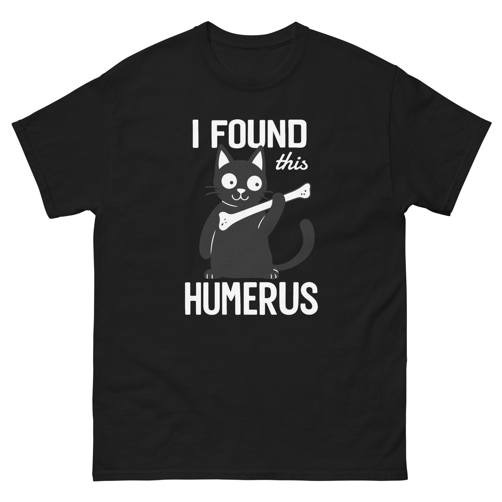 I Found This Humerus – Pun Cat – Funny Skeleton Cat Joke Graphic Tee – Unisex classic tee