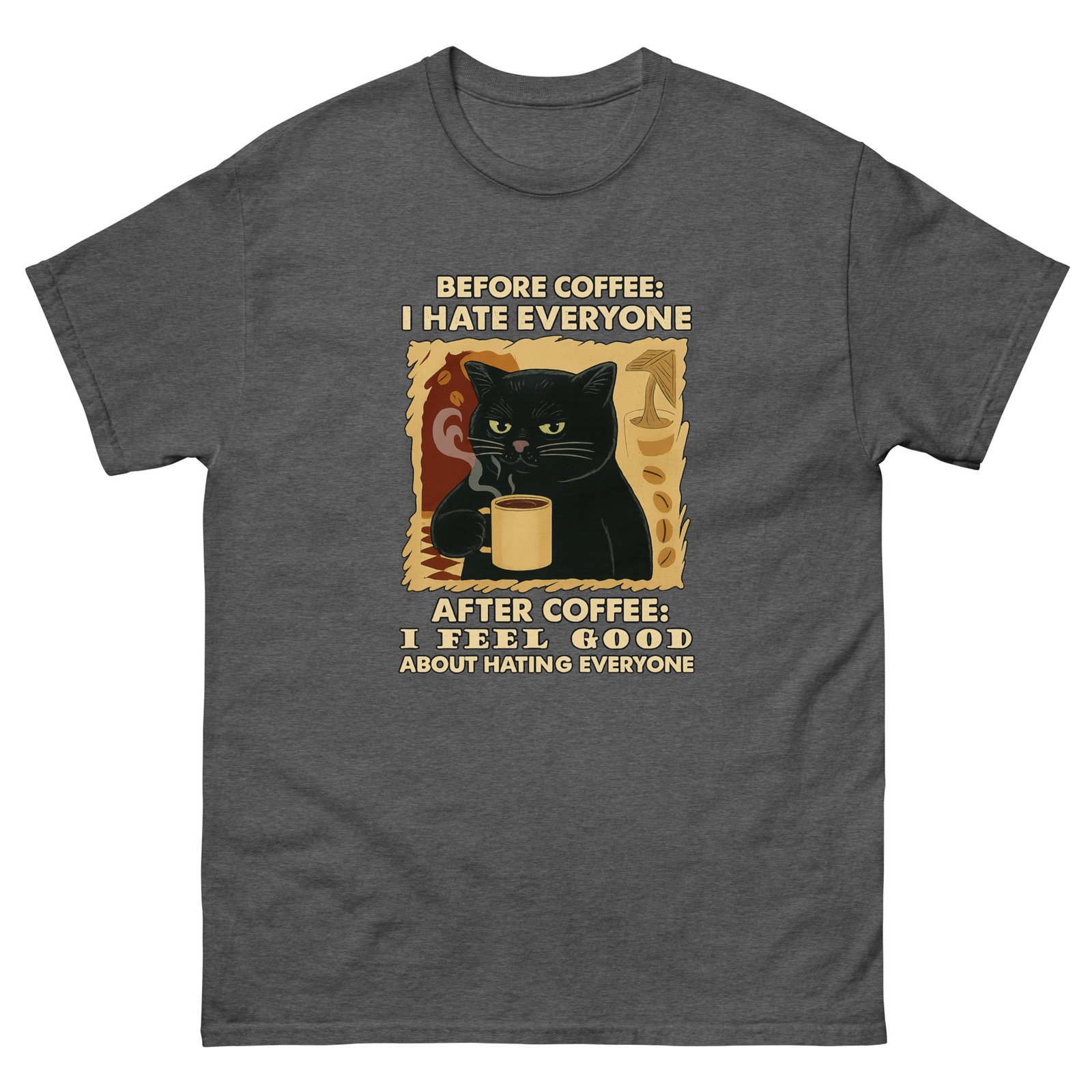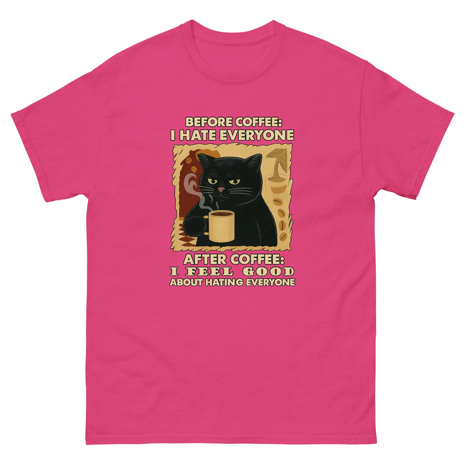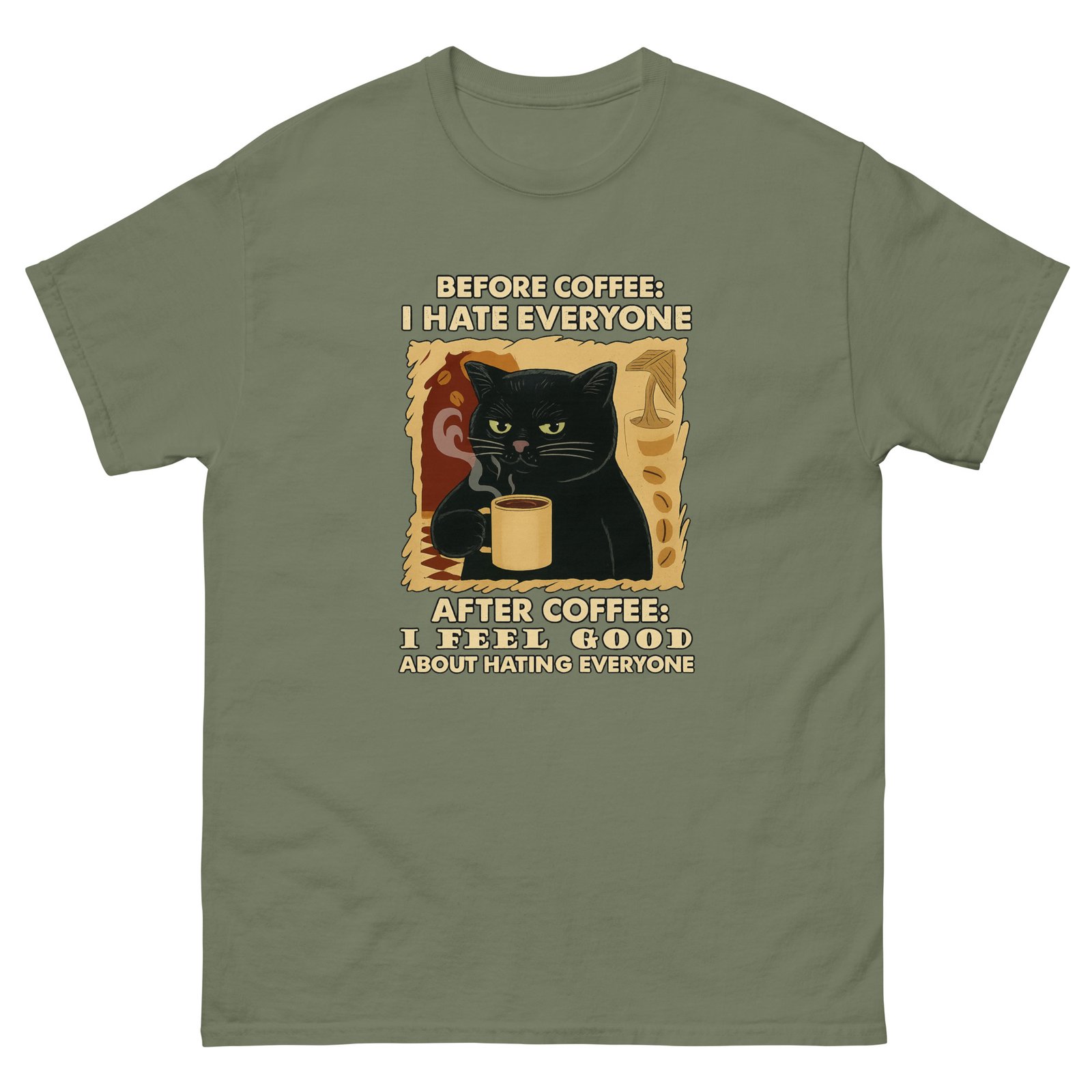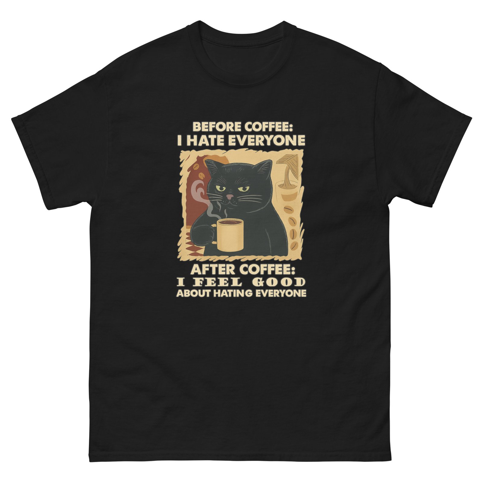 Before Coffee I Hate Everyone, After Coffee – Funny Coffee Cat – Sarcastic Cat Tee – Unisex classic tee