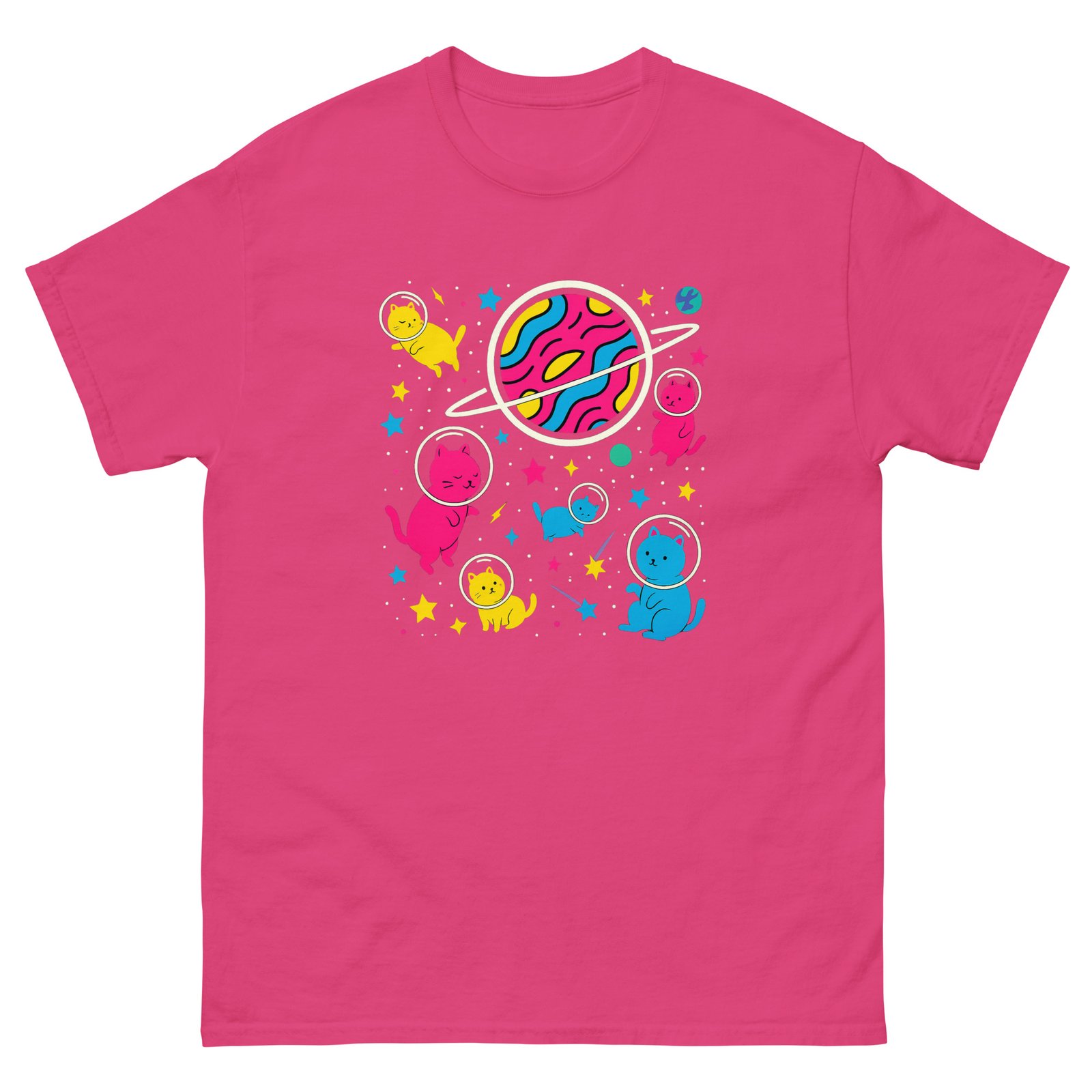 Space Cats – Colorful Planet Galaxy Cat Lover Graphic Tee – Unisex classic tee