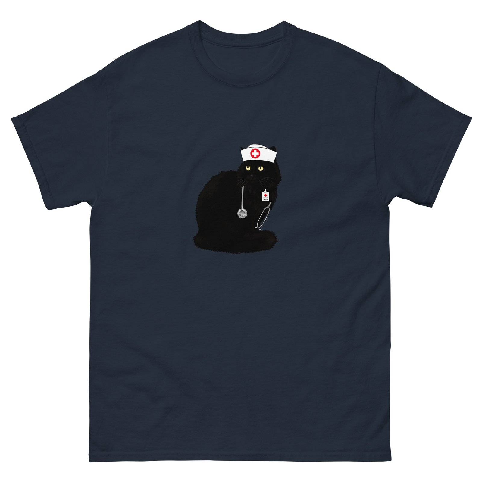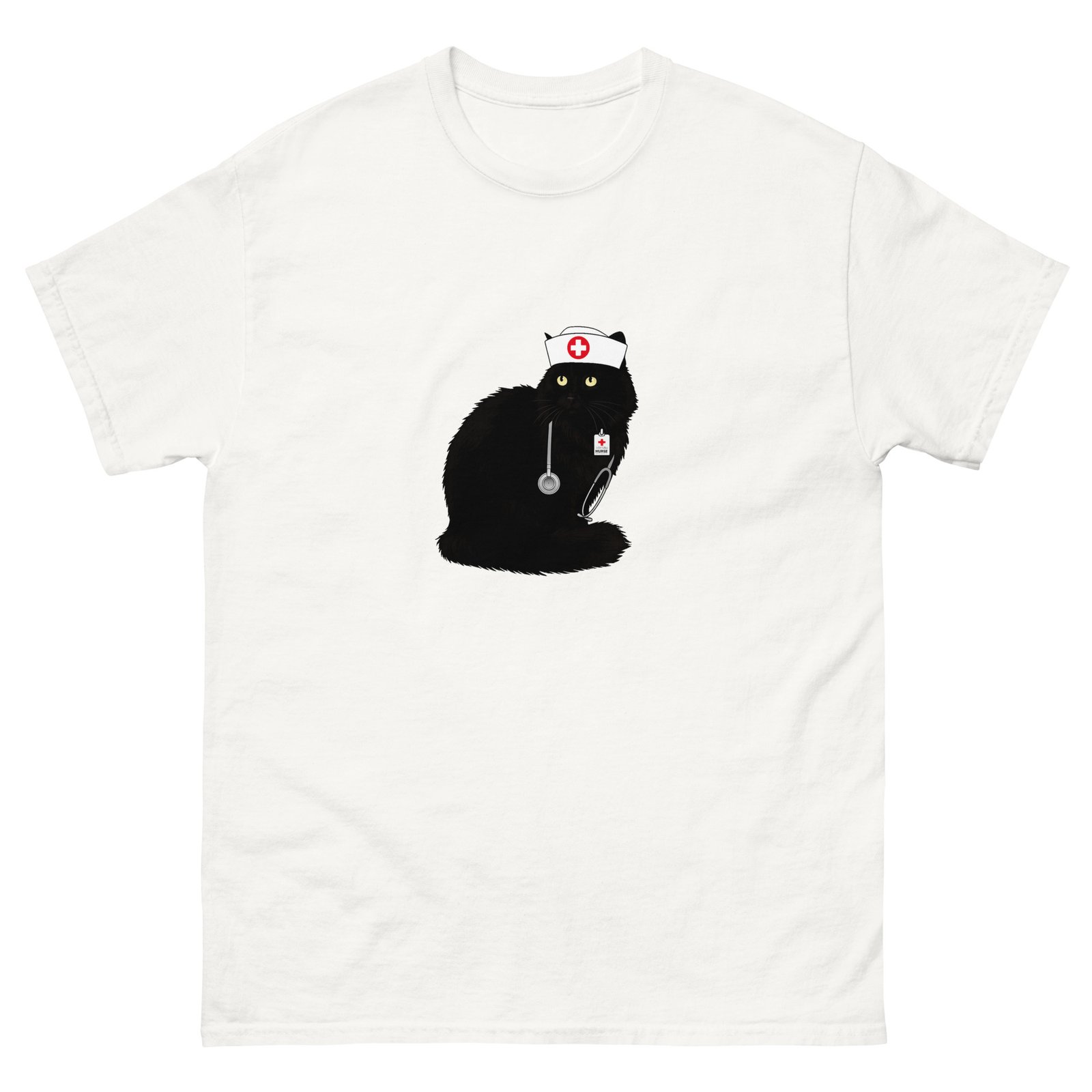 Nurse Cat – Funny Black Cat in Nurse Outfit Medical Graphic Tee – Unisex classic tee