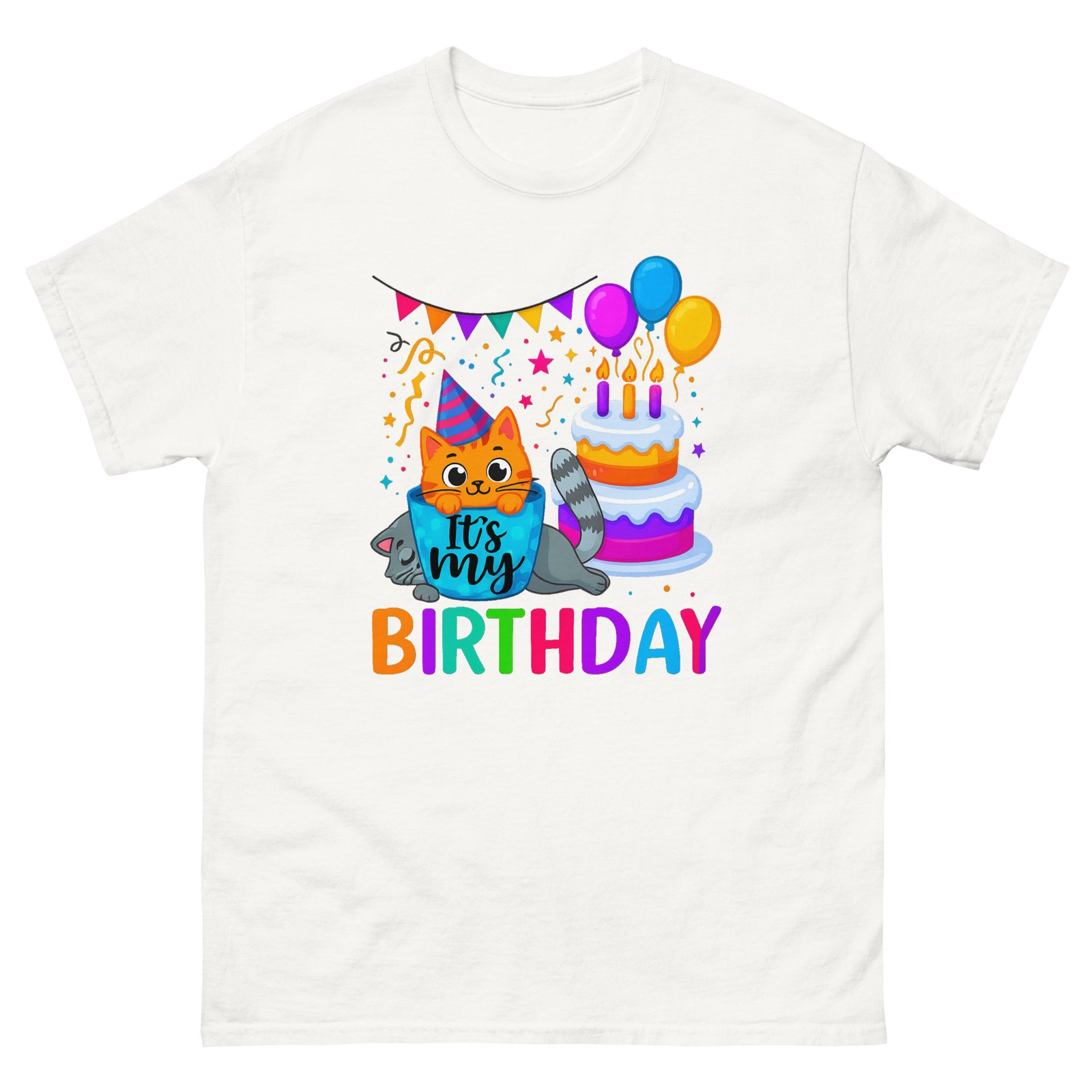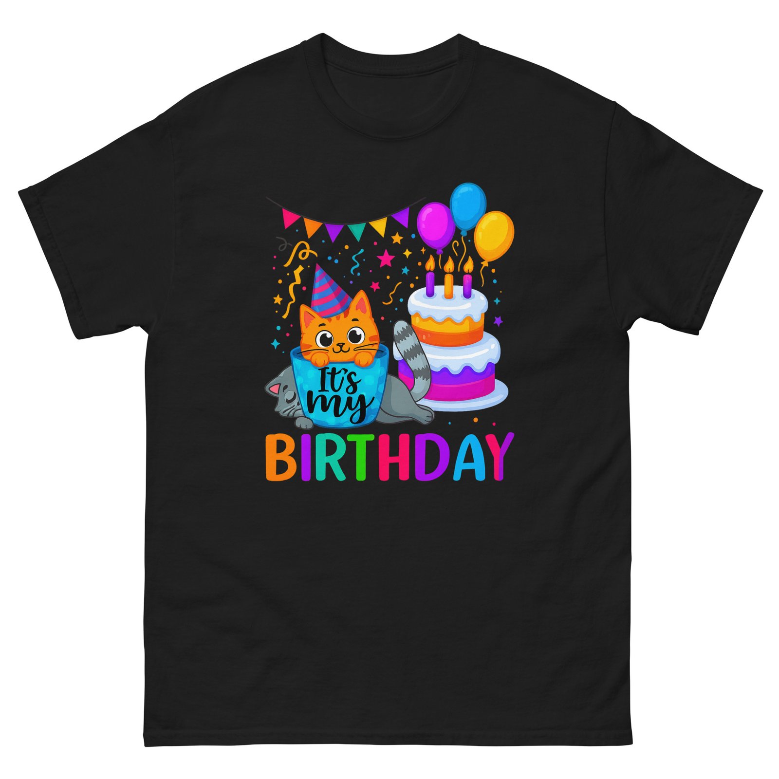 Birthday Cat – Funny Party Cat with Balloons and Cake Graphic Tee – Unisex classic tee
