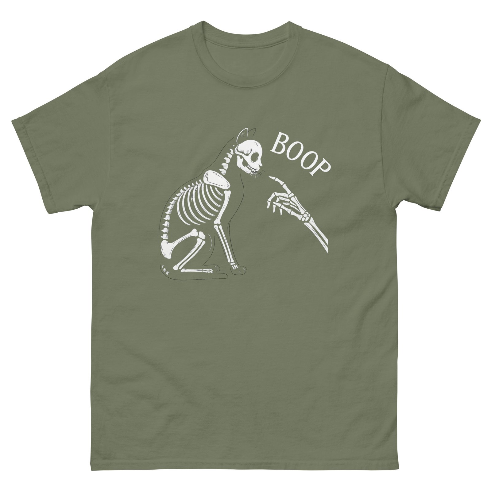Skeleton Cat Shirt – Funny Halloween Boop Cat Bones Graphic Tee – Unisex classic tee