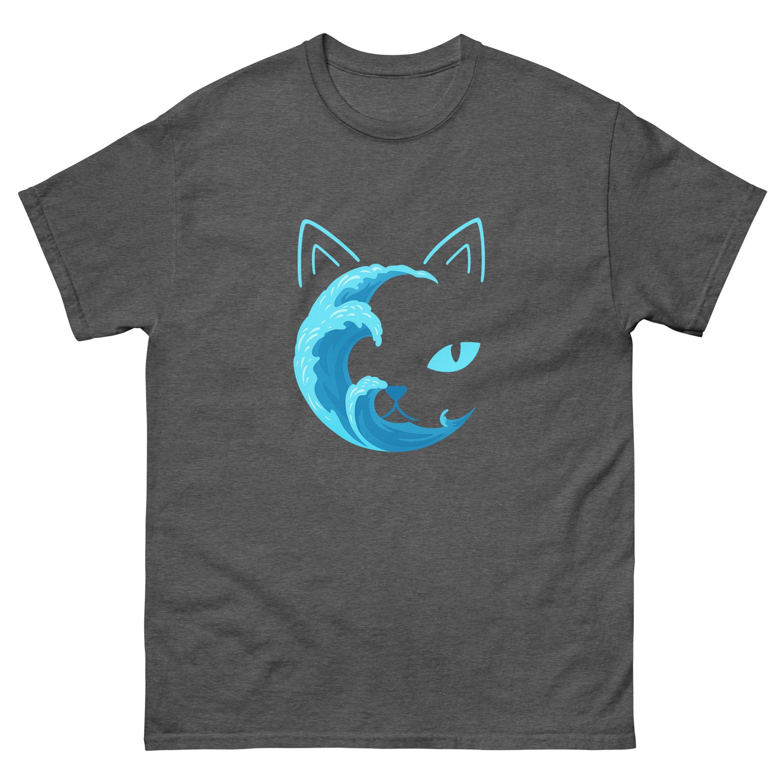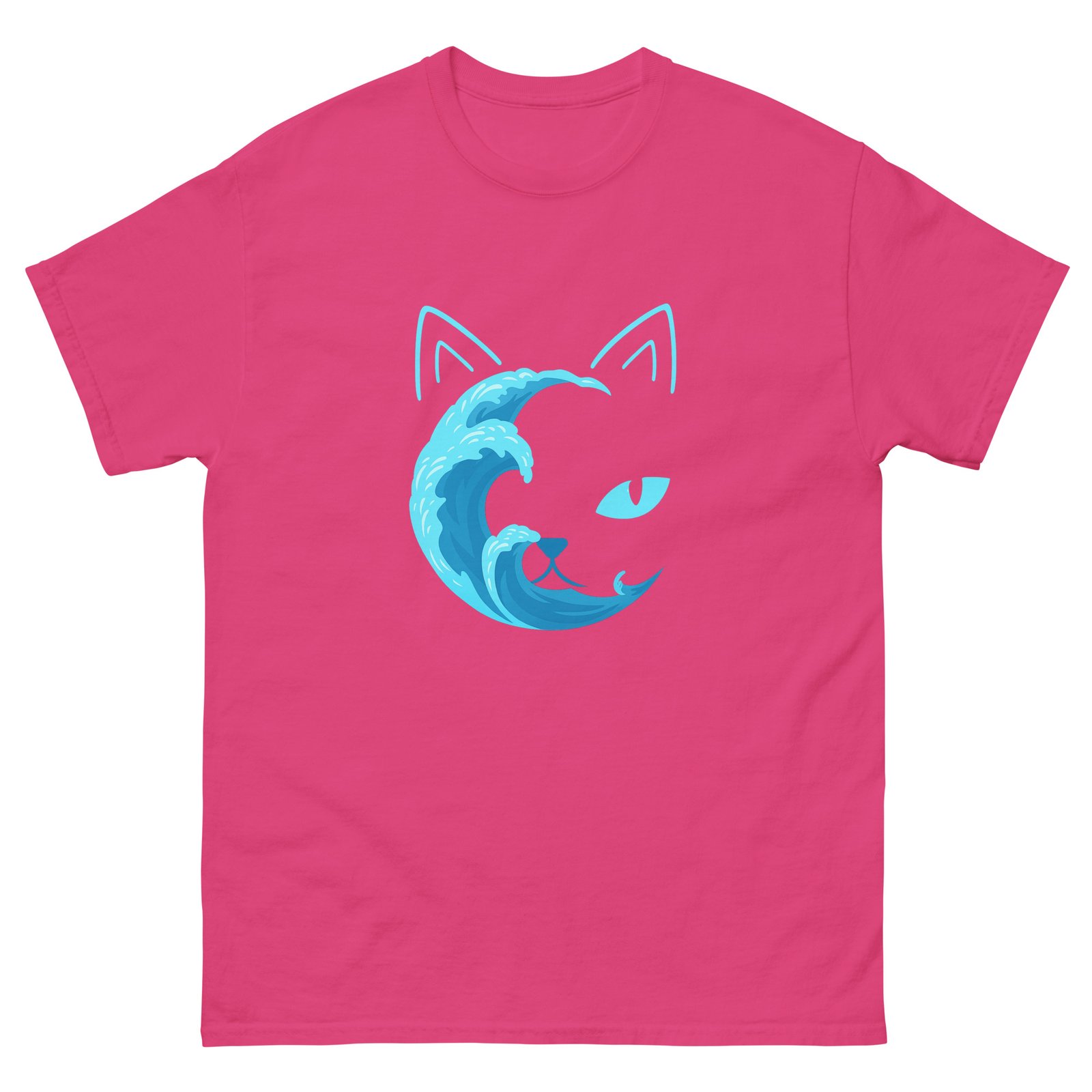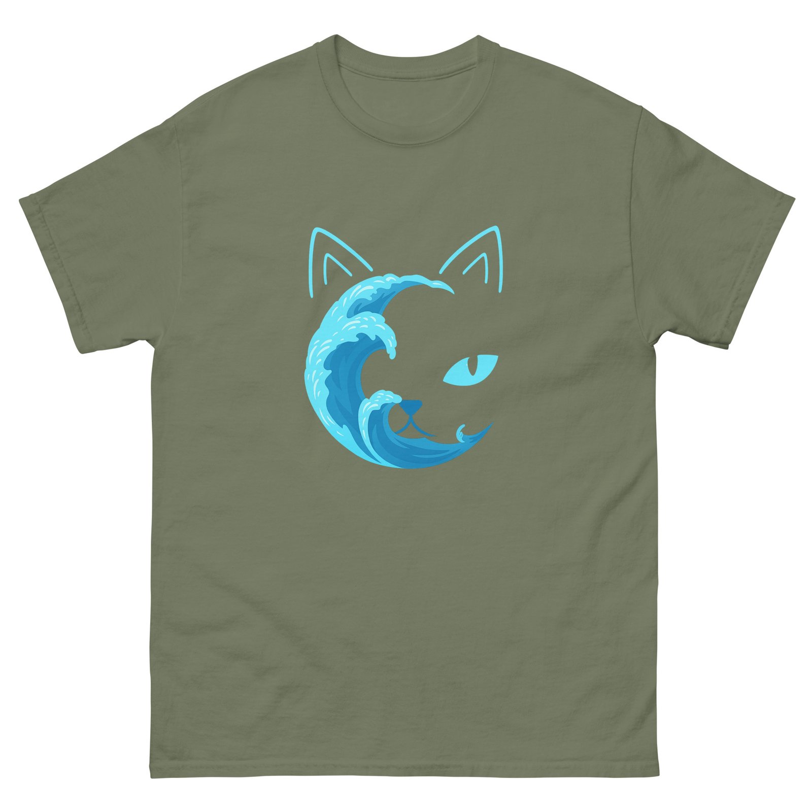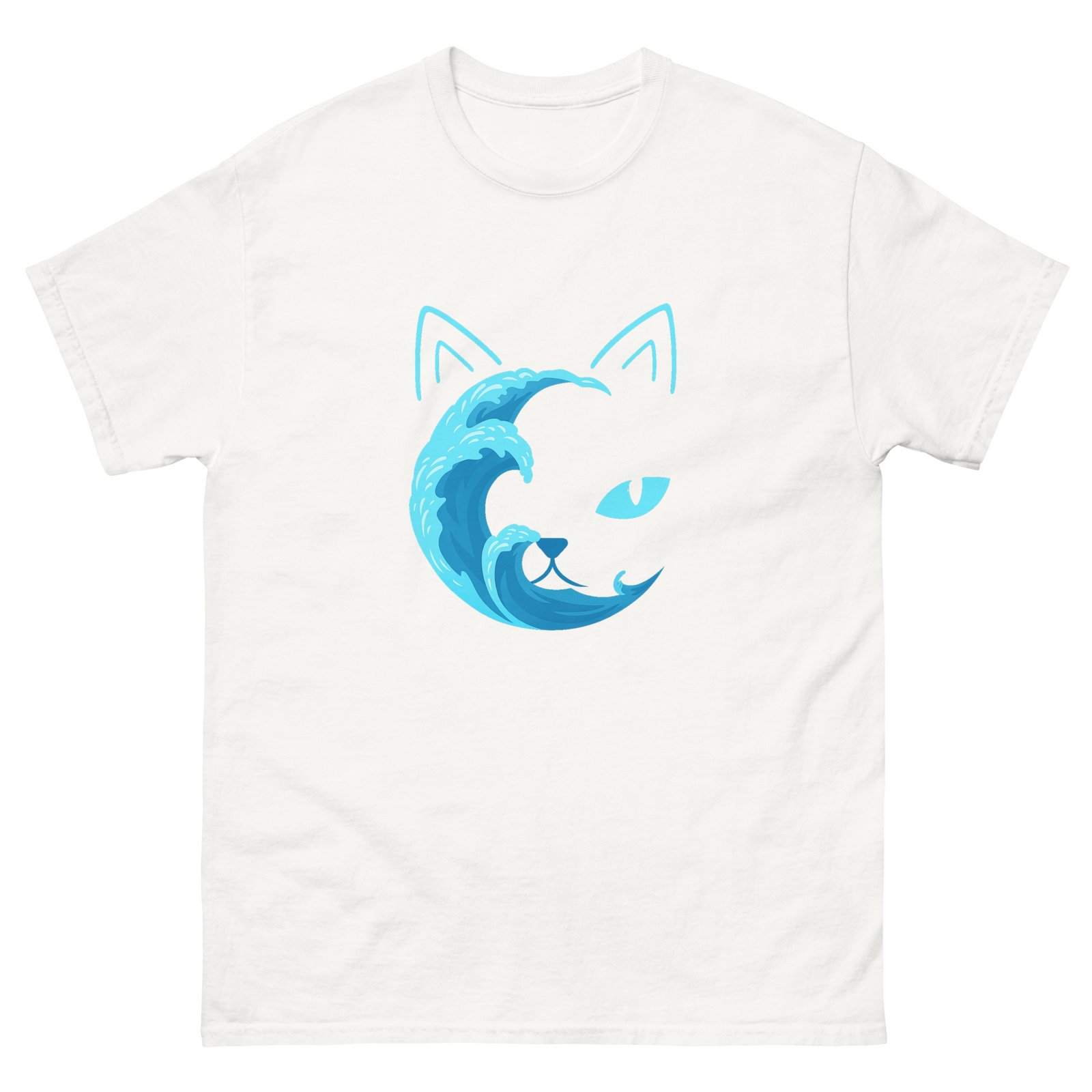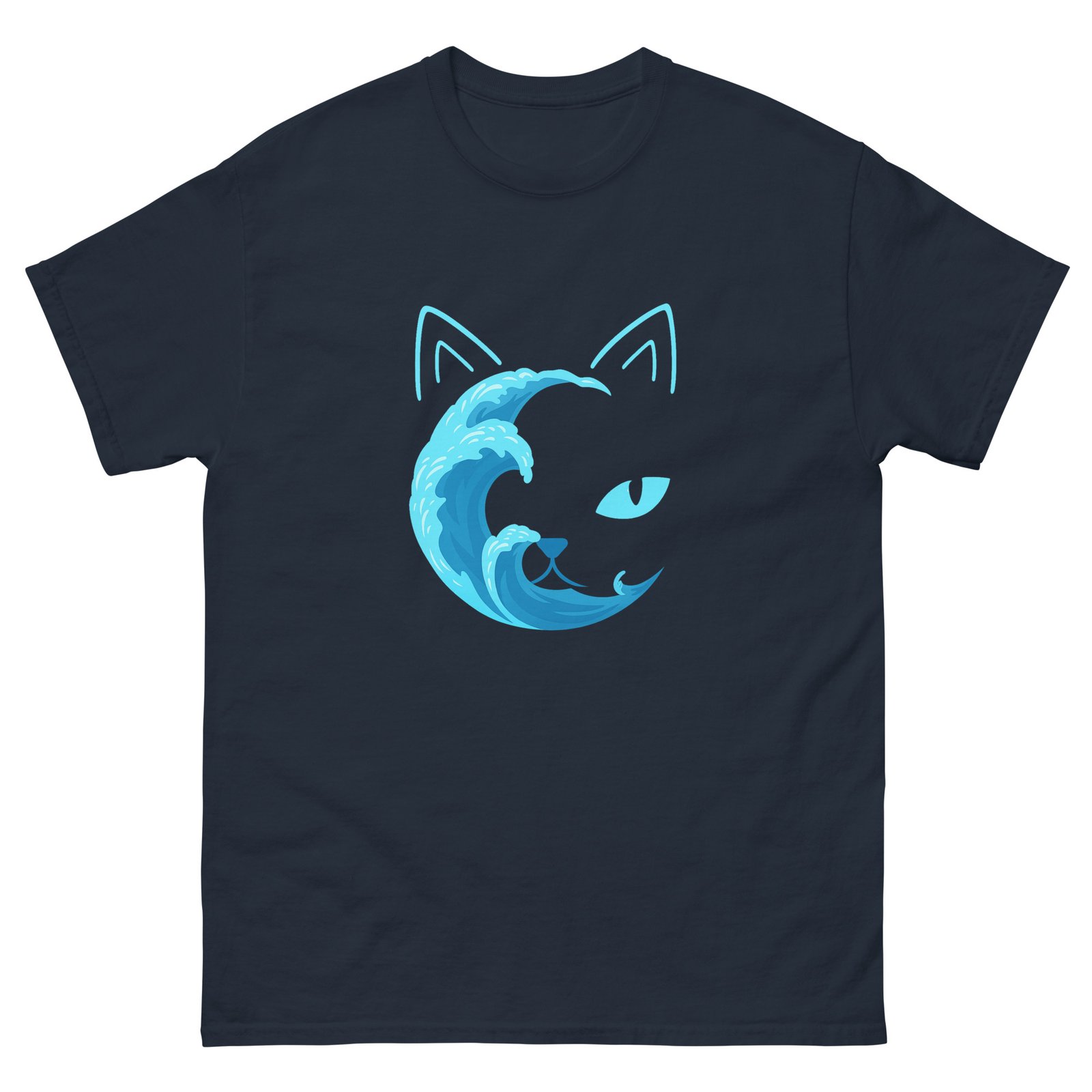 Ocean Wave Cat Shirt – Minimalist Blue Water Cat Outline Graphic Tee – Unisex classic tee