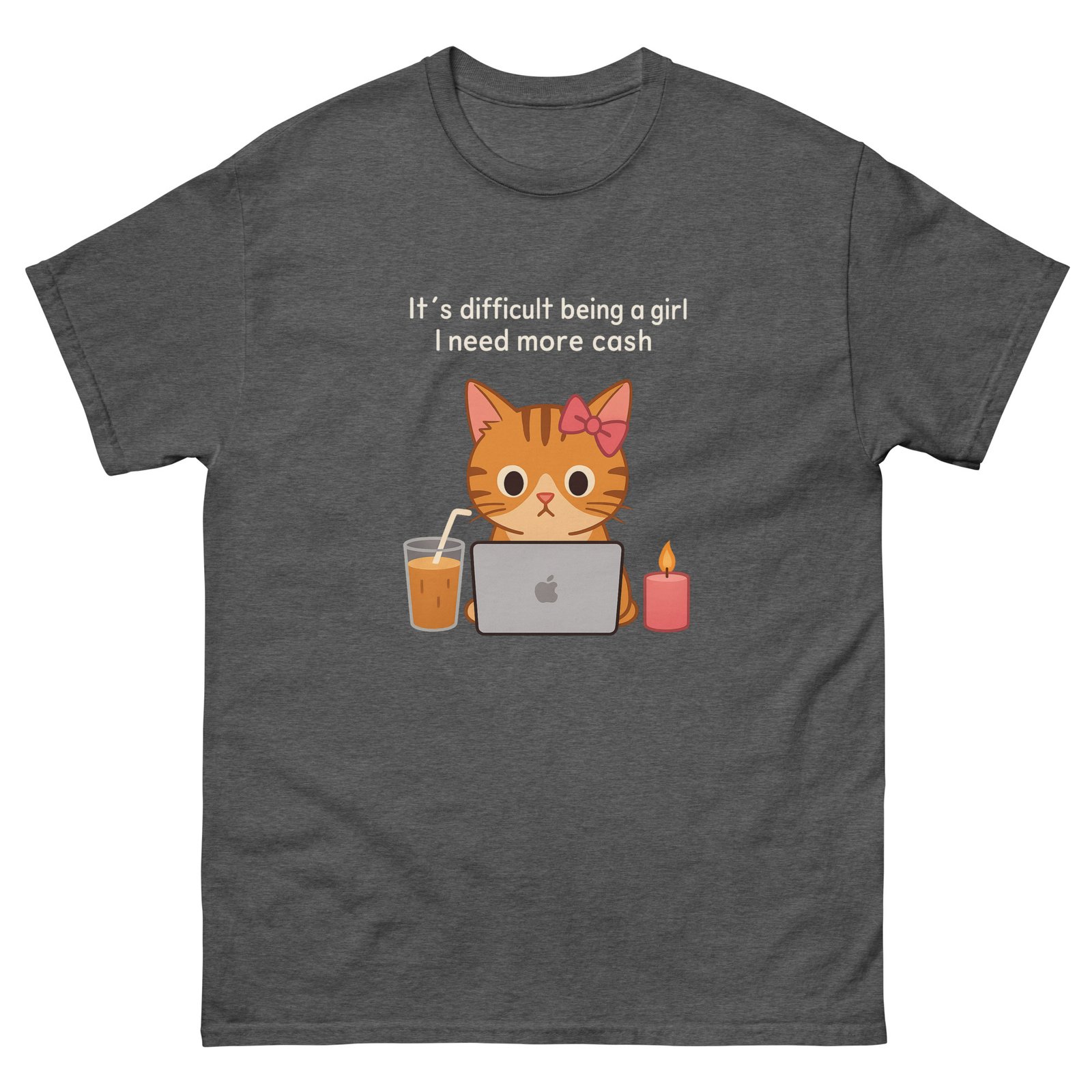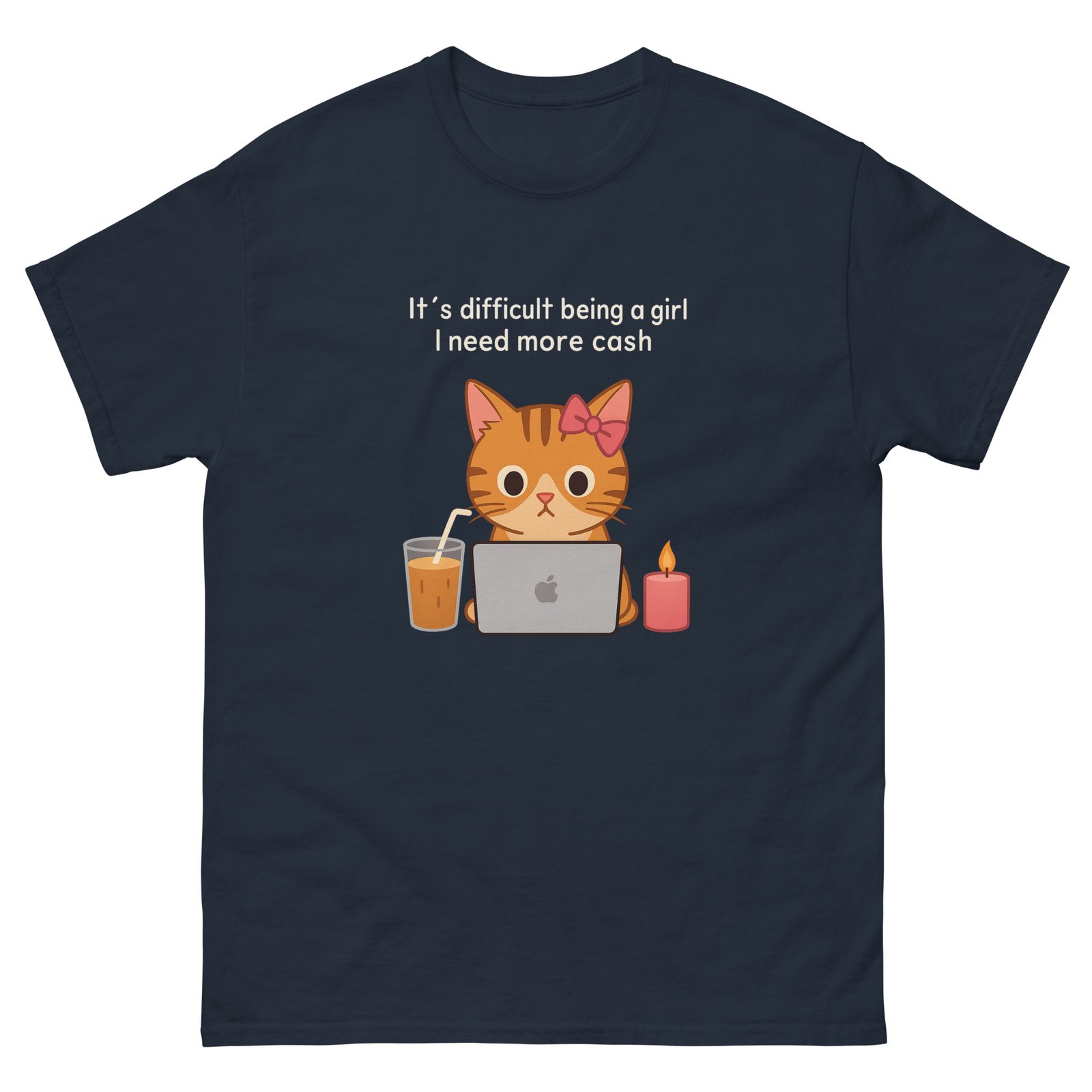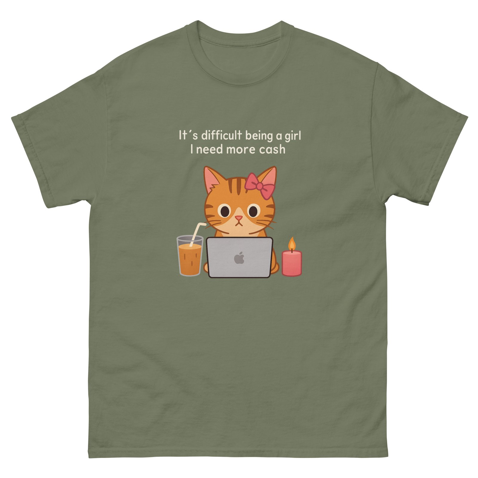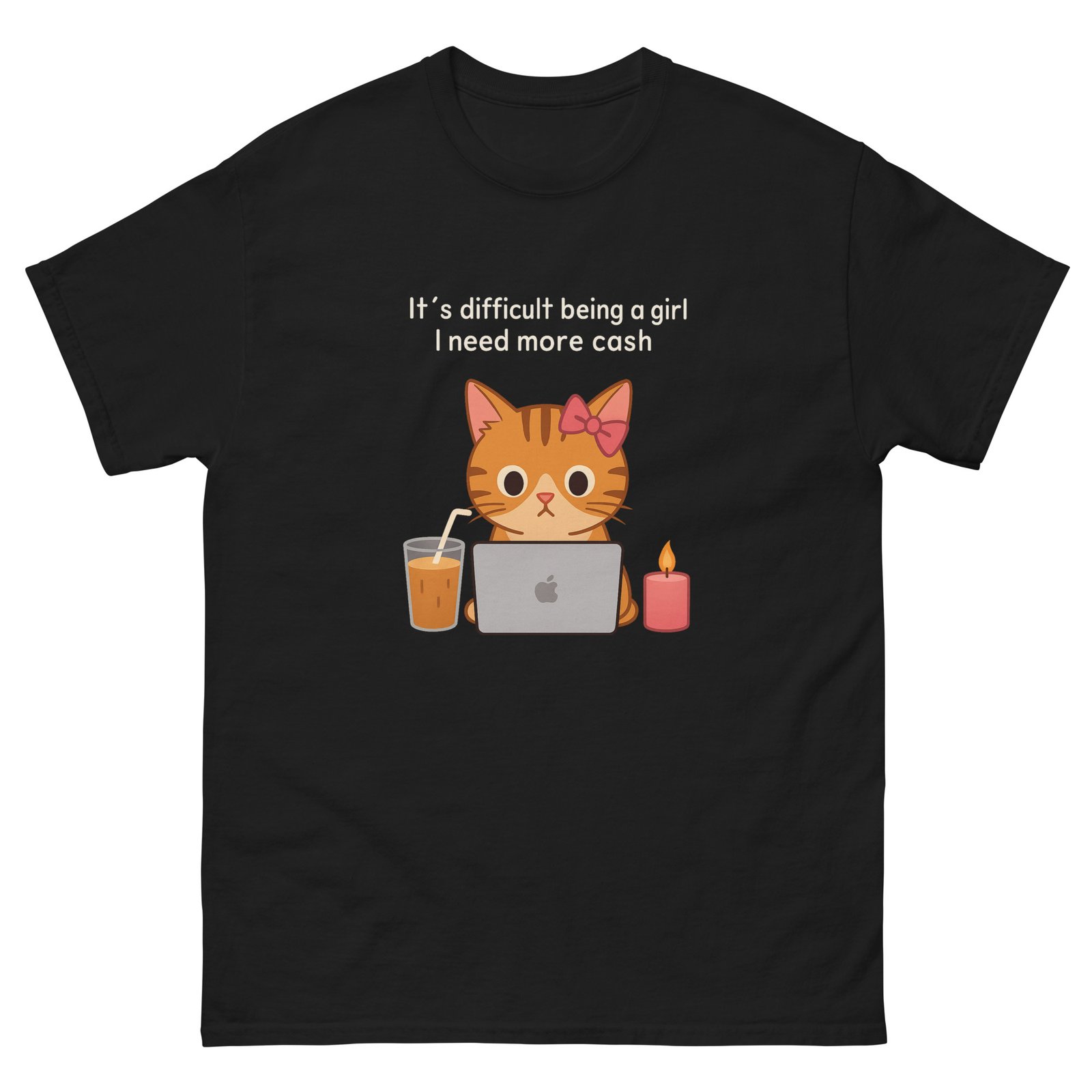 Laptop Cat – Funny Coffee Money Cute Cat Work Meme – Unisex classic tee