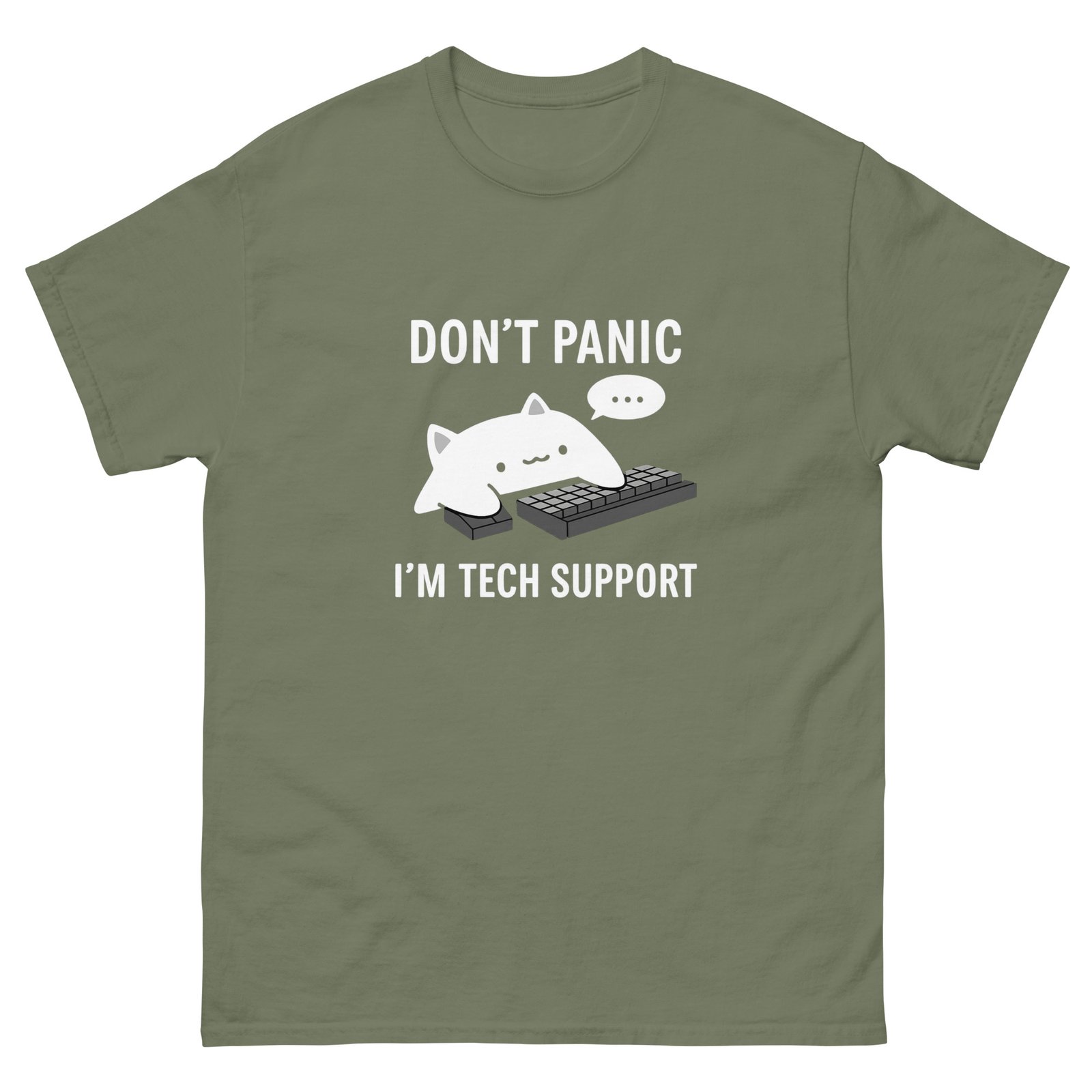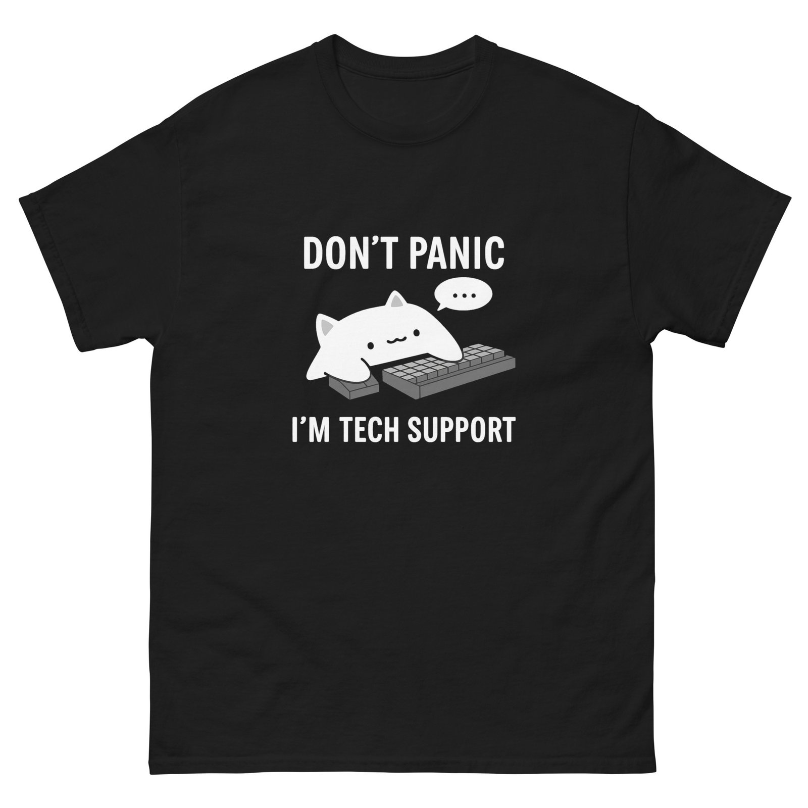 Tech Support Cat – Don’t Panic, I’m Tech Support – Funny Computer Cat Meme T-Shirt – Unisex classic tee