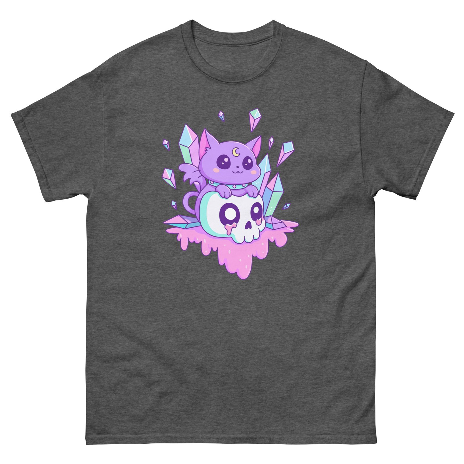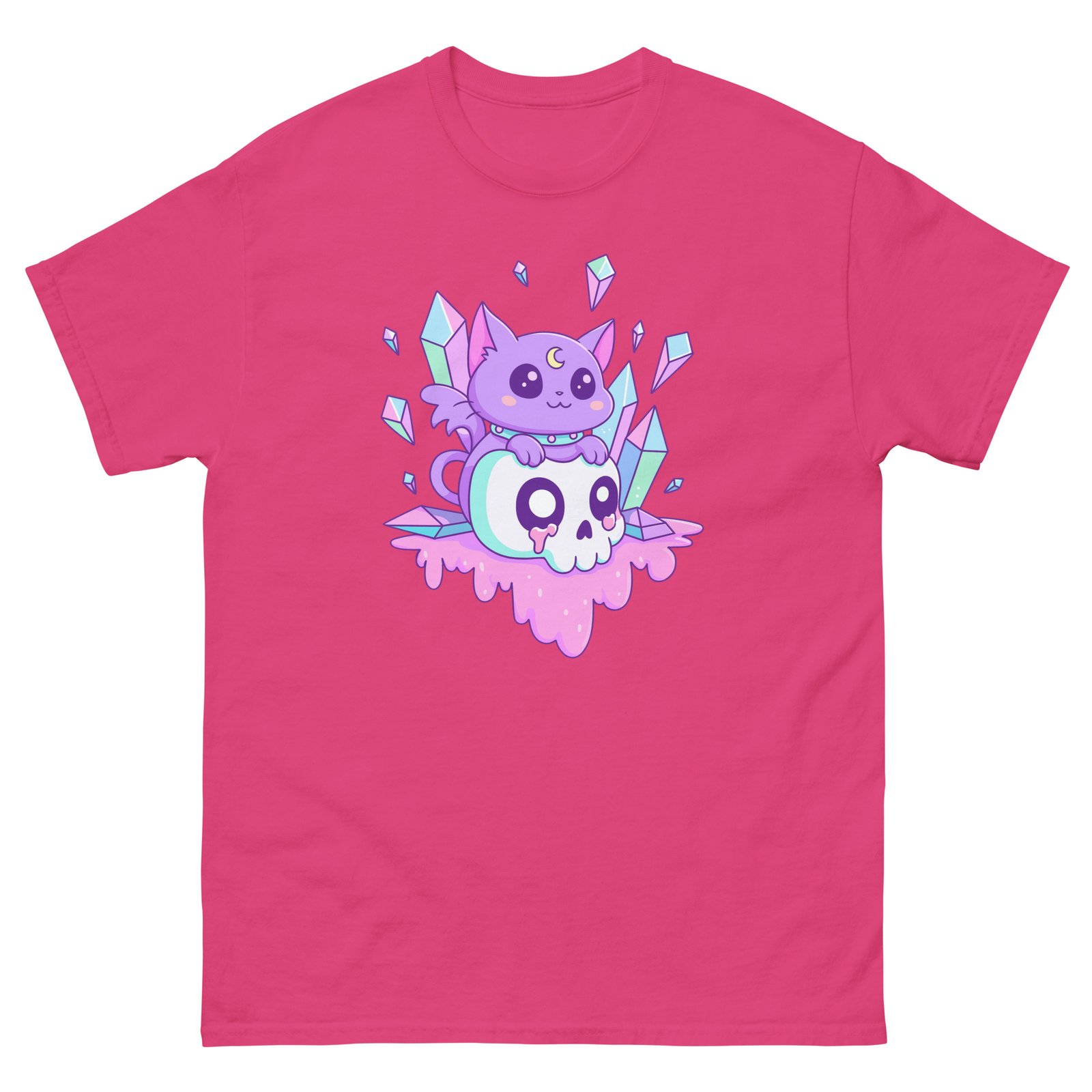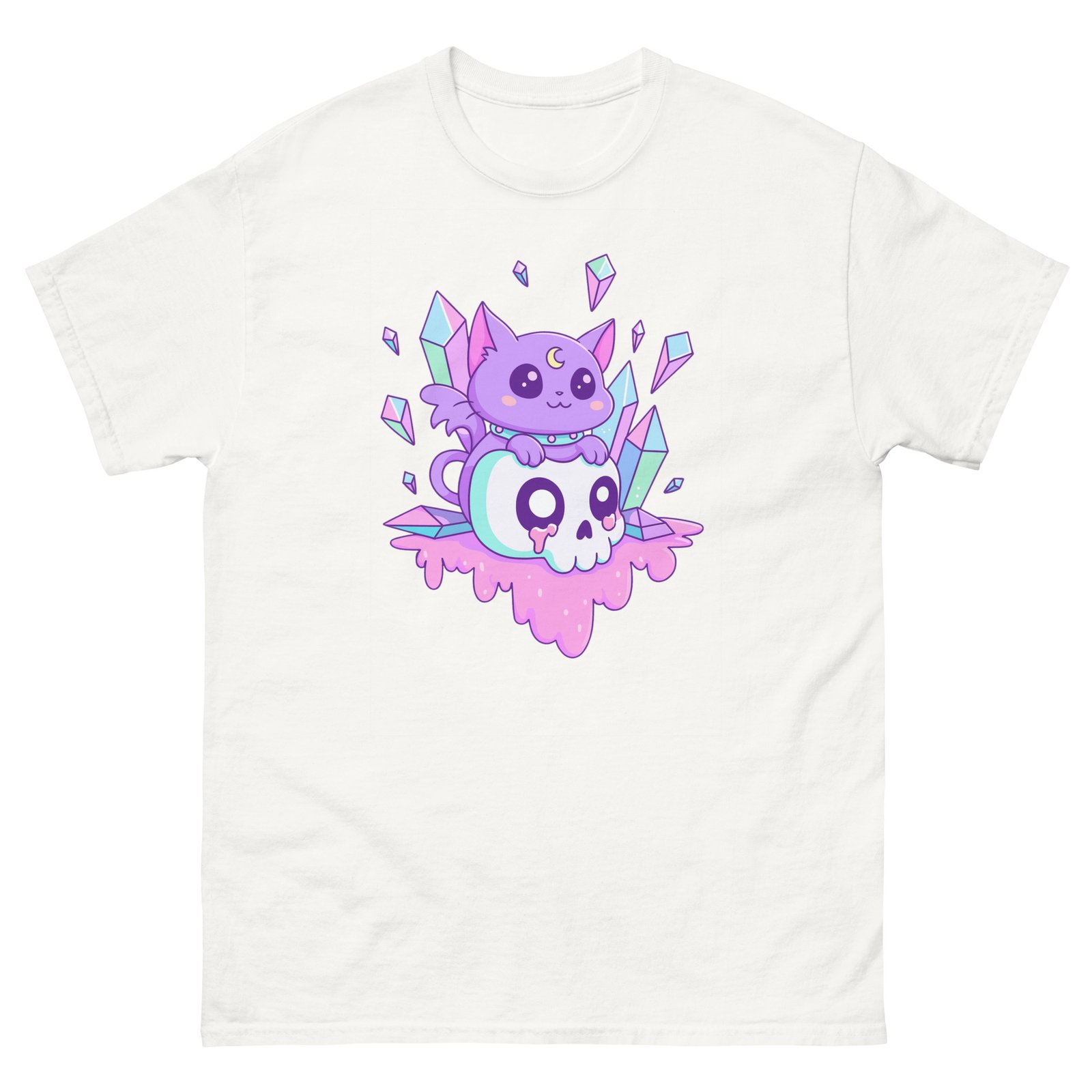 Cute Purple Crystal Cat – Magical Cat on Skull Aesthetic T-Shirt for Cat Lovers – Unisex classic tee