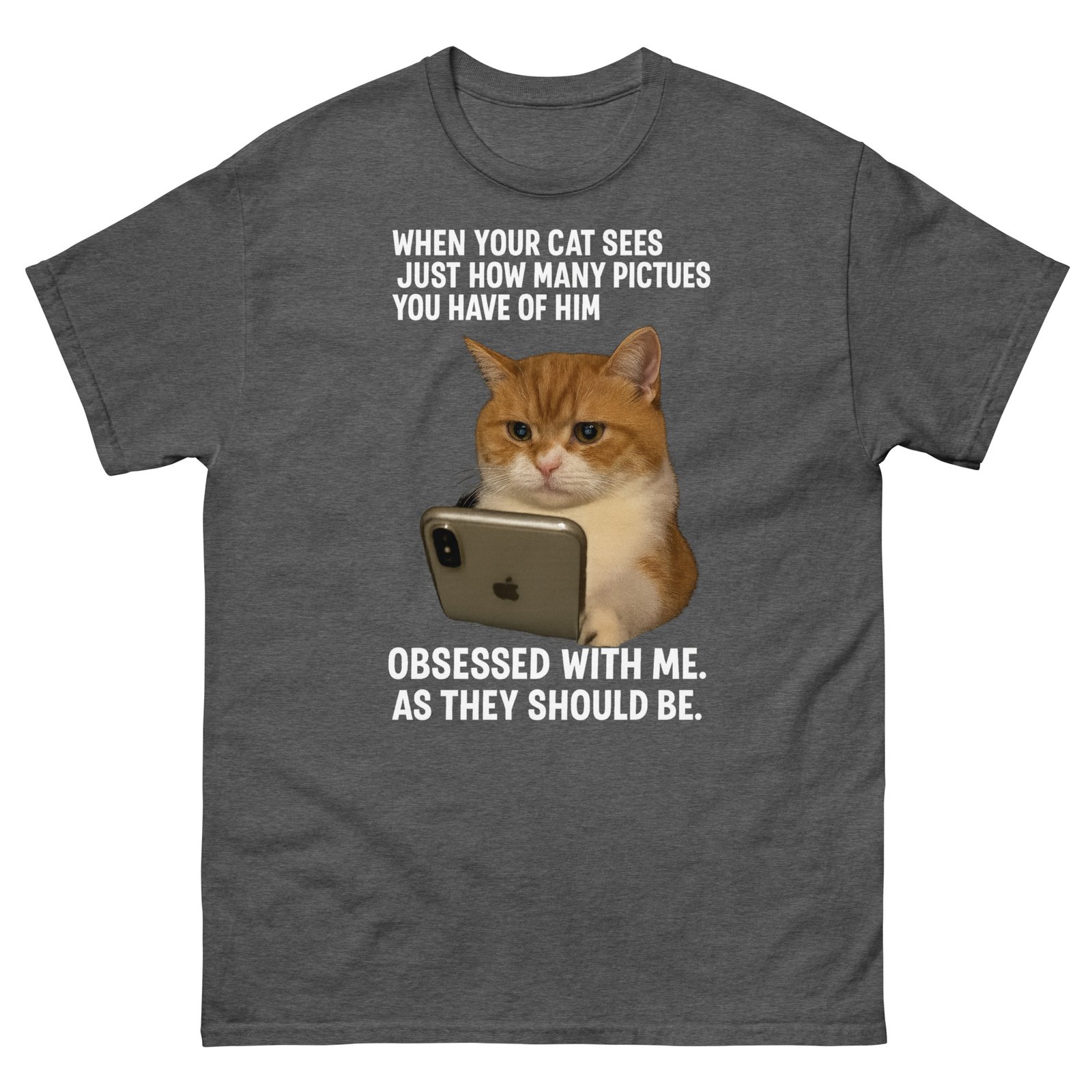 When Your Cat Sees How Many Pictures You Have of Him – Cute Obsessed Cat Meme T-Shirt – Unisex classic tee