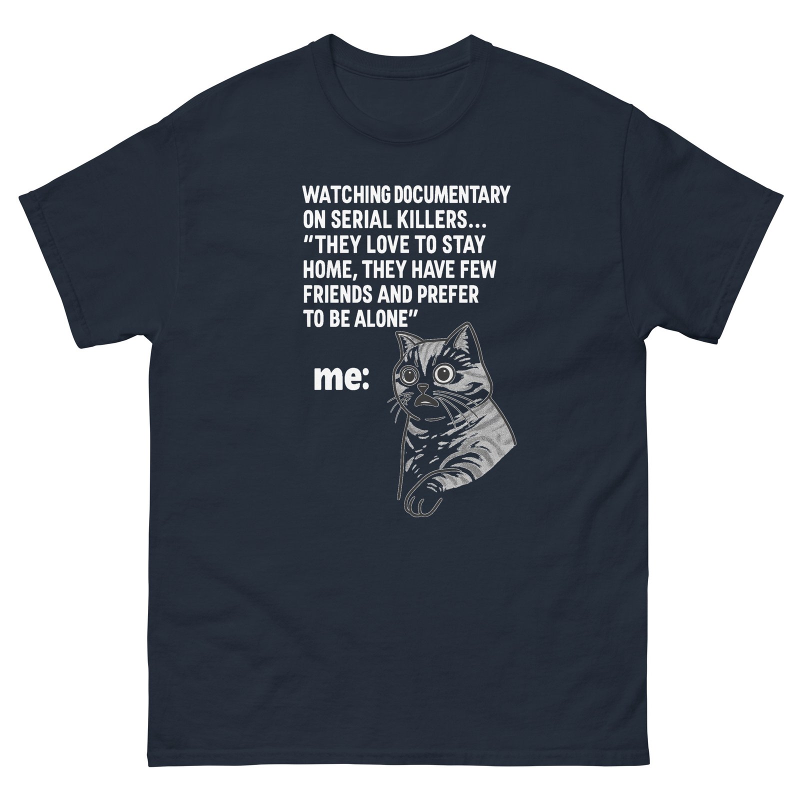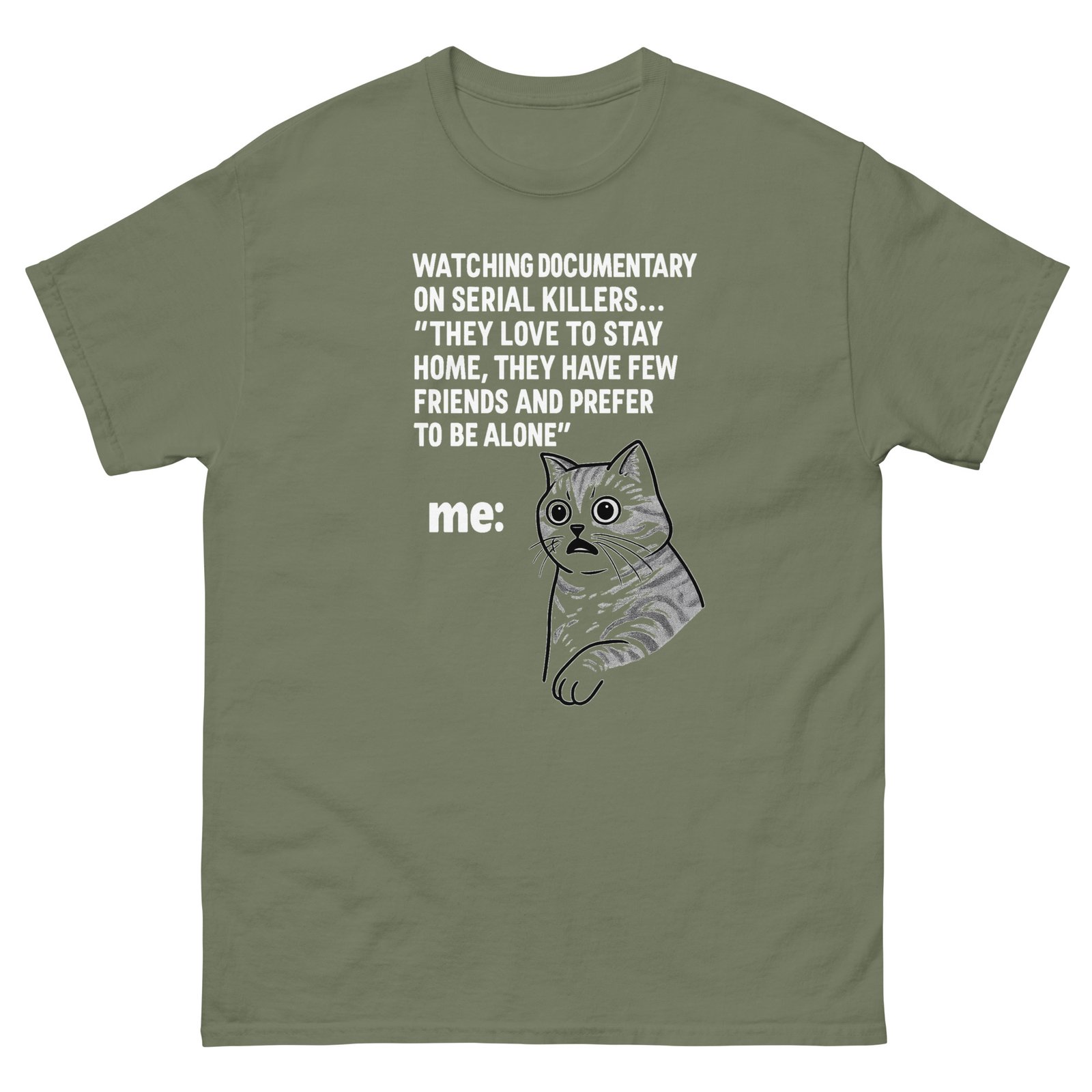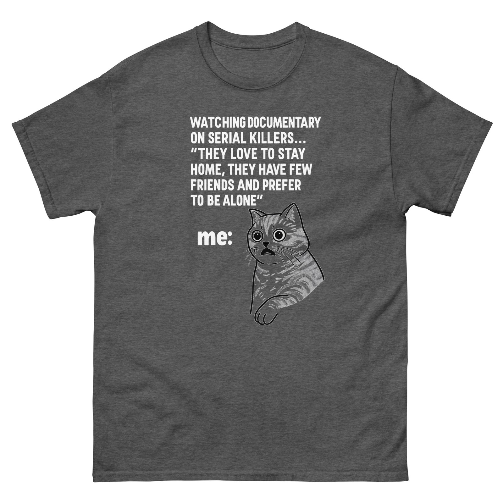 Watching Documentaries on Serial Killers Cat – Funny Introvert Cat Meme T-Shirt – Unisex classic tee
