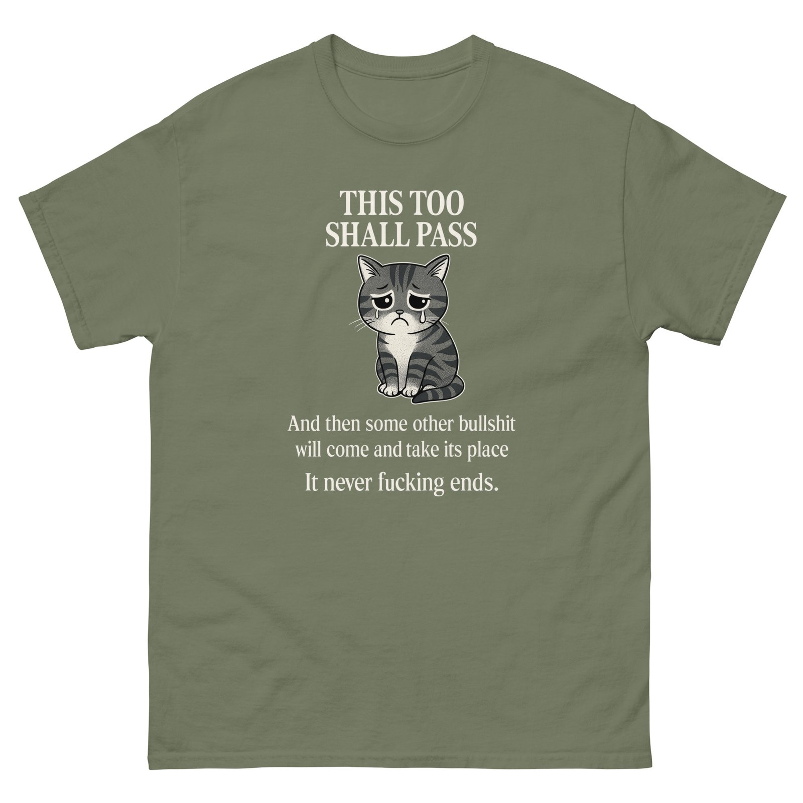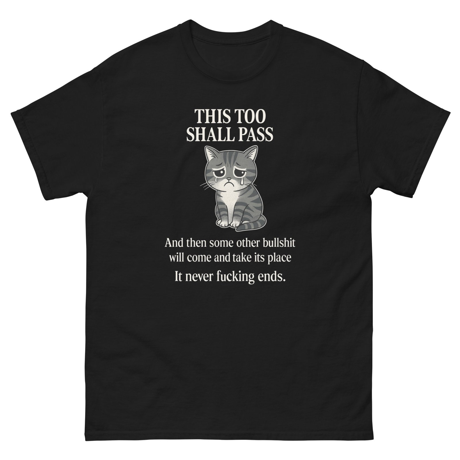 This Too Shall Pass Cat – Dark Humor Funny Cat Meme T-Shirt for Cat Lovers – Unisex classic tee